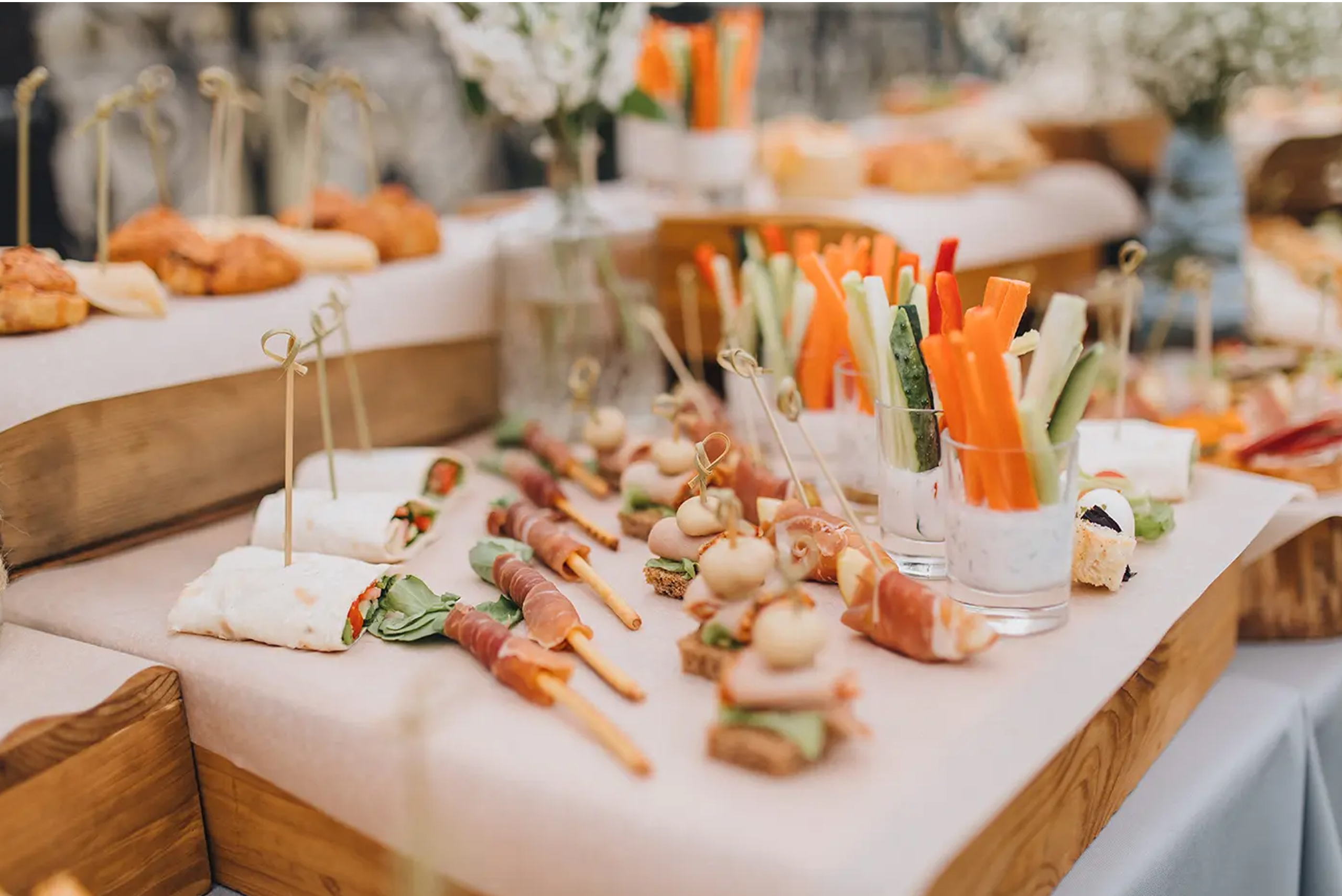 - Regionale & besondere Menüs: Viele Paare setzen auf Regionalität und Saisonalität beim Essen . Ein herbstliches Wildkräuter-Buffet aus heimischem Anbau oder vegane Gourmet-Häppchen zeigen euren Gästen, was die lokale Küche zu bieten hat. Trends wie vegetarische oder vegane Menüs sind angekommen – Hauptsache, es schmeckt und erzählt vielleicht eine Geschichte (z.B. eure Lieblingsgerichte als Paar).