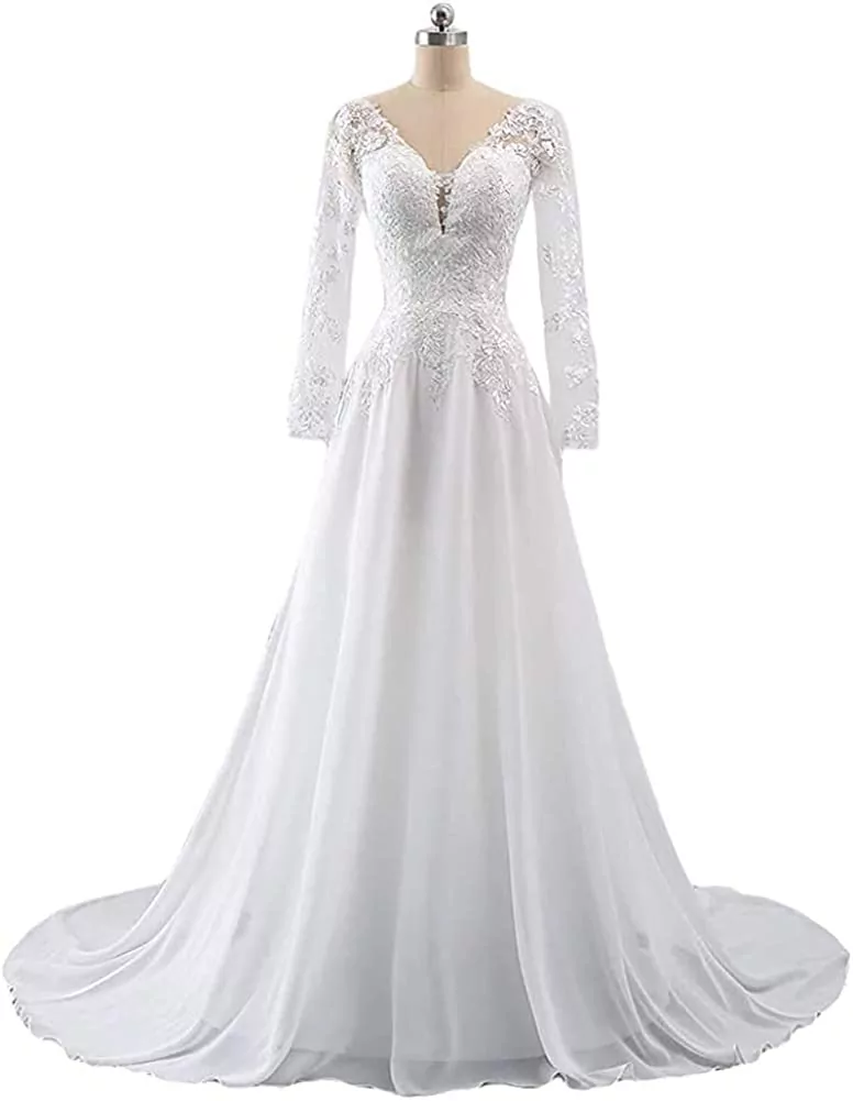 Der A-Linien Schnitt, Klassiker unter den Brautkleidern, kaschiert Problemzonen unterhalb der Taille und betont die Vorzüge des Oberkörpers. Das bodenlange Brautkleid verhüllt nicht nur die Beine sondern auch zum größten Teil die Schuhe, die du trägst. Dementsprechend können diese eher bequem anstatt bezaubernd ausfallen. Als Faustregel gilt: je kleiner die Körbchengröße desto tiefer darf der V-Ausschnitt sein. Dieser verleiht Größe und kaschiert auch ein wenig Übergewicht. Lange Ärmel bedecken den kompletten Arm und eignen sich entsprechend, möchte man bei der kirchlichen Trauung oder ganz allgemein nicht viel Haut zeigen. Auch bei einer Hochzeit im Winter könnte etwas mehr Stoff eine gute Wahl und adequate Alternative zum Bolera sein. Im strahlenden Weiß wirkt das Kleid bei kalten Hauttypen, allen voran dem Wintertypen harmonisch; besonders bei schöngebräunter Haut ensteht dabei ein toller Kontrast. Bräute mit einem warmen und hellen Teint könnten darin eher blass erscheinen. Wir empfehlen dieses Modell auch für eine standesamtliche Hochzeit.Bitte versteh diese Hinweise nur als allgemeine Ratschläge basierend auf den Merkmalen des hier angebotenen Brautkleids. Jedes Kleid hat seine eigene Ausstrahlung und seinen eigenen Charakter – genau wie du. Wenn dieses DEIN Kleid ist, wird es auch entgegen unserer Tips zu dir passsen. Über Geschmack lässt sich bekanntlich nicht streiten. Wenn du dir bei deiner Kaufentscheidung unsicher bist, lass dich professionell beraten, frag deine engsten Vertrauten und hör vor allem auf dein Bauchgefühl.
