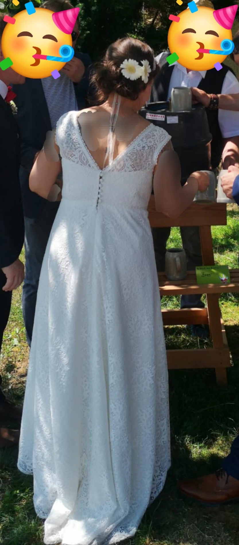 Besonderheiten: Kleine Schleppe hochknöpfbar
