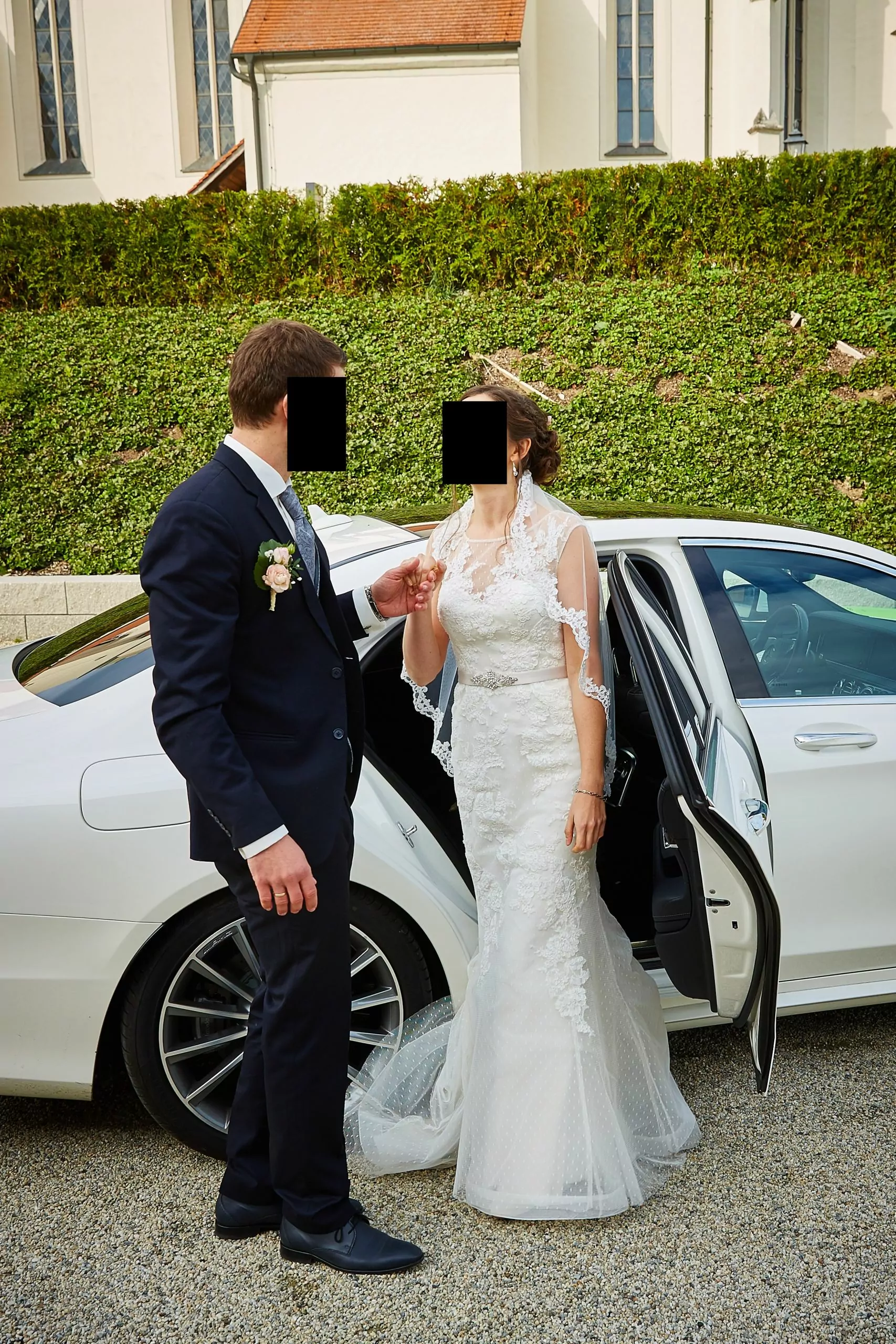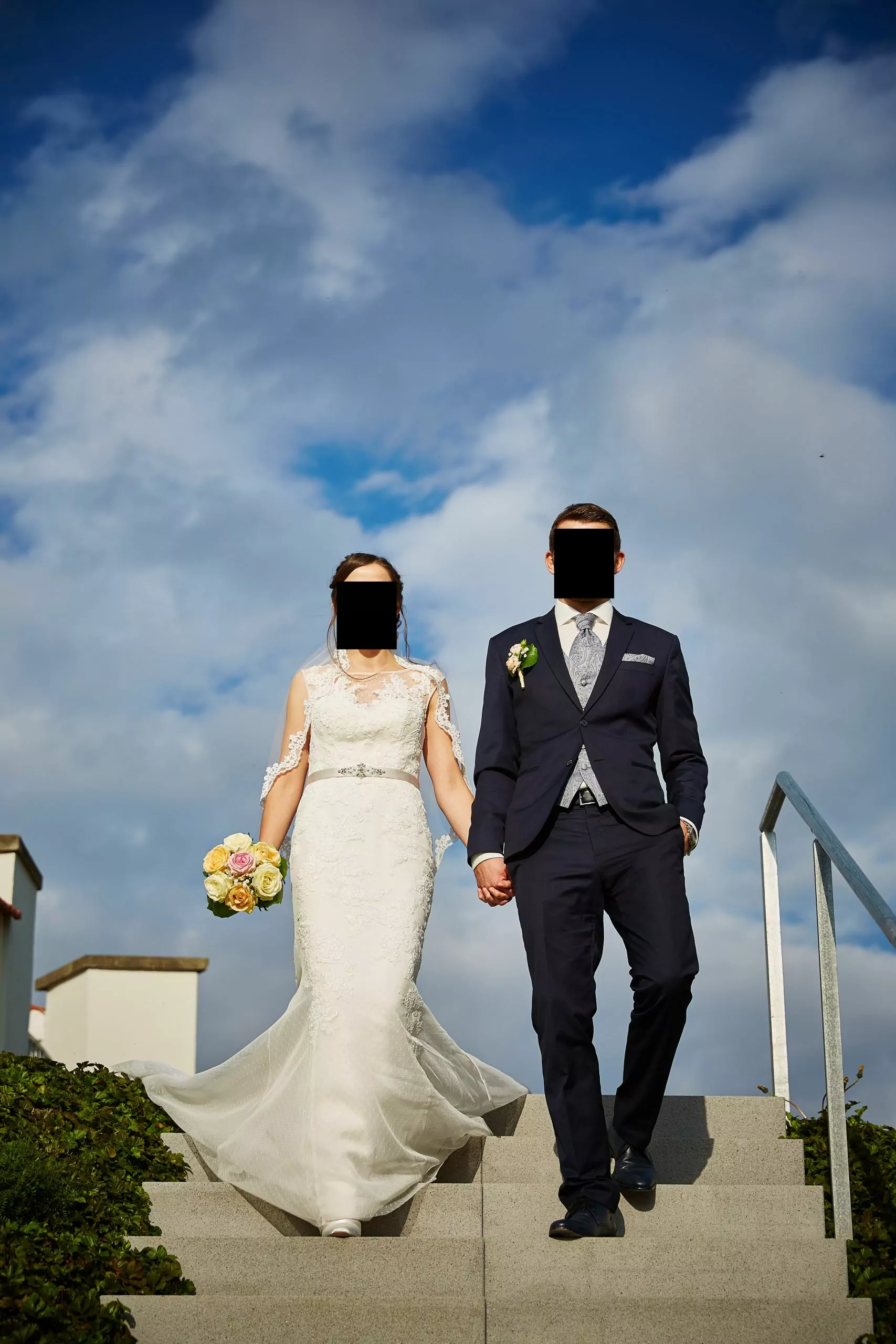 "Ich verkaufe mein wunderschönes Brautkleid, welches 1x 2016 getragen wurde. Brautgürtel und Schleier können gesondert erworben werden. Ein Traum aus Spitze mit wunderschöner Rückenansicht. Die Schleppe kann hochgesteckt werden.