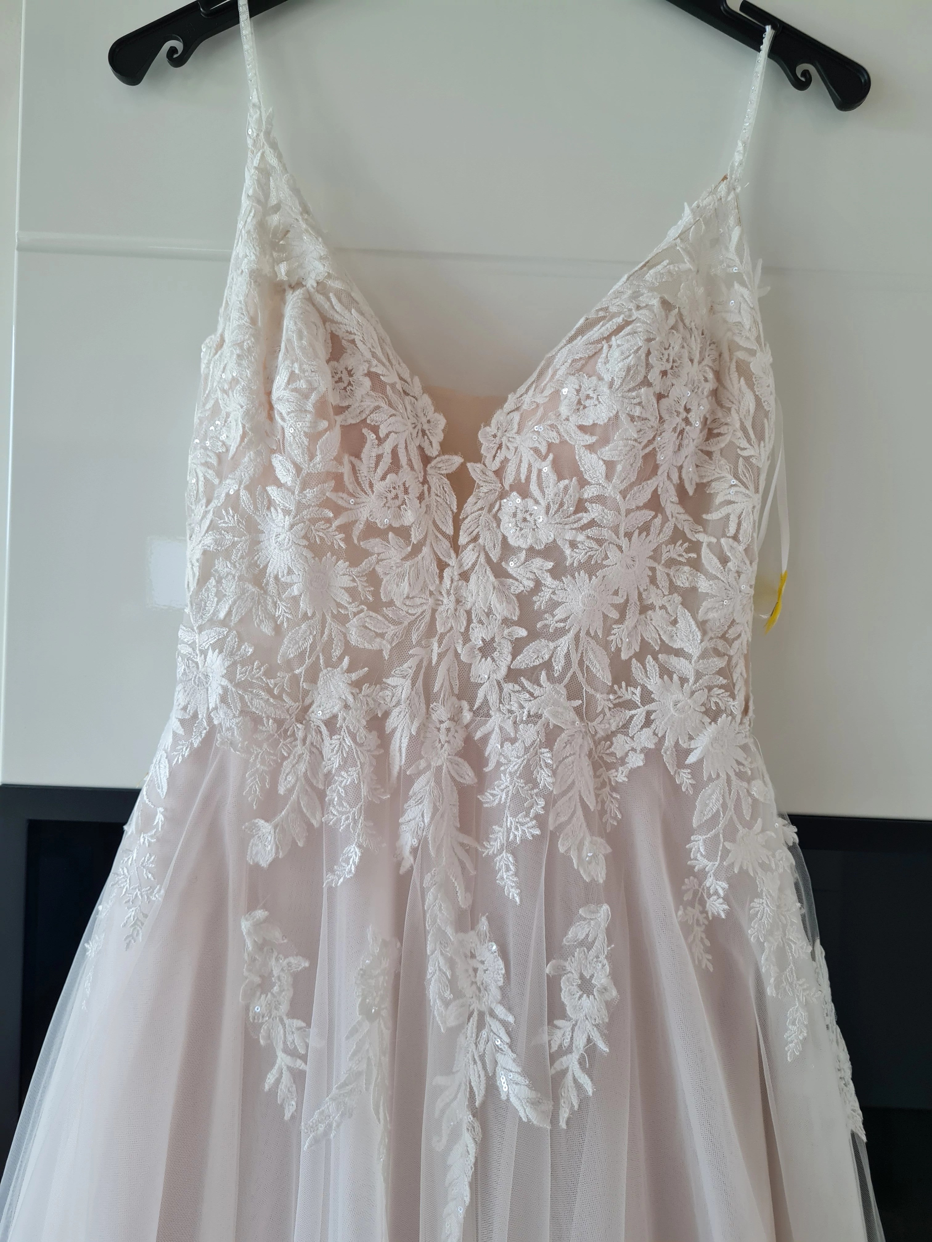 "Ich biete euch hier ein sehr schönes Brautkleid von Ladybird an. Ich habe es 2023 an meiner Hochzeit getragen und im November 2022 gekauft. Das Kleid ist natürlich nur einmal getragen und nach der Trauung direkt gereinigt worden.