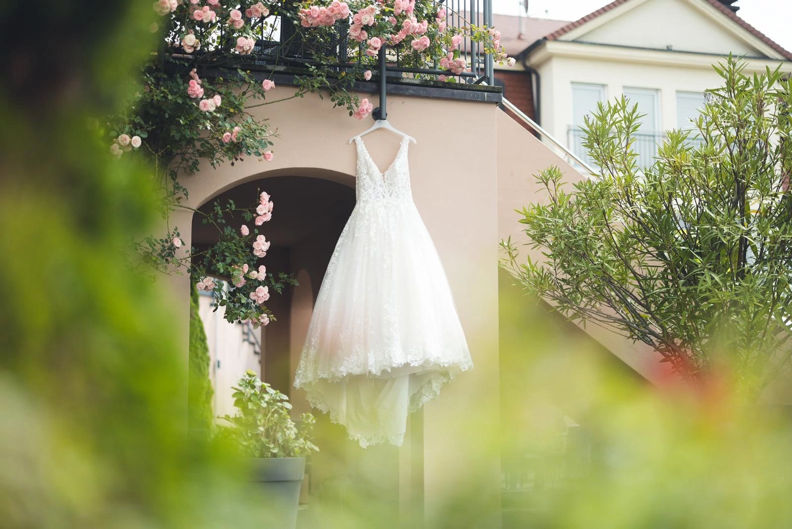 Für die Schleppe wurden drei Haken eingenäht, durch die sie fast unsichtbar hochgesteckt werden kann.