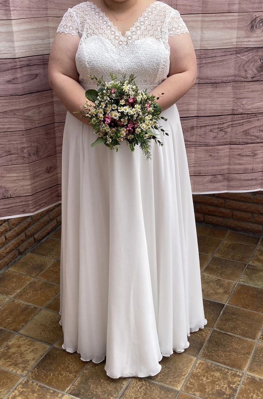 "Schmeichelt der Figur. Leichter fließender Stoff, der ganz angenehm zu tragen ist. Schöne grobe Spitze.