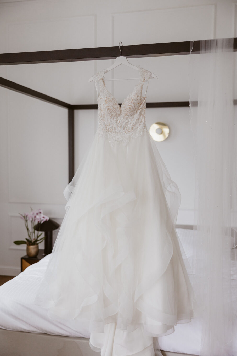 "Ich habe vor allem die Spitze & Stickereien am Oberteil geliebt, gepaart mit dem tiefen Rücken & den besonderen Stufen im Rock.
