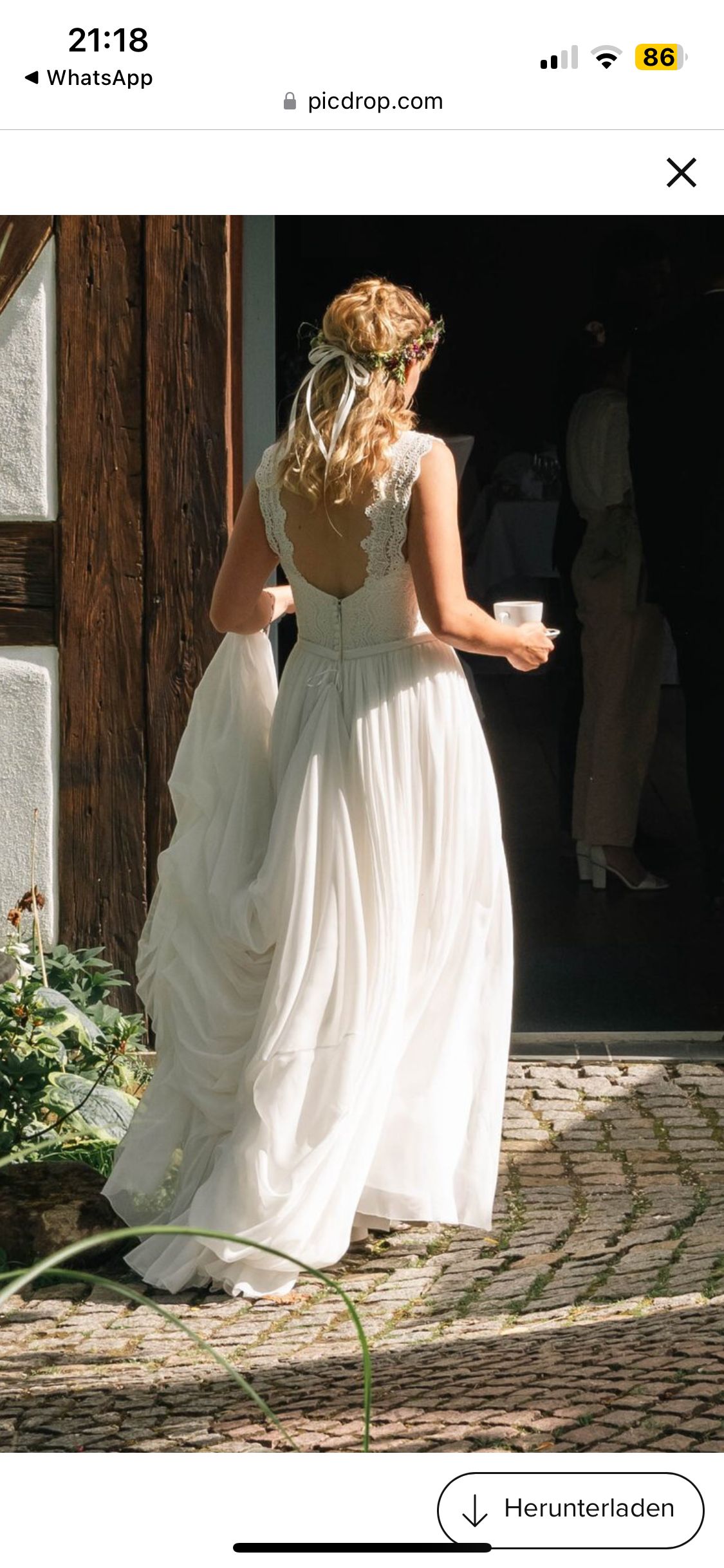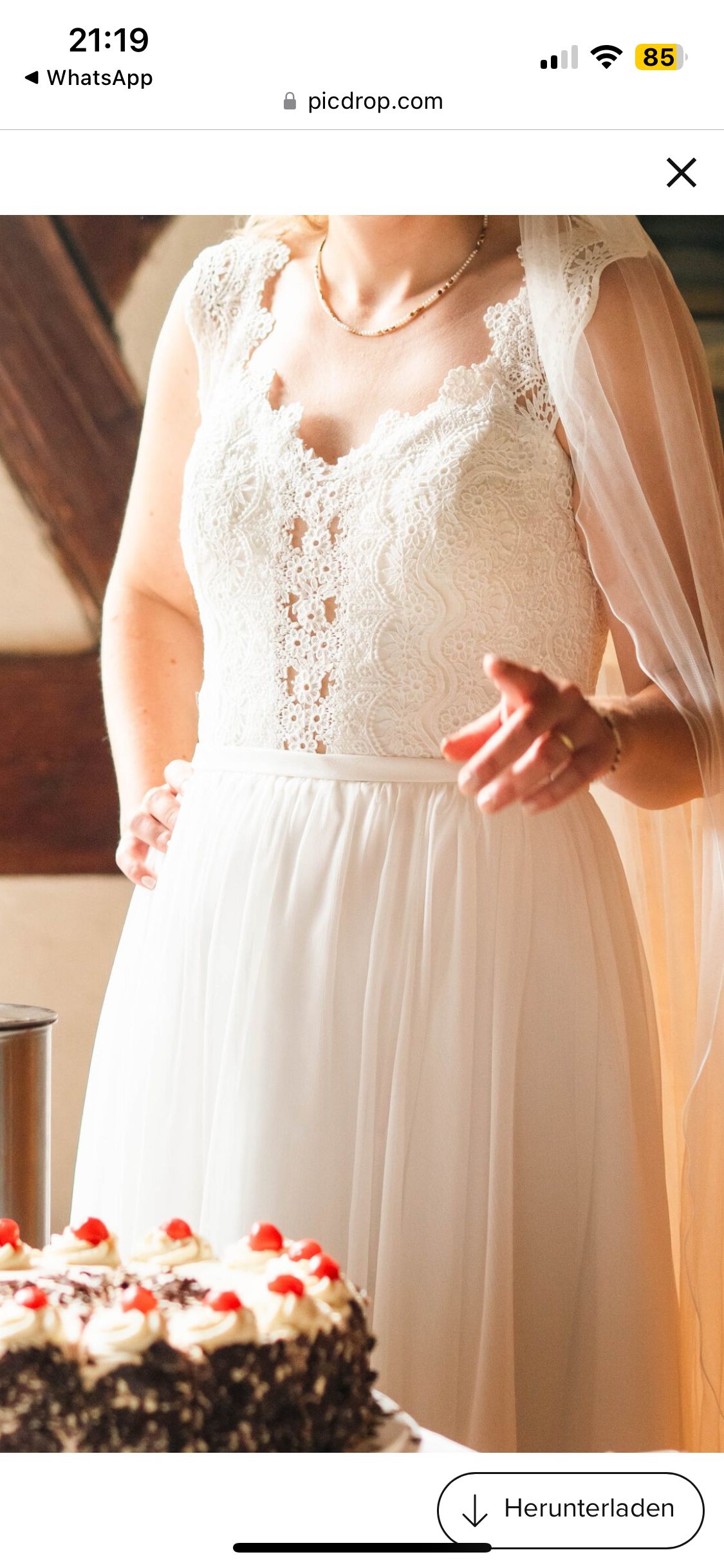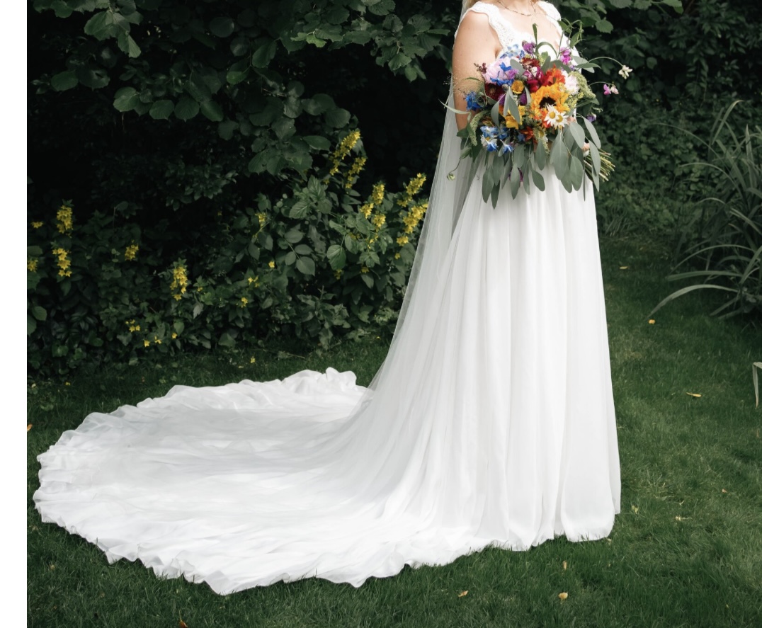 Ich verkaufe mein Hochzeitskleid mit wunderschöner Spitze und Schleppe! Ich hatte einen wunderbaren Tag damit und hoffe, jemand weiteres hat daran Freude.