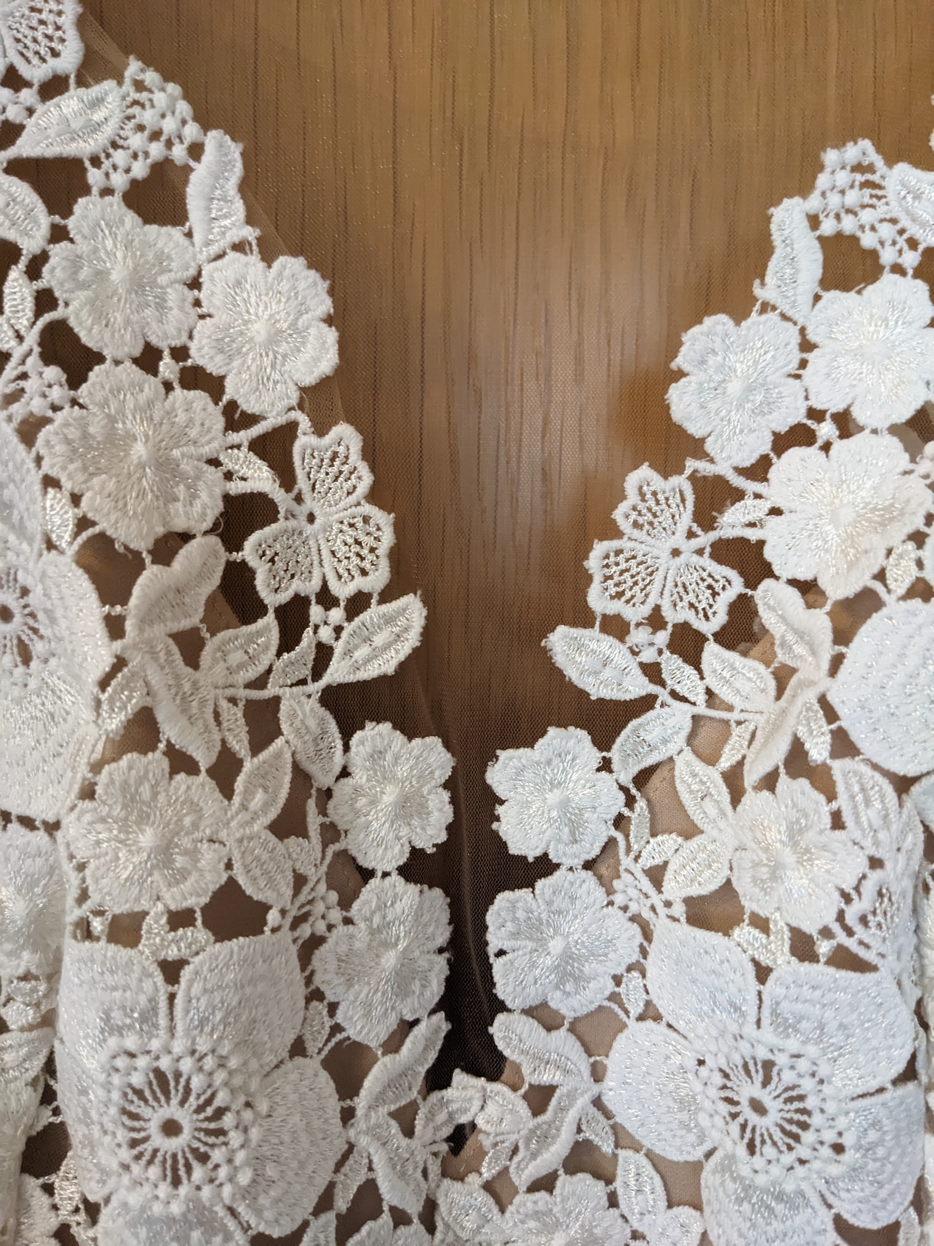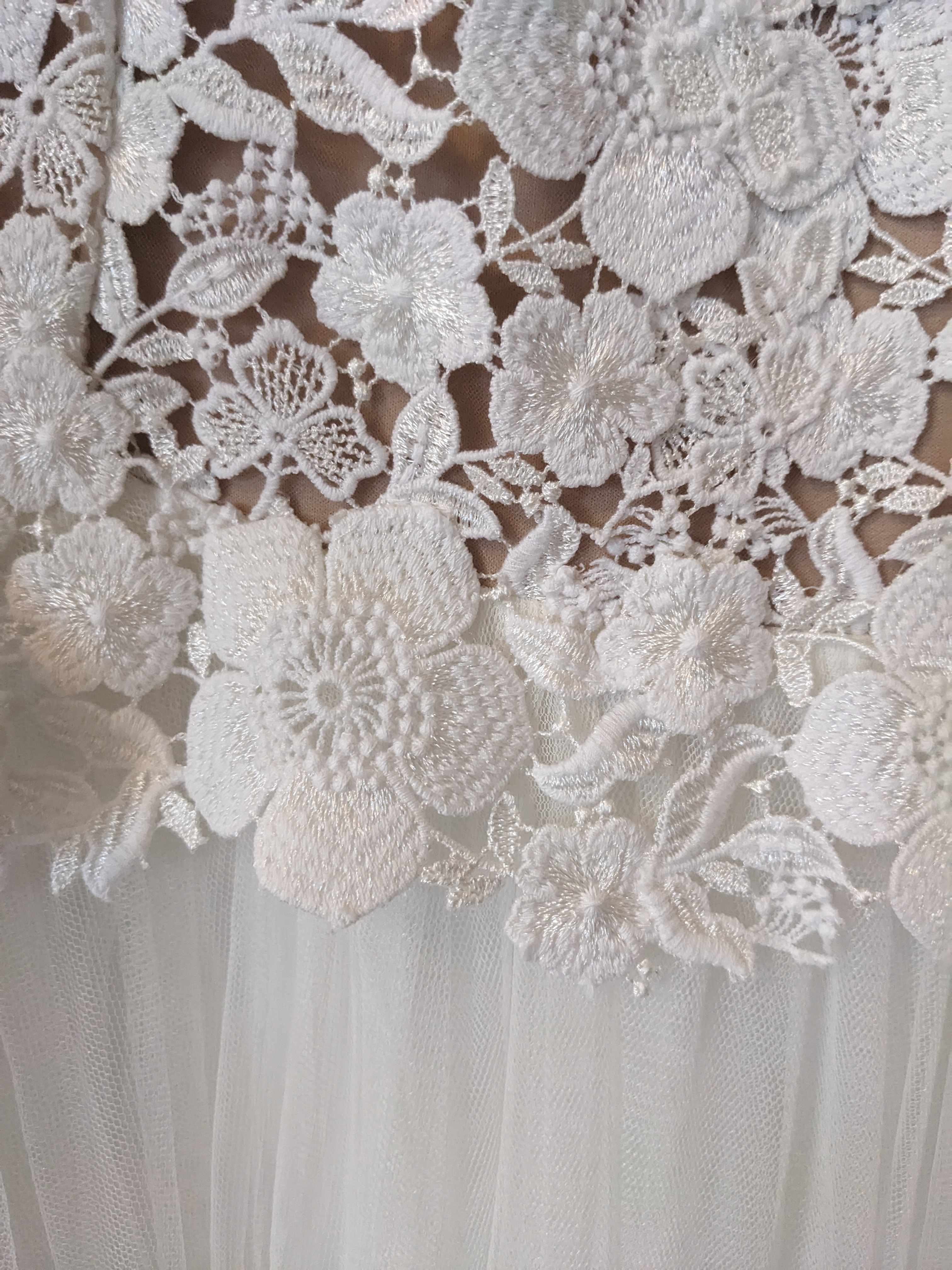 Verzierungen: Blumen / Stoffblüten, Netzstoff / Tüll, Spitze / Stickerei
