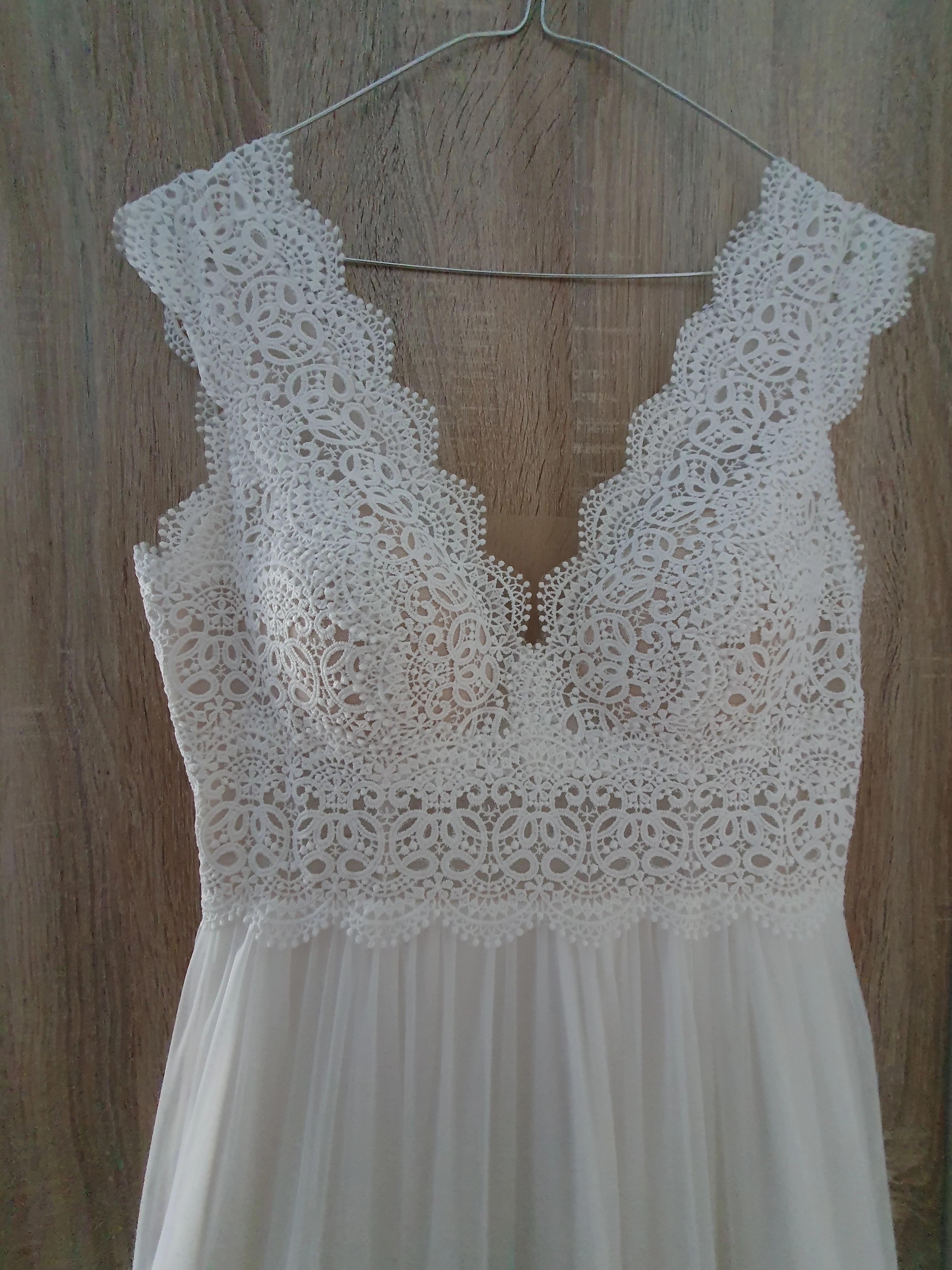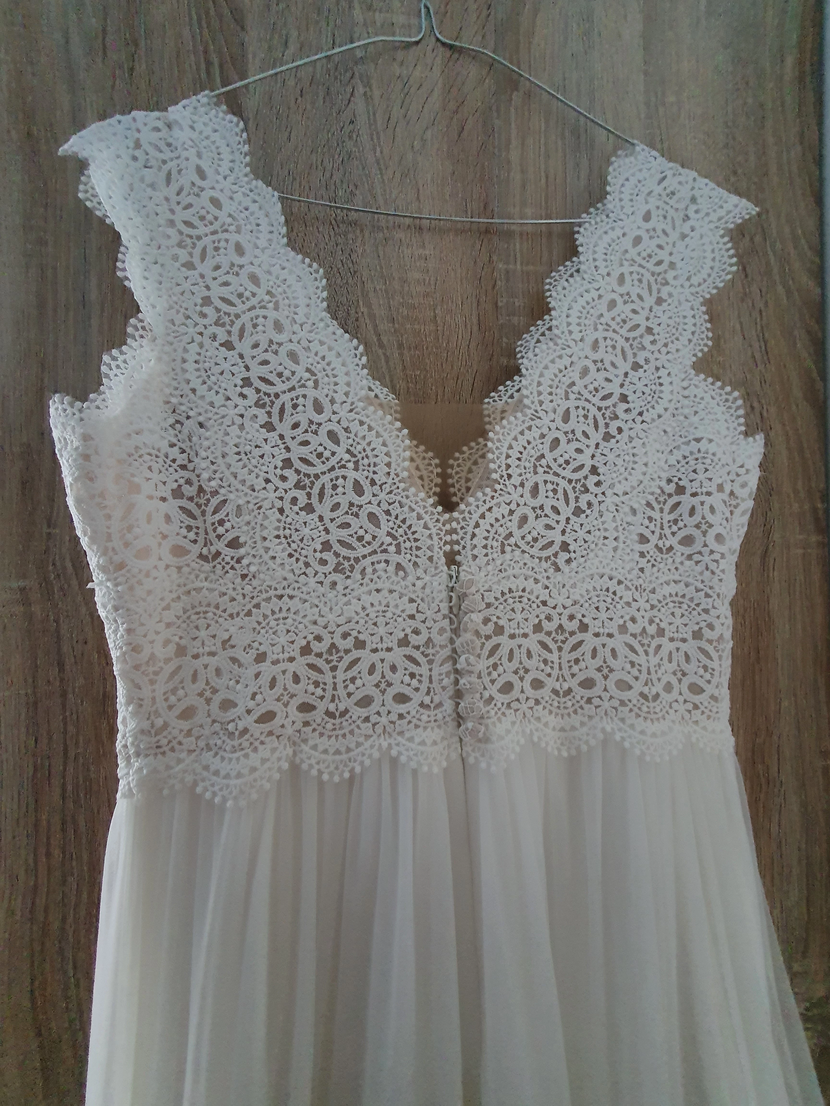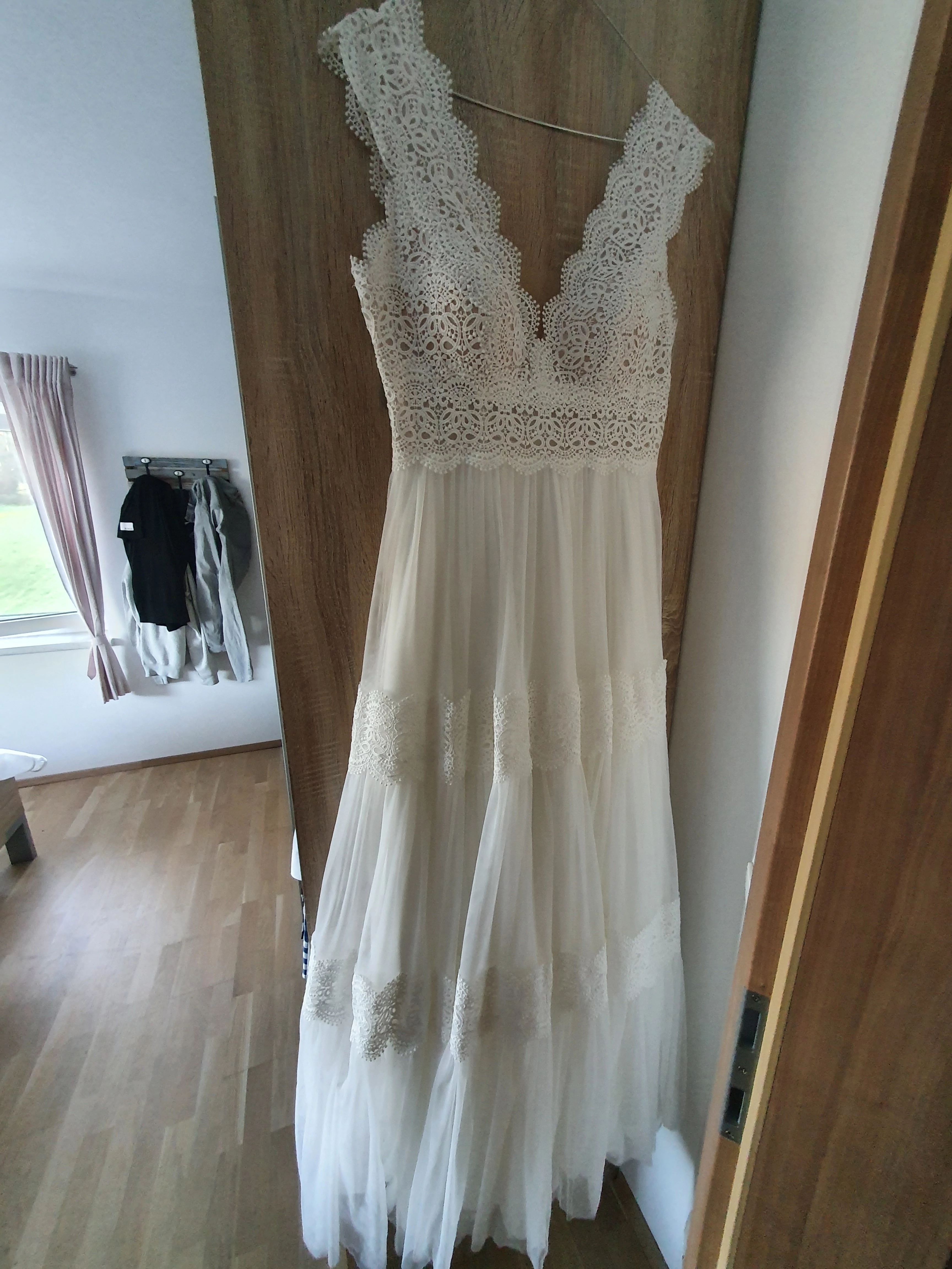"Wunderschönes Boho Brautkleid in Größe 40 mit grober Spitze, A-Linie