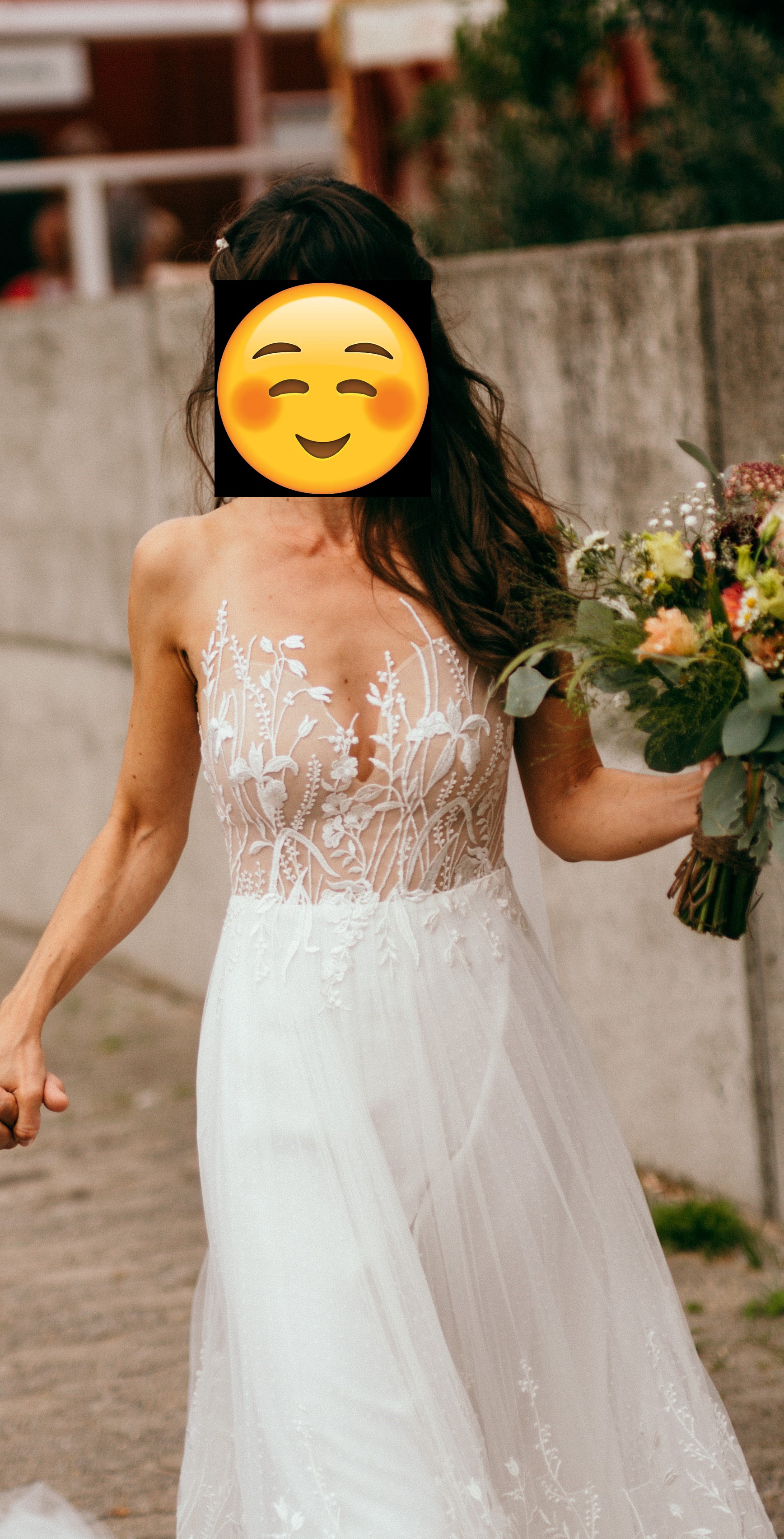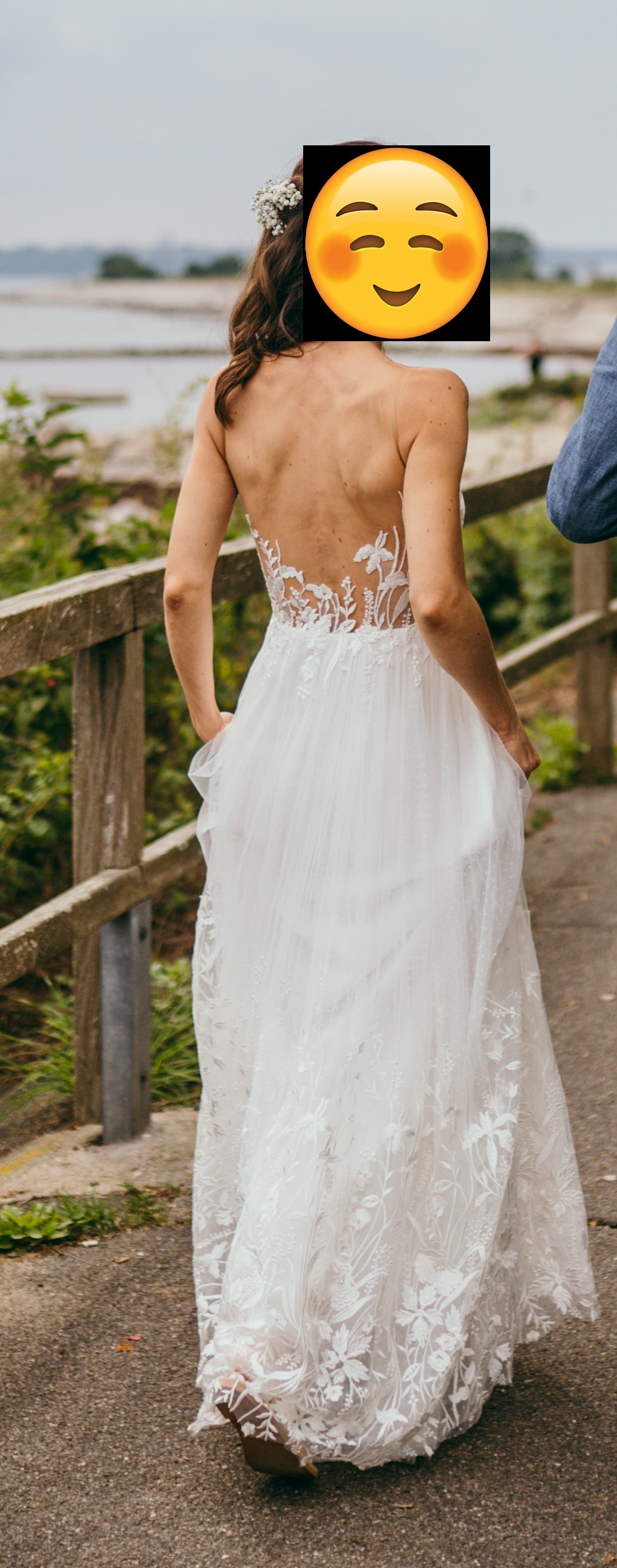 "Ich habe dieses Kleid bei meiner Hochzeit im Jahr 2019 getragen. Es hat sich wunderschön angefühlt. Danach wurde es direkt professionell gereinigt und wurde seitdem trocken und lichtgeschützt gelagert."