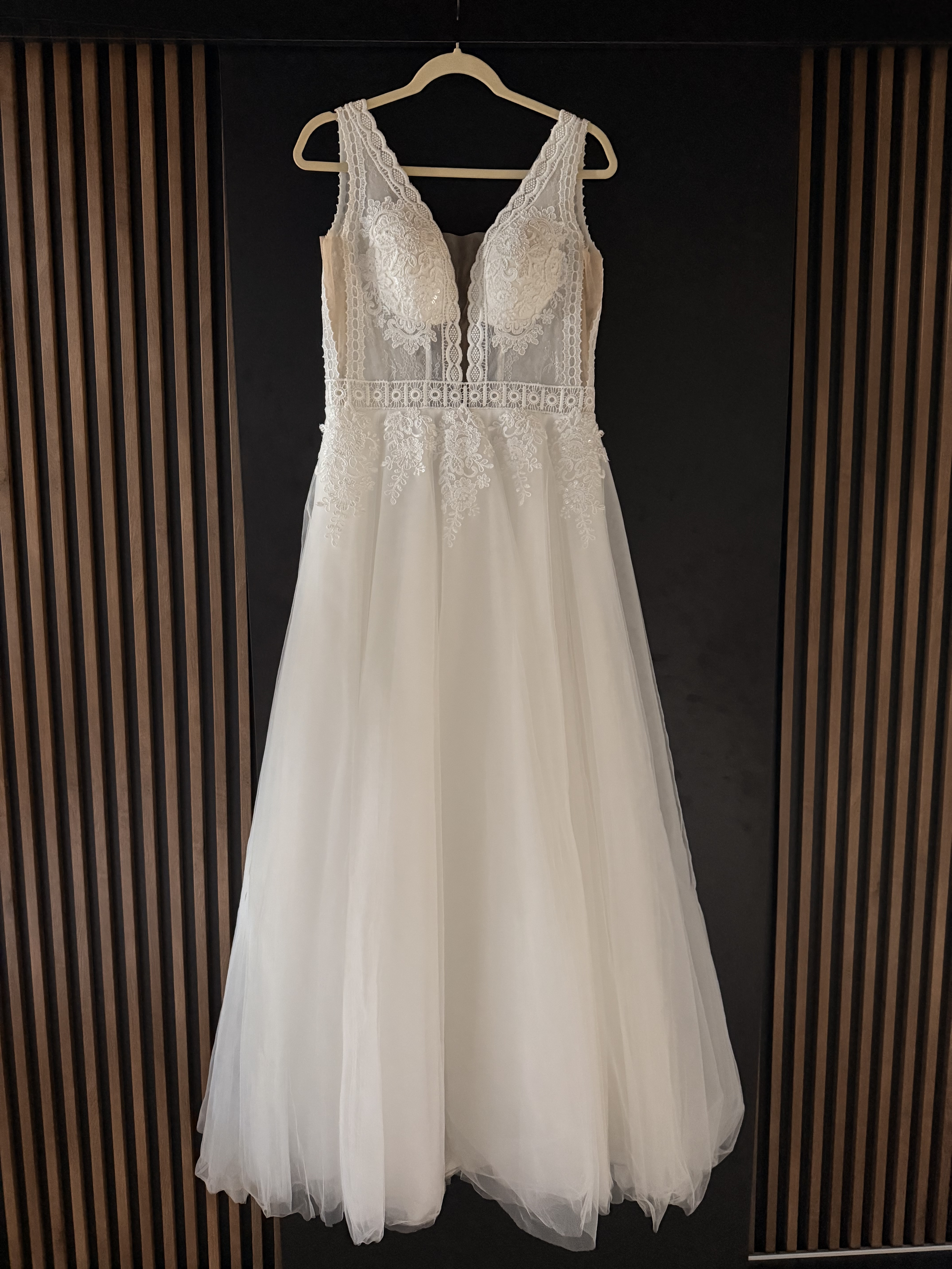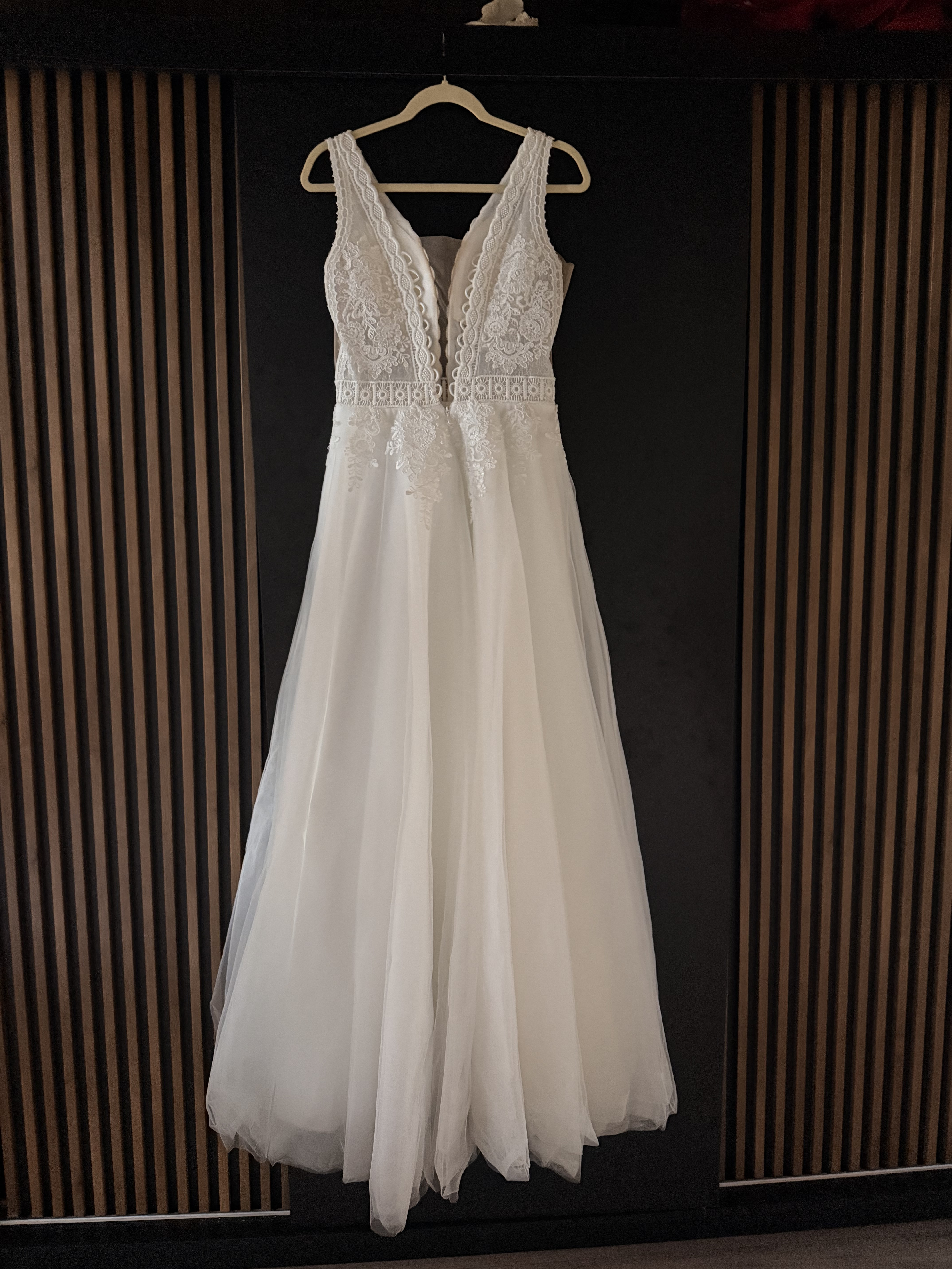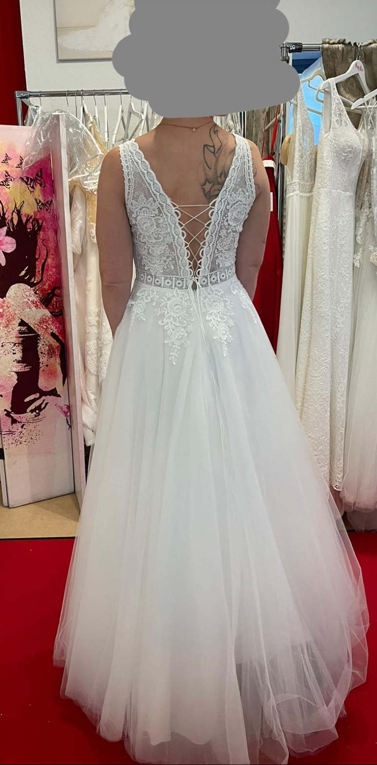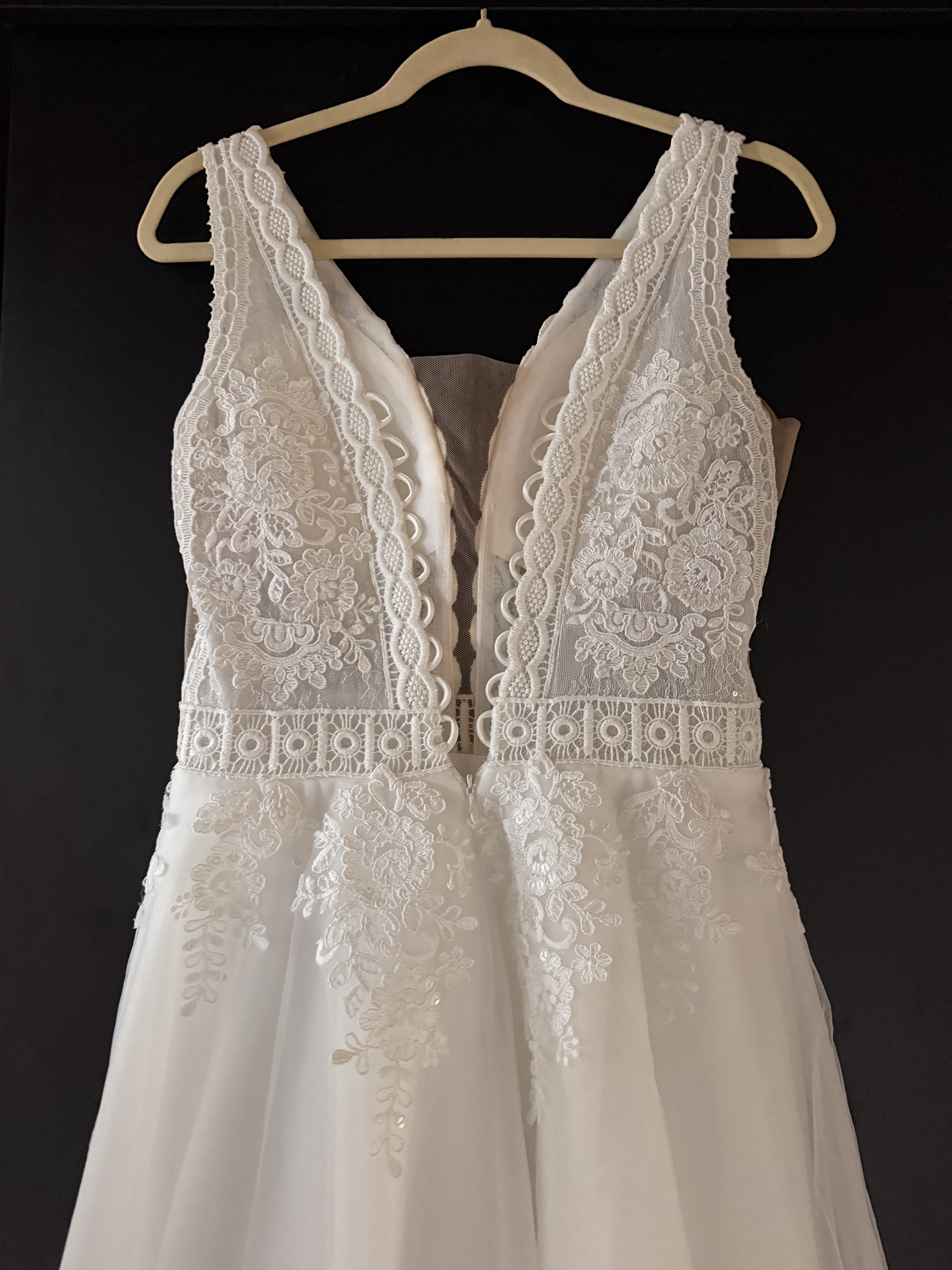 "Ich verkaufe mein traumhaft schönes Brautkleid im Boho-Stil, das ich nur einmal getragen habe.