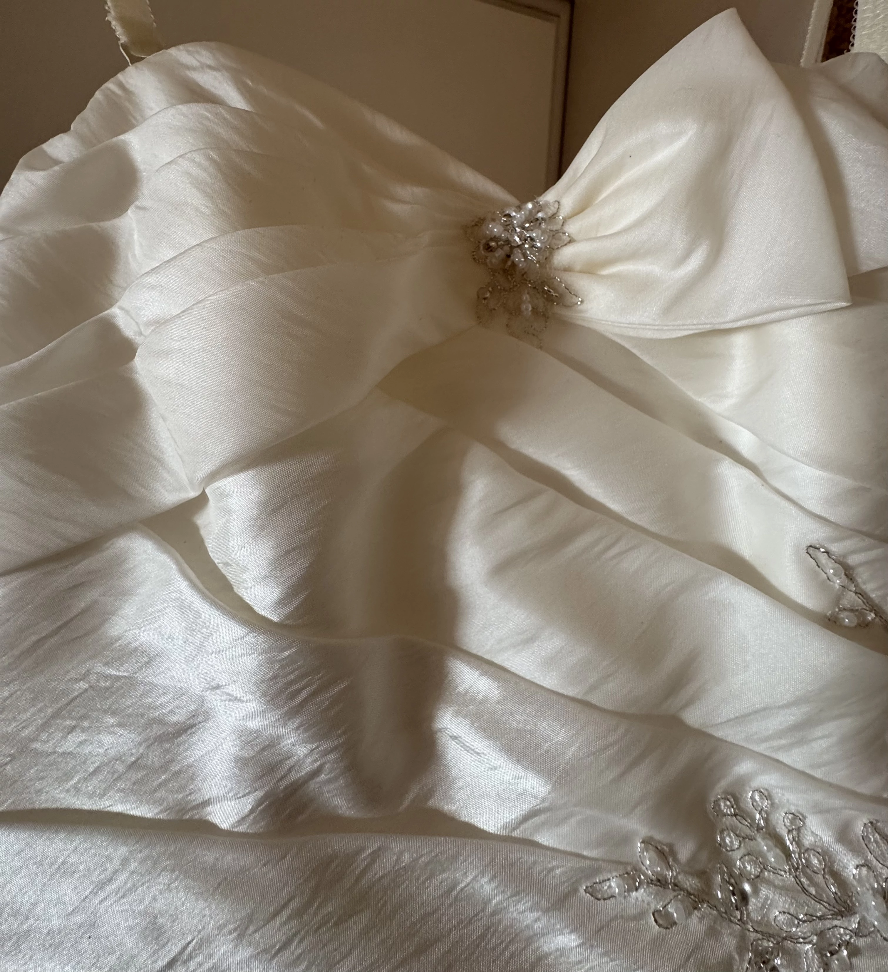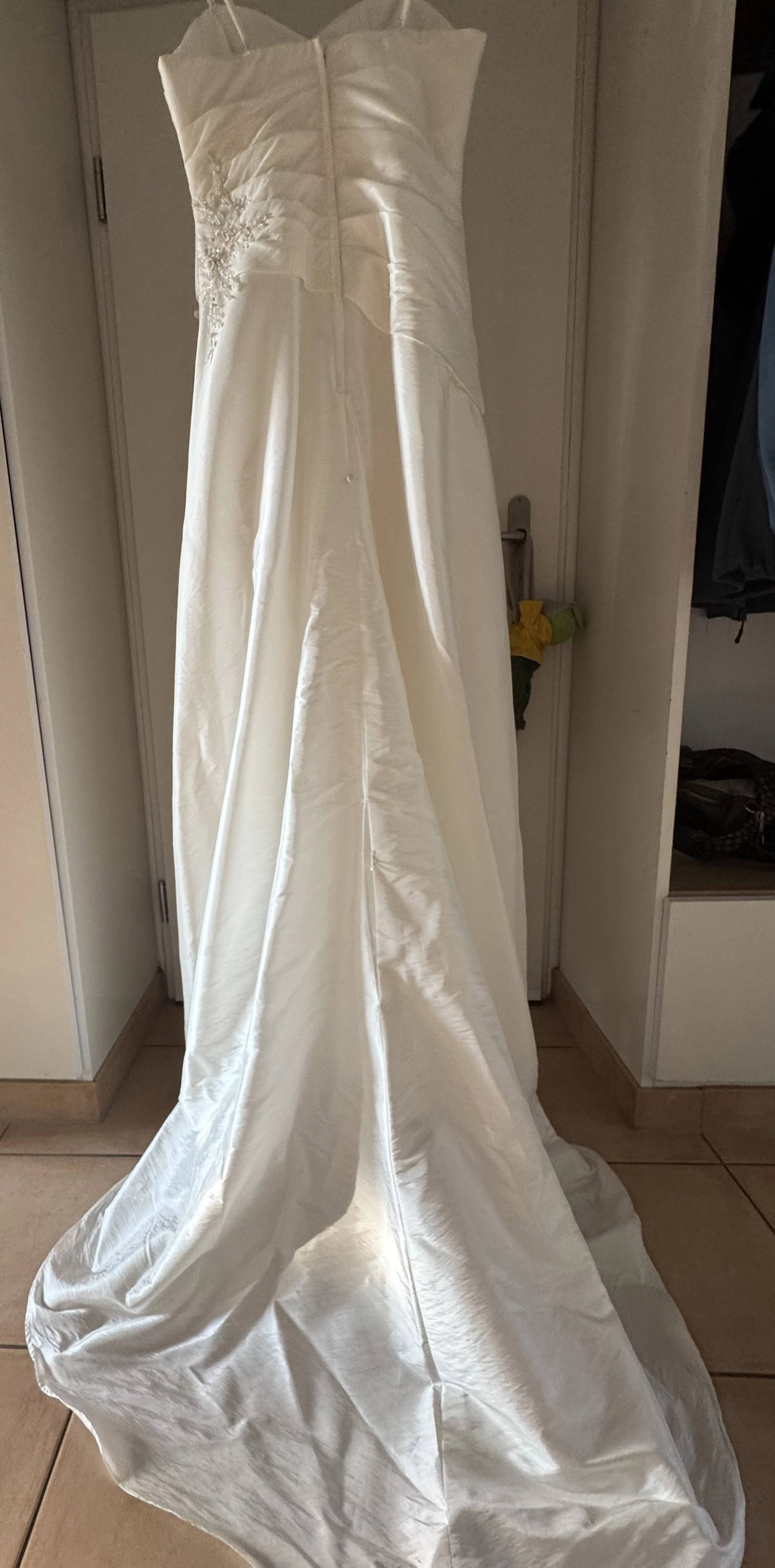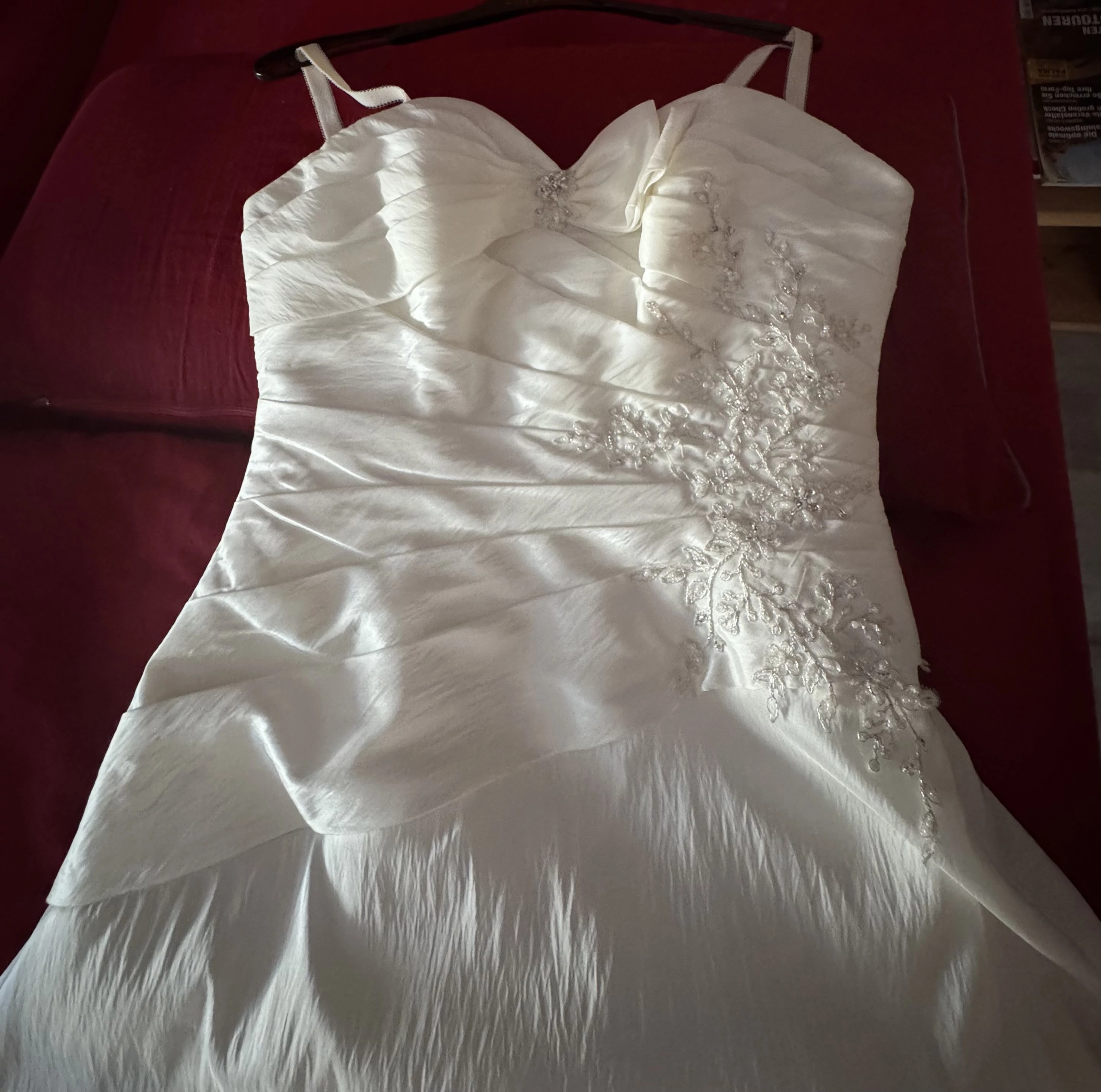 Es wurde nur einmal am Tag der Kirchlichen Trauung getragen, aber nun ist der Zeitpunkt gekommen, wo ich mich von dem Kleid trennen möchte, da es zum „Hängen am Schrank“ zu schade ist.