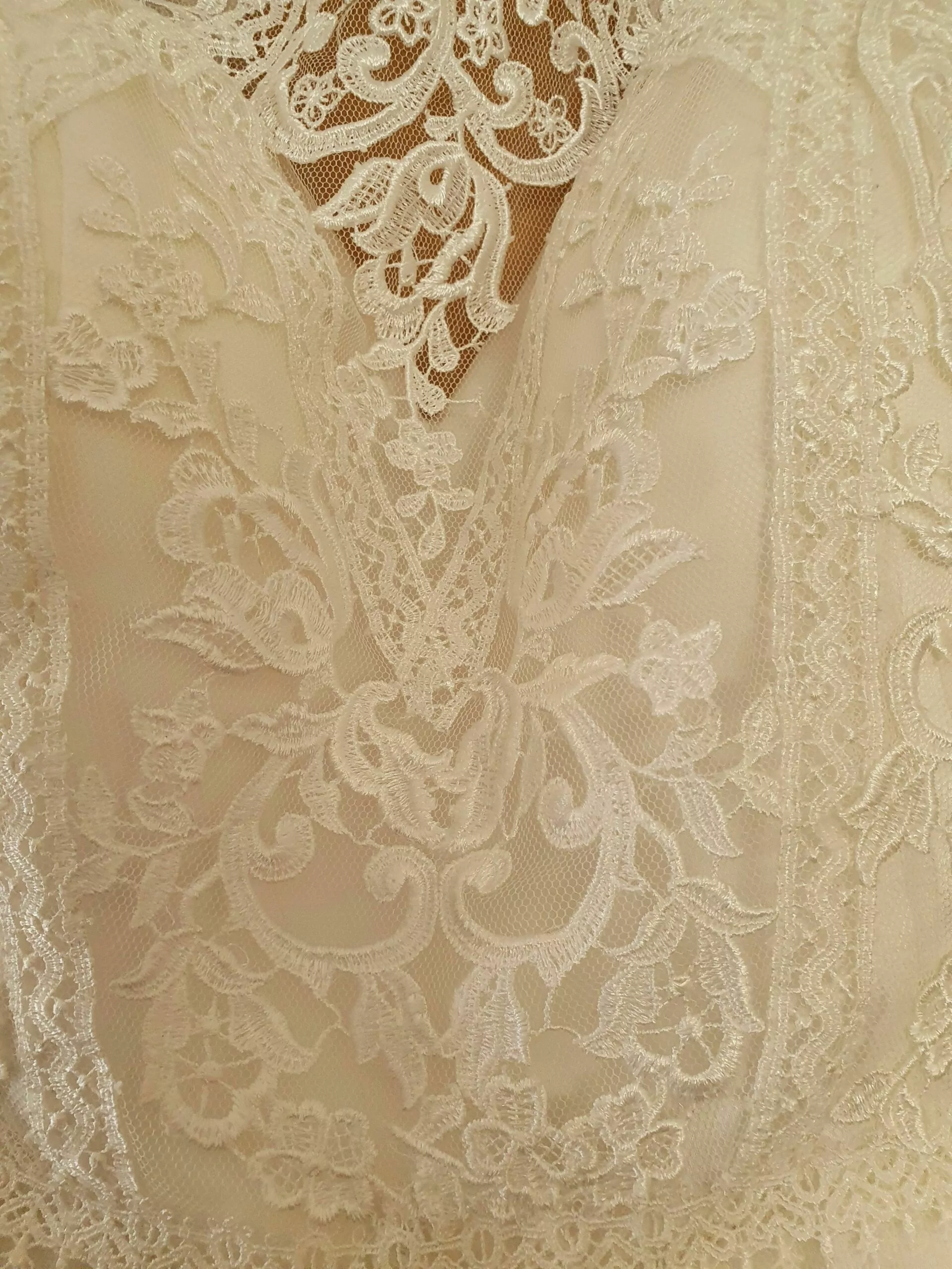 Grösse: 36 (Kleid war ursprünglich größer wurde aber von einer professionellen Schneiderin für Brautkleider kleiner gemacht)