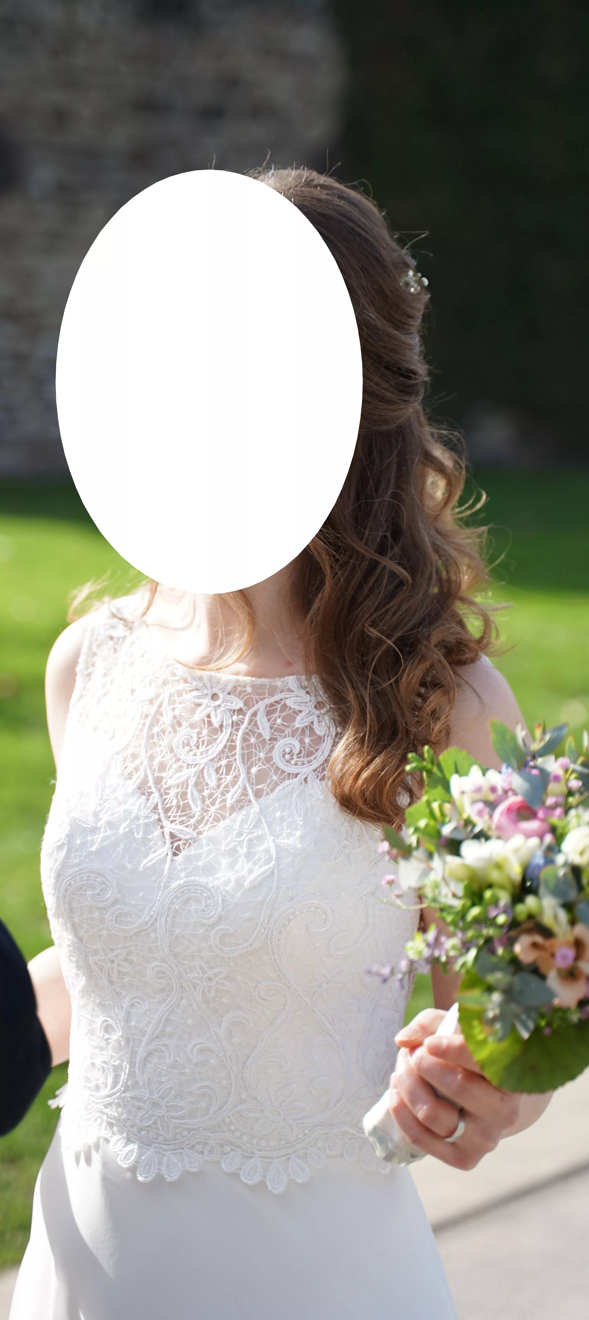 Das Kleid wurde 1x am Hochzeitstag getragen und danach gereinigt. Es hat keine Beschädigungen.