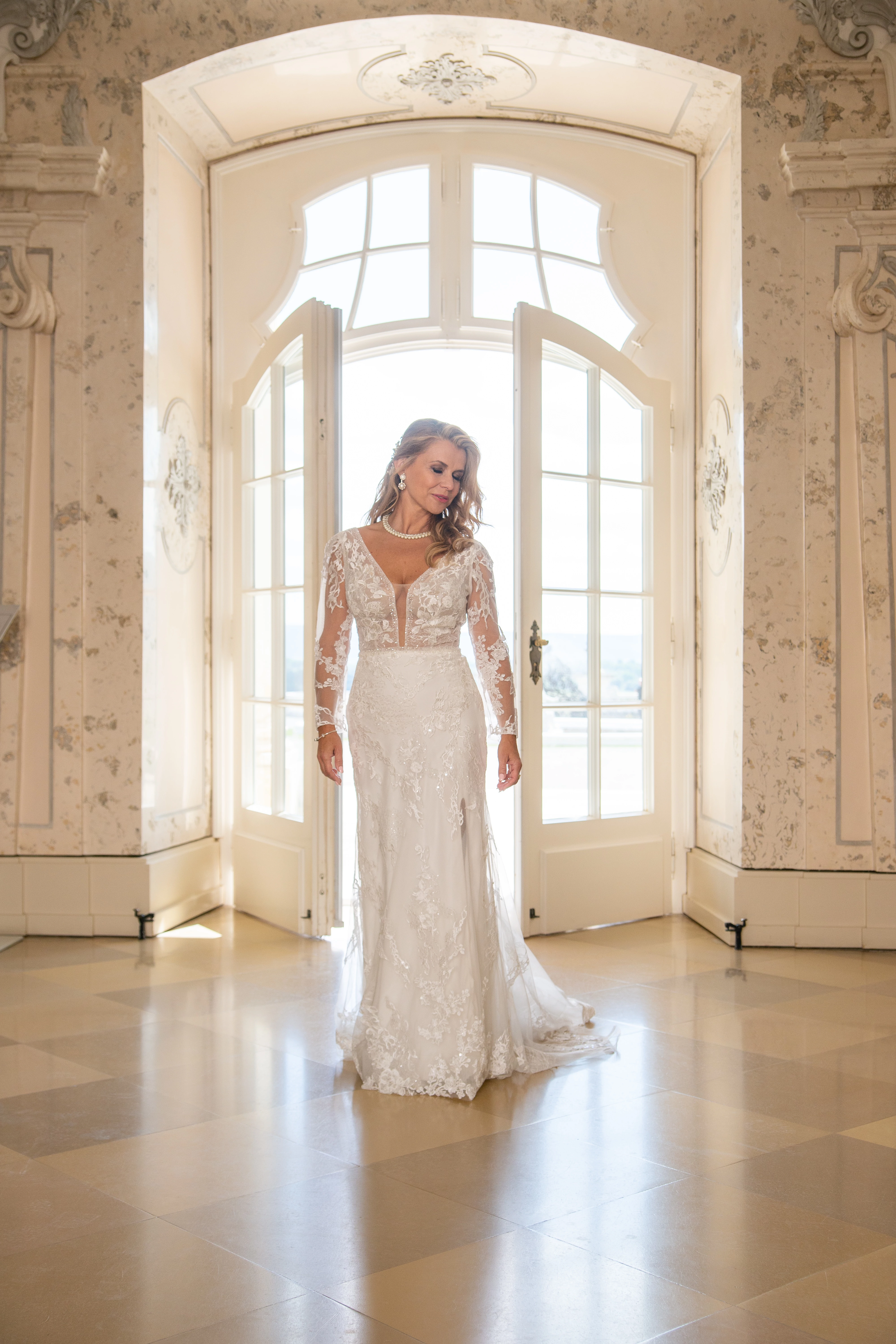 "Wunderschöne Spitze, die an den Ärmeln transparent gearbeitet ist, ein großer, dezenter Ausschnitt, ein verführerisch freier Rücken und eine zarte Schleppe – ich habe mich in diesem Kleid wirklich außergewöhnlich gefühlt."