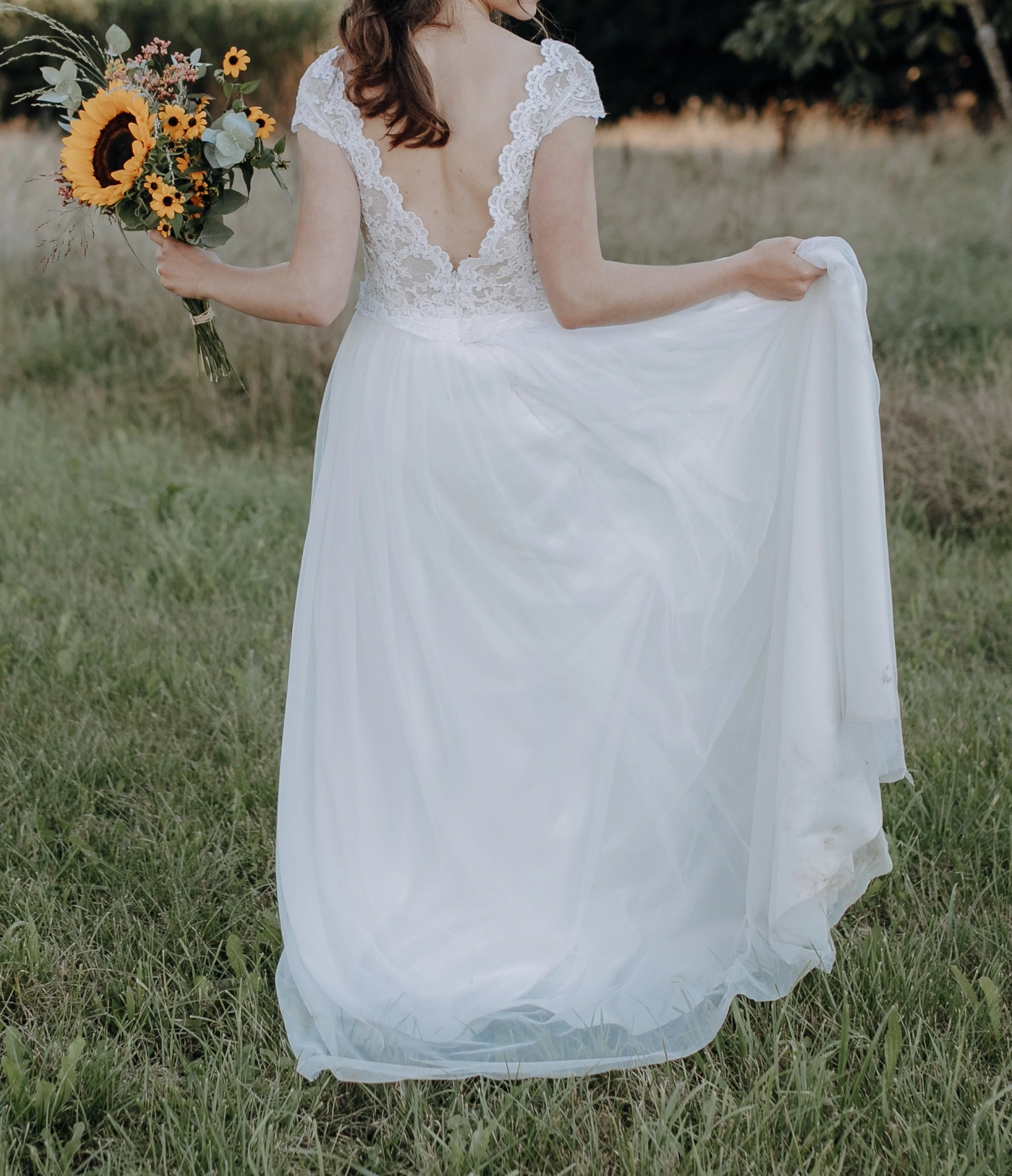 "Verkaufe mein wunderschönes Hochzeitskleid (schweren Herzens!), das extra für mich maßgeschneidert wurde.