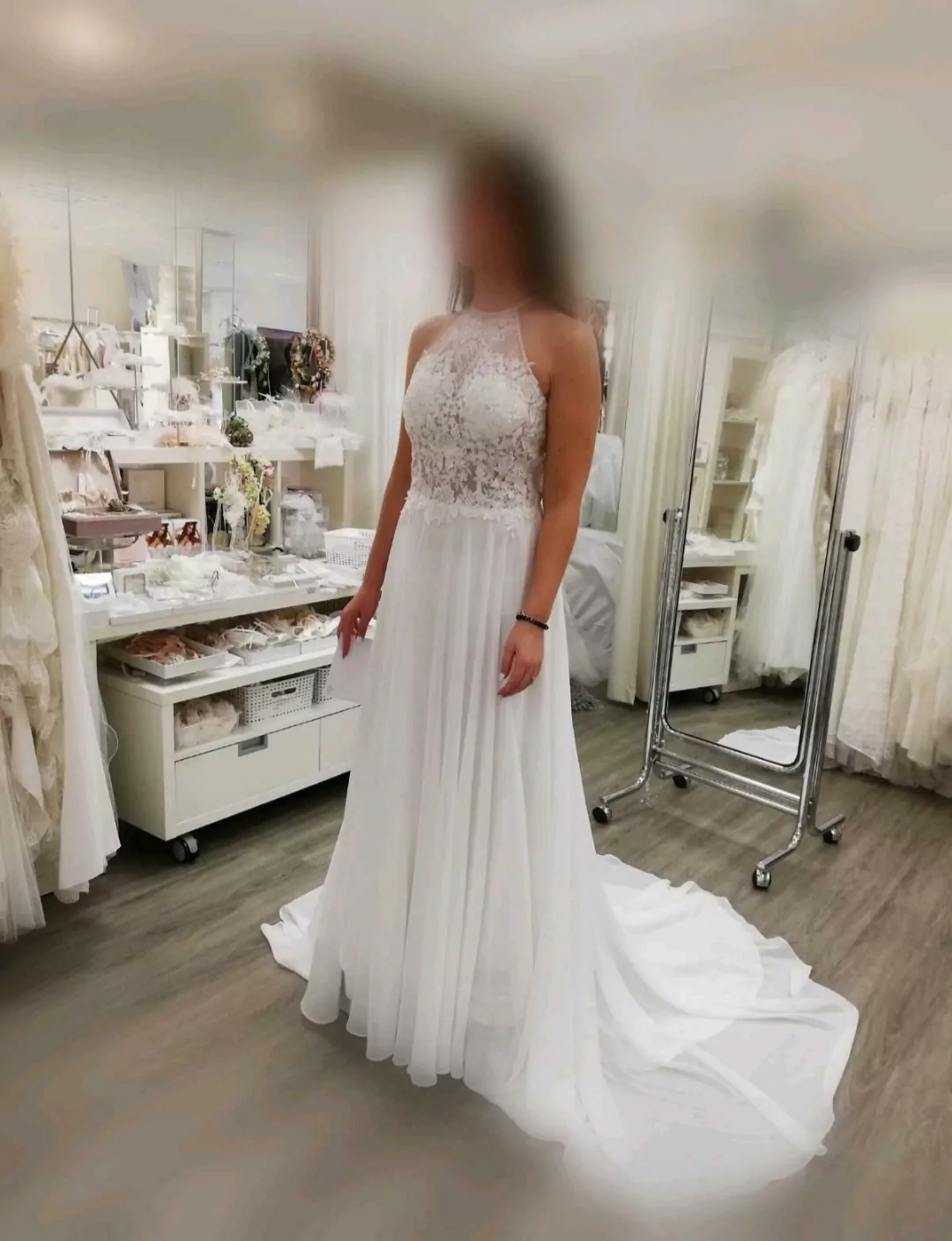 "Ich biete hier mein Brautkleid, gekauft im August 2019, an. Aufgrund meiner Schwangerschaft blieb es am Ende komplett ungetragen!