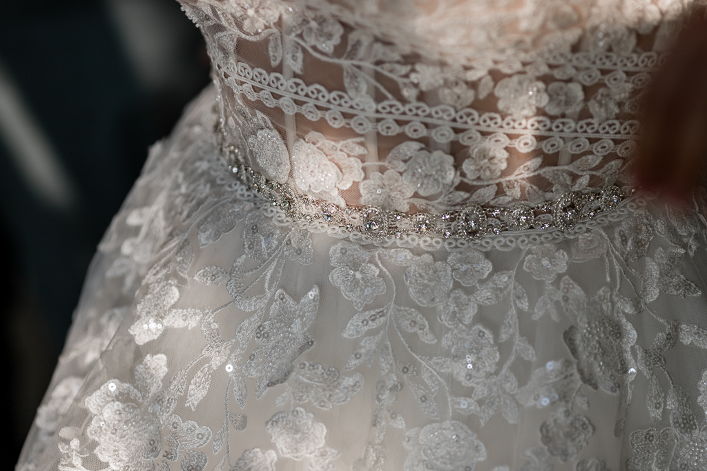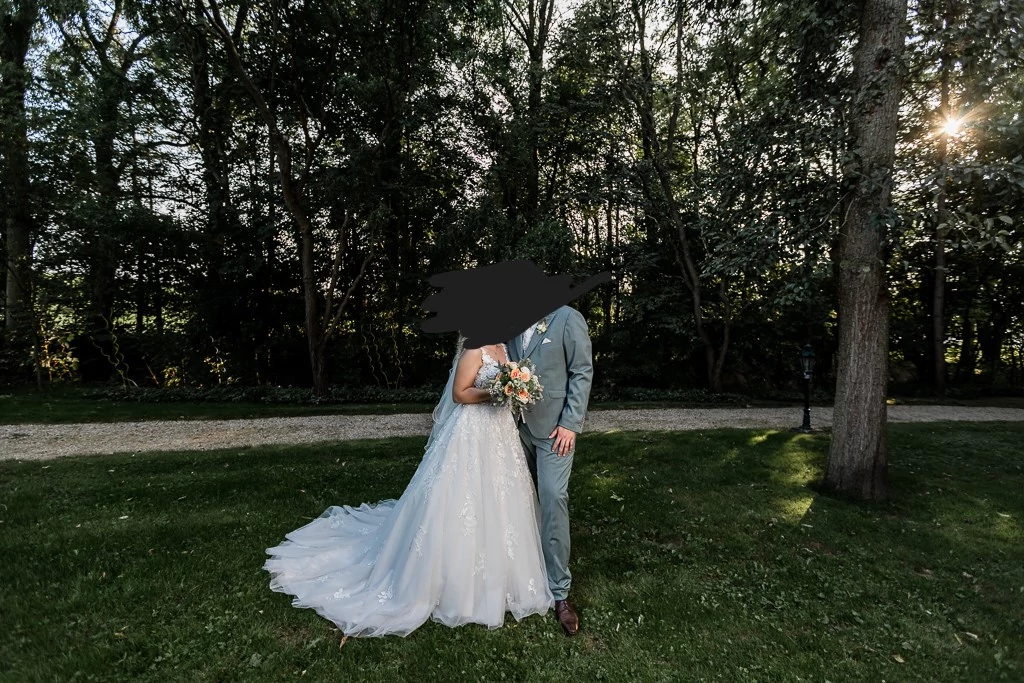 "Ich biete hier mein wunderschönes Hochzeitskleid an, die traumhafte Blumenspitze fängt als Highlight im Oberteil an und zieht sich über den gesamten Rock bis nach unten. Es sind quasi unsichtbare Knöpfe am Rock angenäht mit denen sich die Schleppe ganz einfach hochbinden lässt"