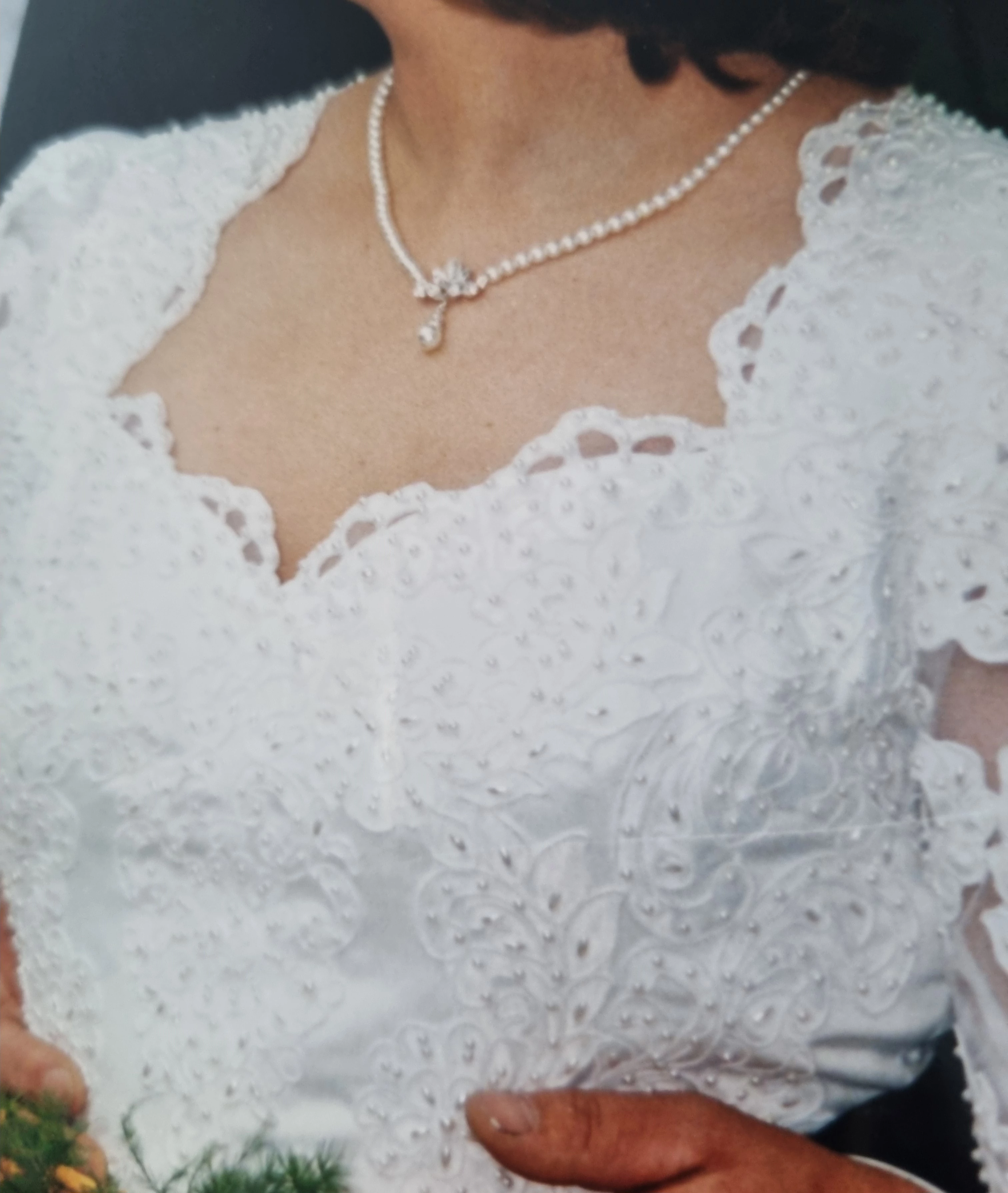 Verzierungen: Perlen / Pailletten, Schleife, Spitze / Stickerei