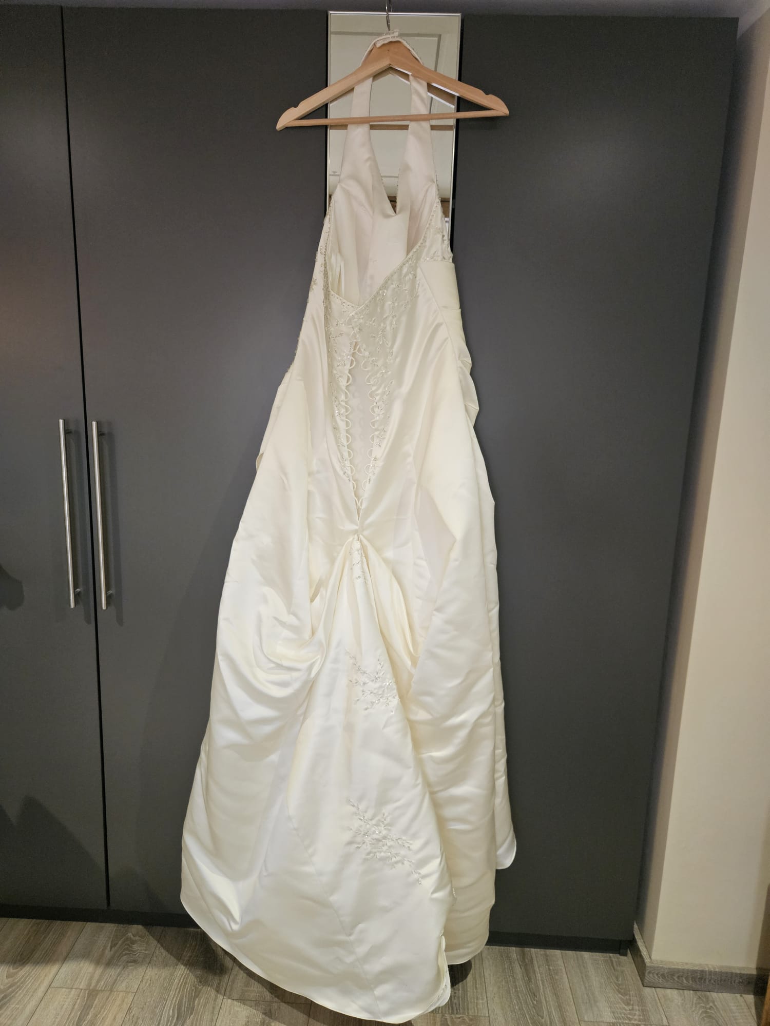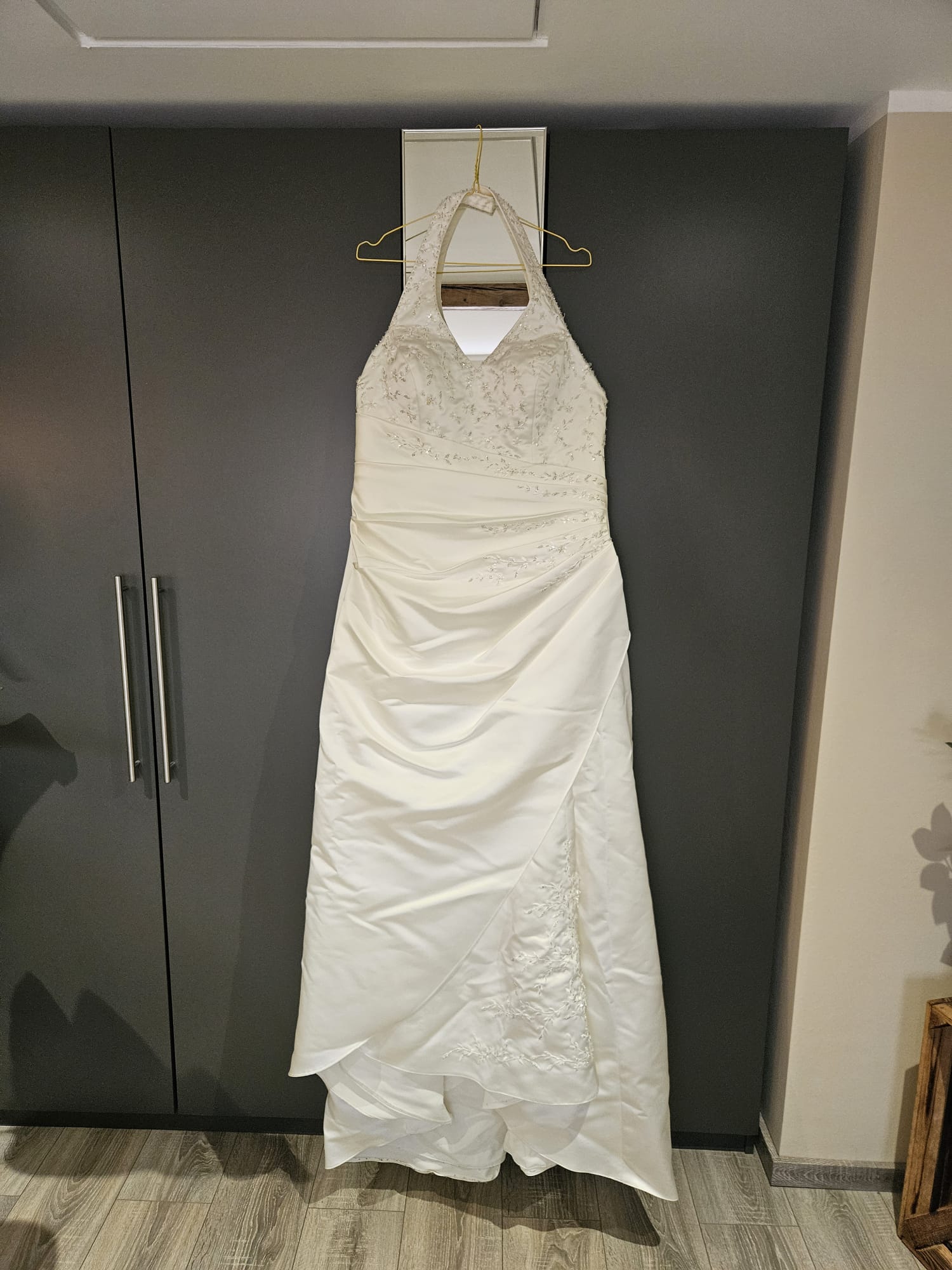 "Ich verkaufe mein wunderschönes Hochzeitskleid in Größe 48, das ich einmal zu meiner Hochzeit getragen habe.