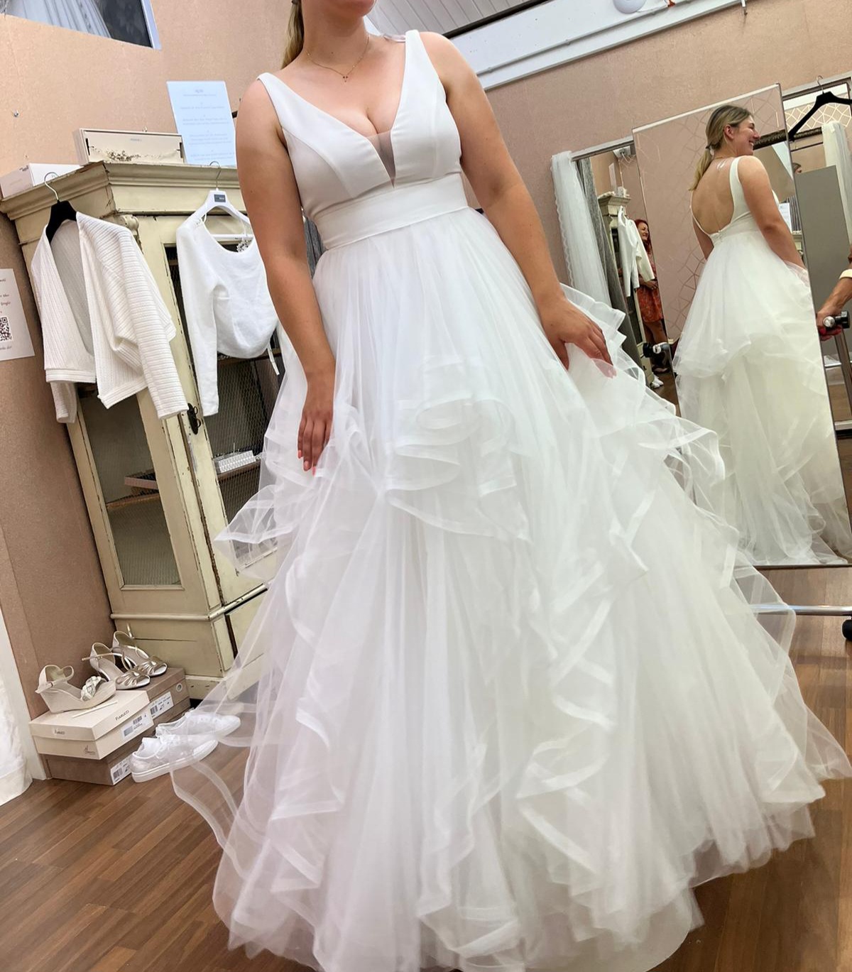 "Schöner Ausschnitt mit eingenähten Cups, guter Halt, schöner Rücken Ausschnitt und gekürzt (keine Schleppe). Perfekt zum Tanzen."