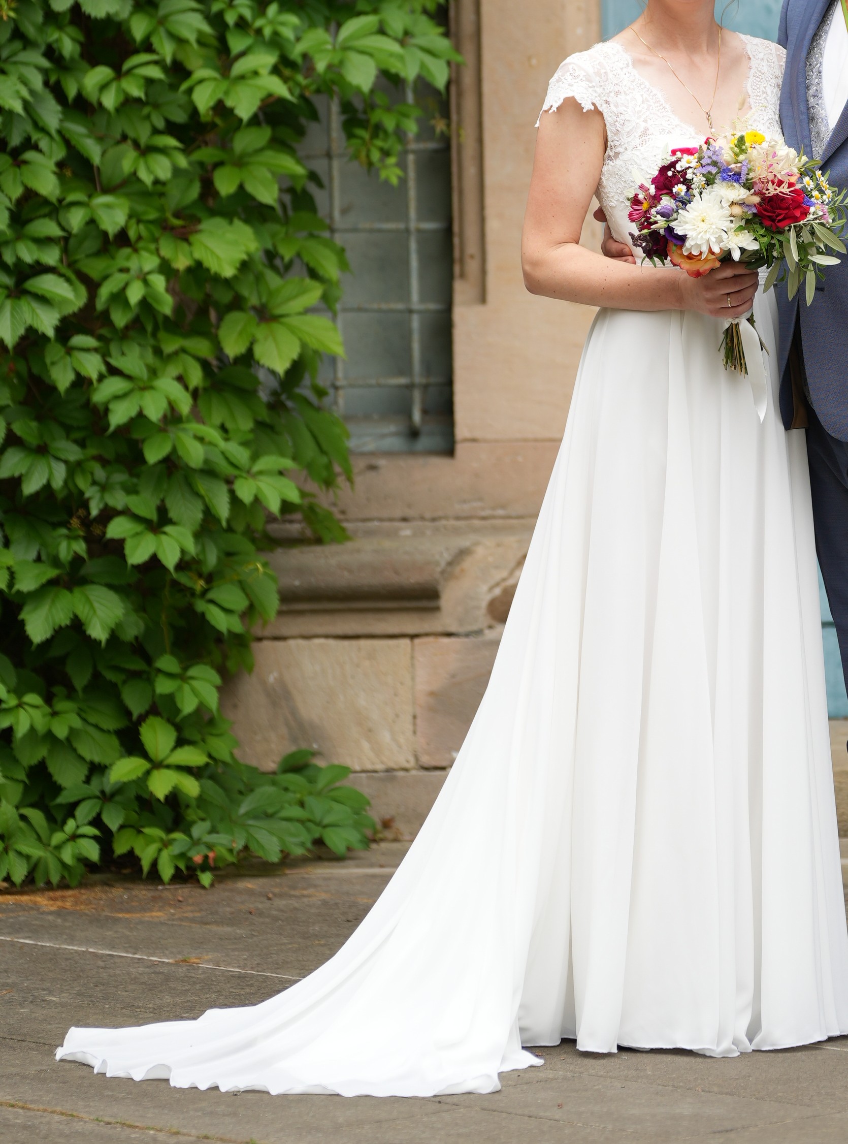 Ich würde mich freuen, wenn das Kleid eine weitere Braut glücklich machen kann. Mich hat es direkt beim ersten Blick und Anprobieren gefunden."