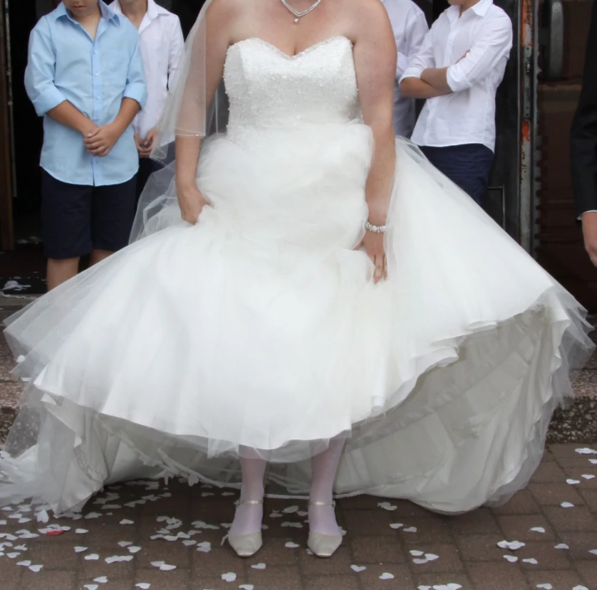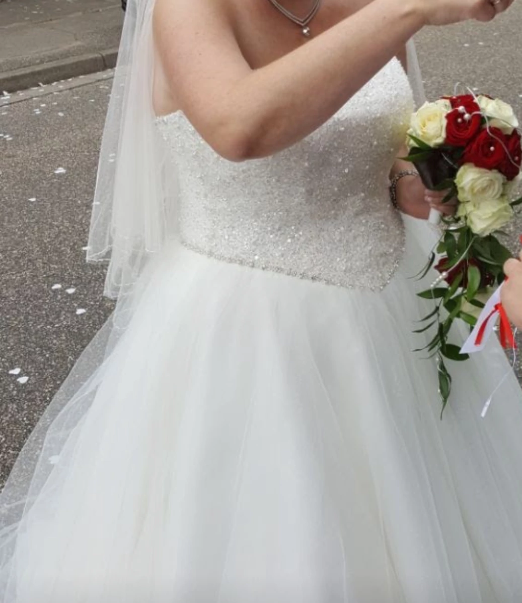 "Traum Prinzessinnen Brautkleid in der Farbe Ivory inkl. Reifrock und Diadem.  Es wurde leider nur einmal getragen. Das Kleid ist mit Glitzer und Tüll bestückt.