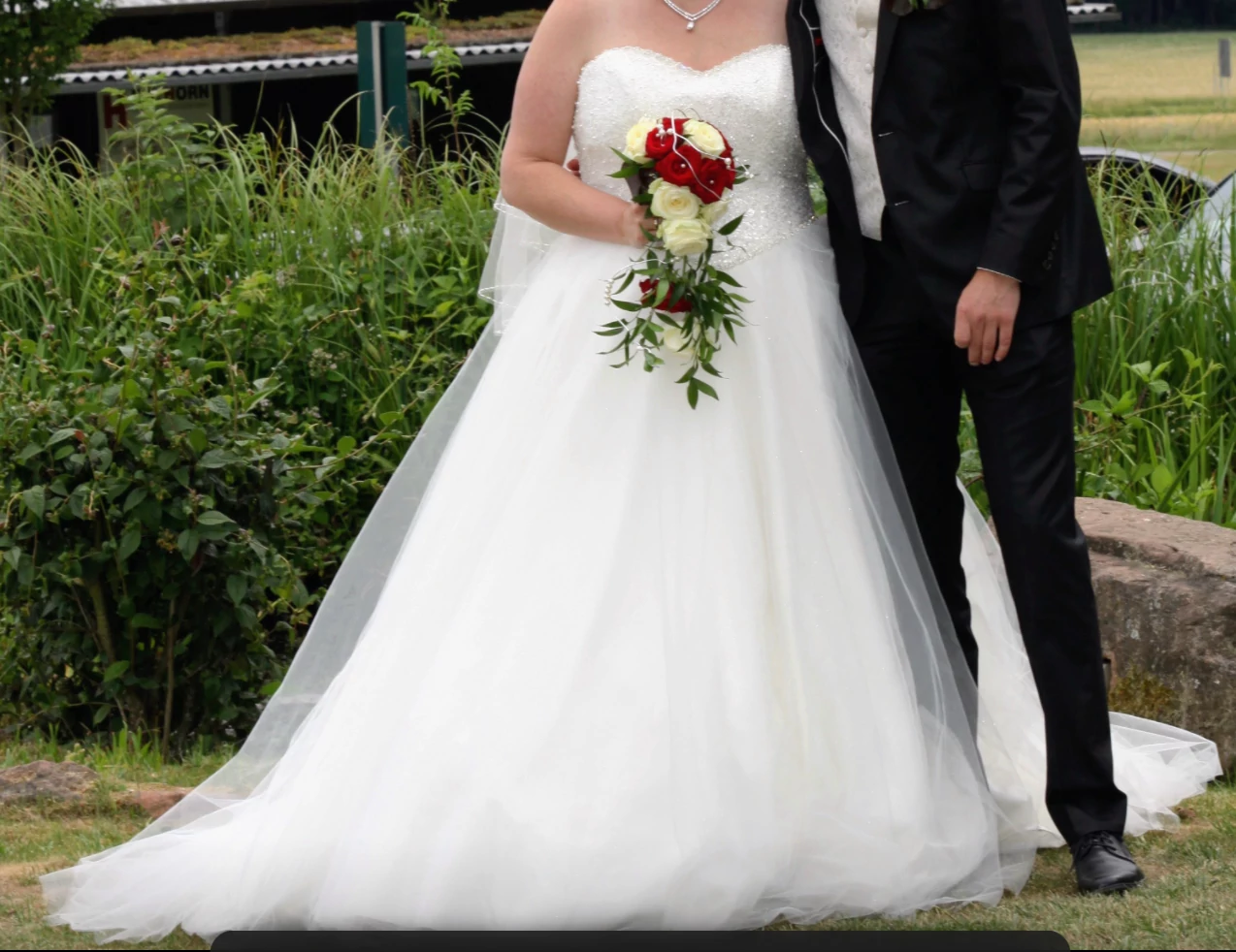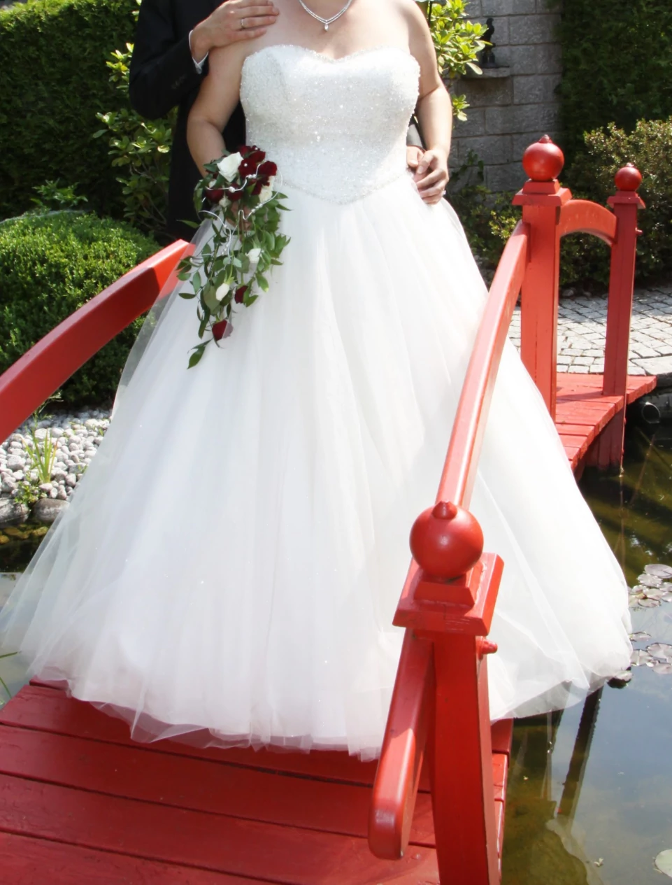 Größe: 48 - Durch die Rückenschnierung von Gr. 48-52 tragbar, das Kleid ist Bodenlang bei einer Körpergröße von 1,75m