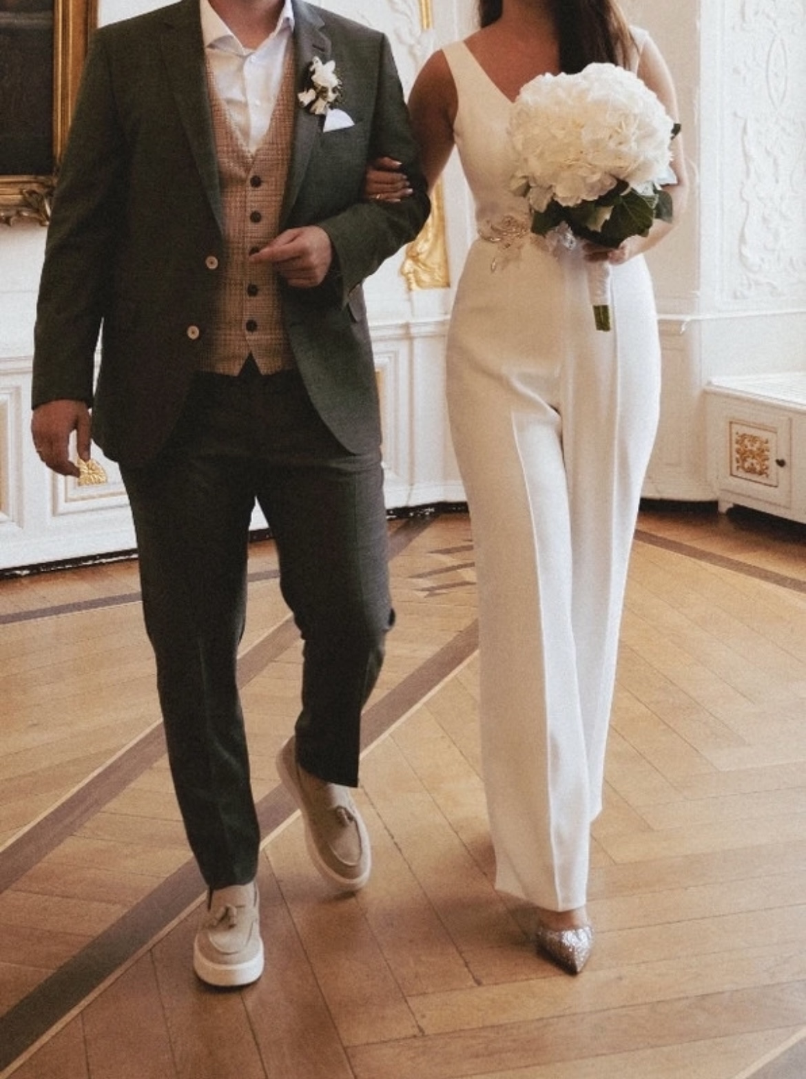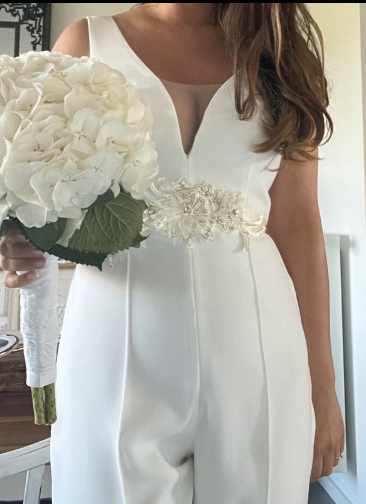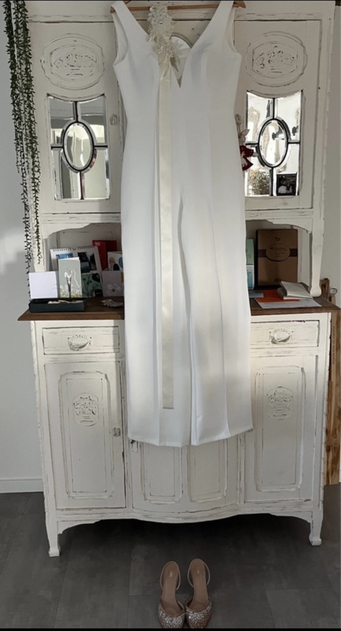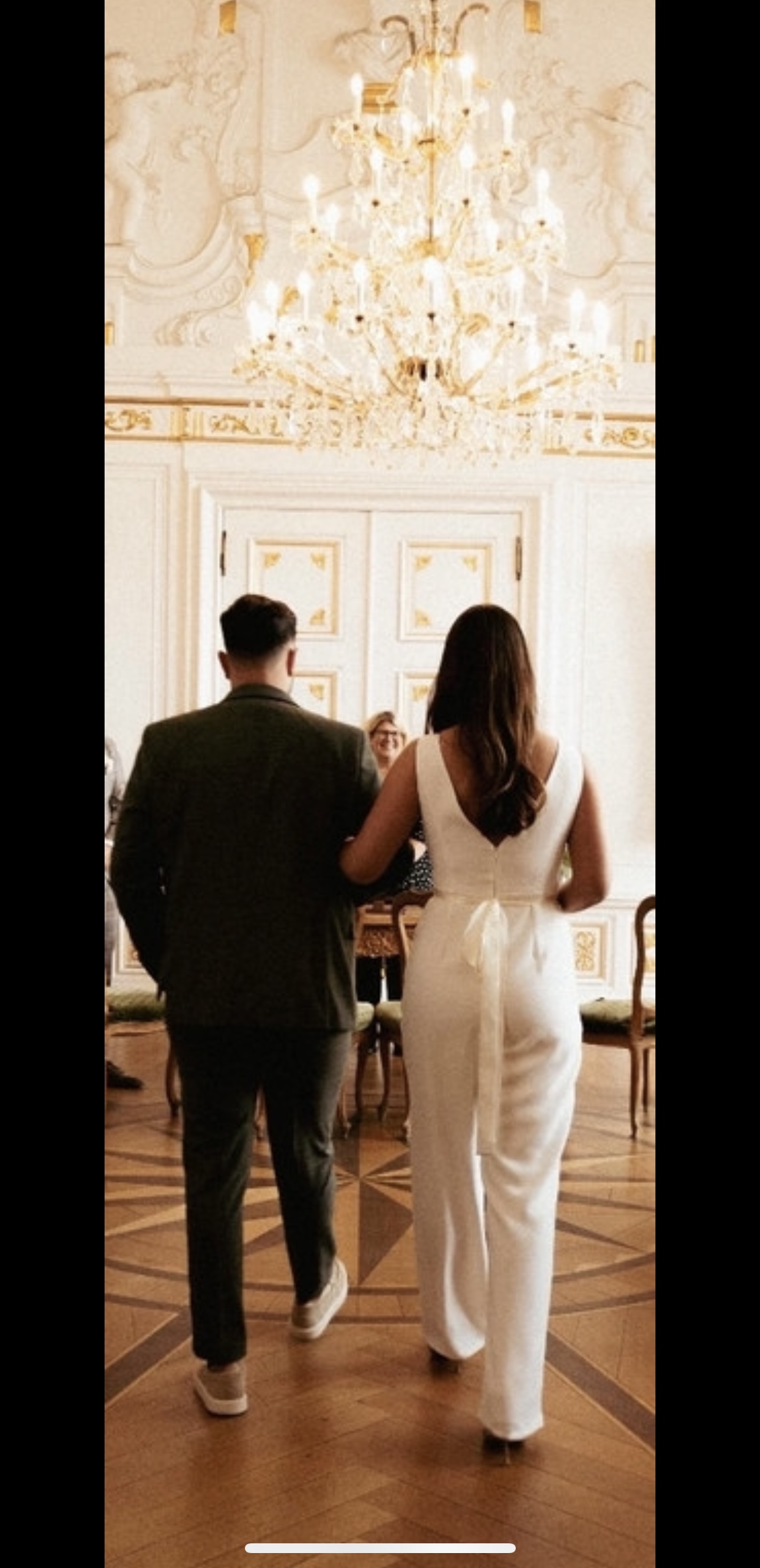 Der Jumpsuit wurde ein Mal zu meiner standesamtlichen Hochzeit im September 2024 getragen.
