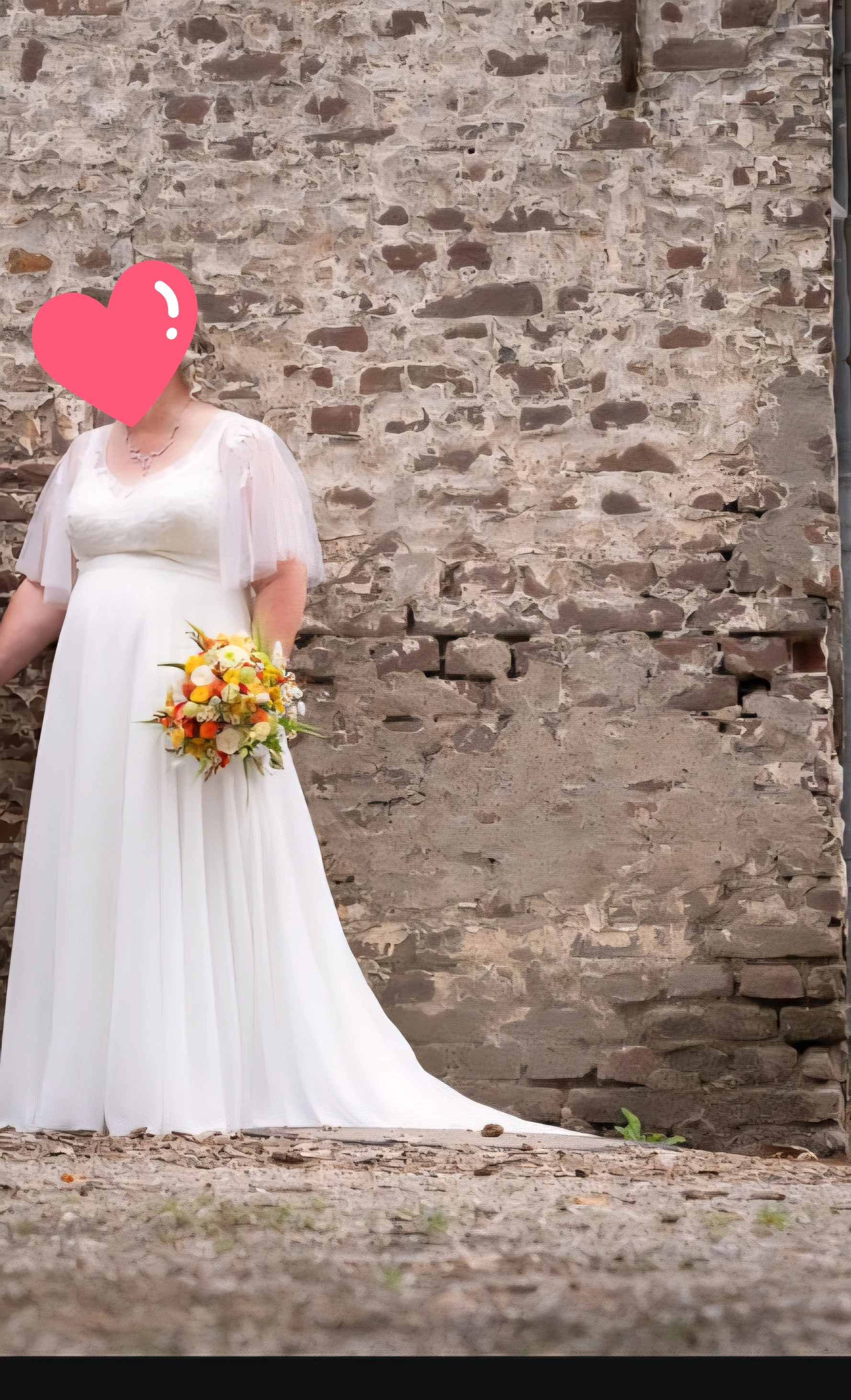 "Da ich eigentlich kein Kleid wollte, ist hier jede weitere Erklärung eigentlich egal. Es war und ist ein Traum. Ich habe es damals widerwillig angezogen und es war wie für mich gemacht. Jede Braut sollte dieses Gefühl verspüren beim ersten Anblick. Es trägt sich super angenehm und für eine Sommer Hochzeit einfach perfekt. "