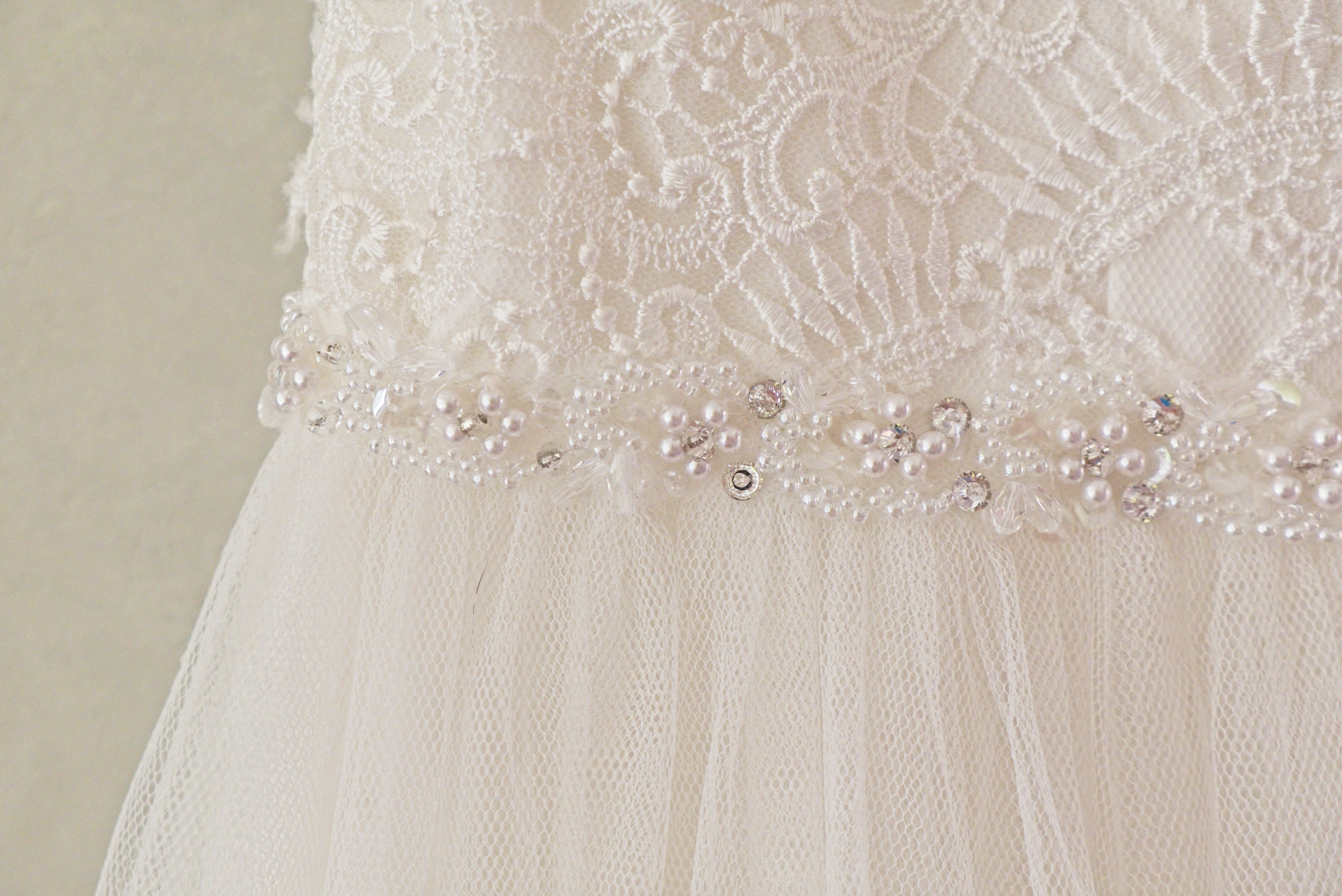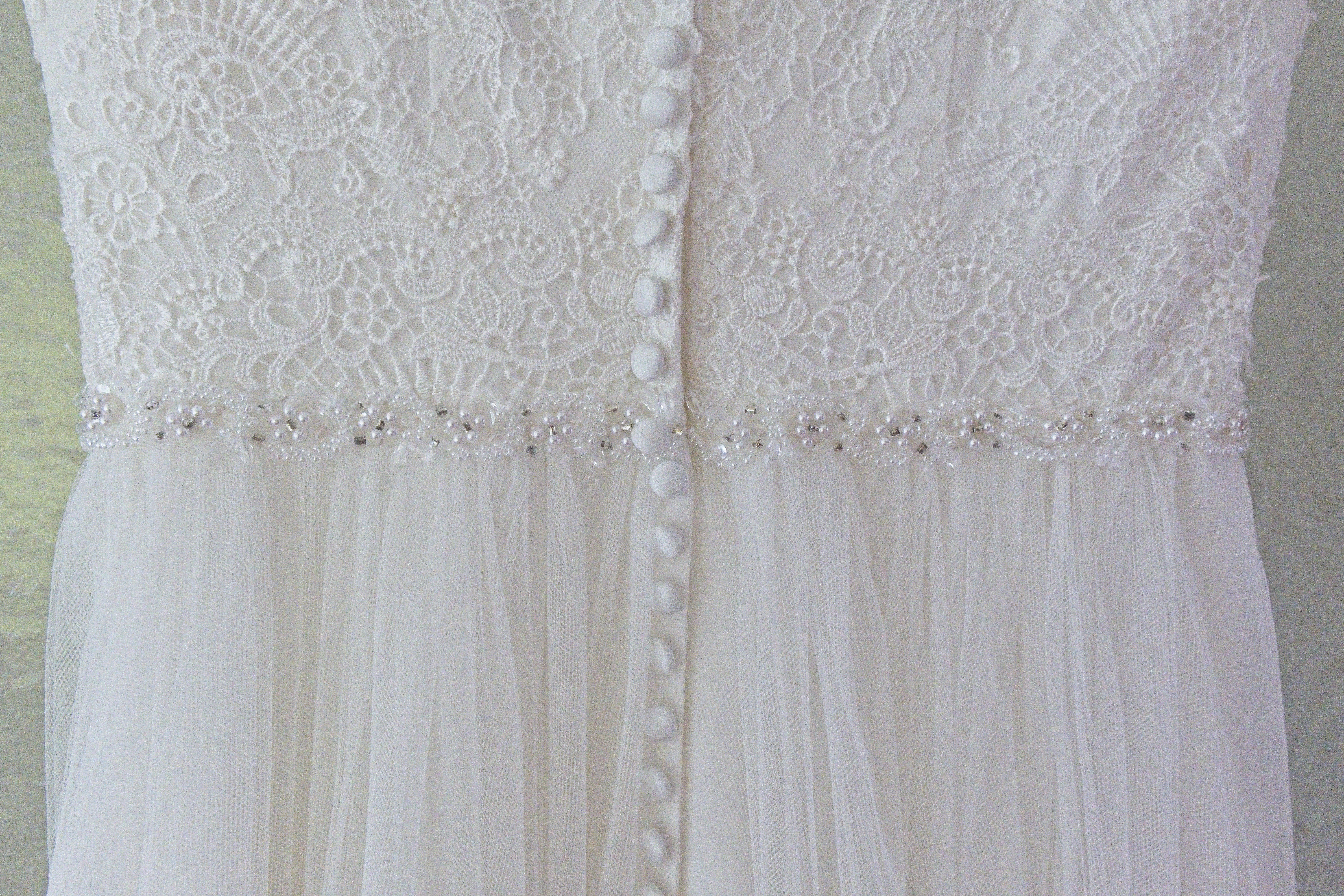 Verzierungen: Schmucksteine / Strass / Kristalle, Spitze / Stickerei