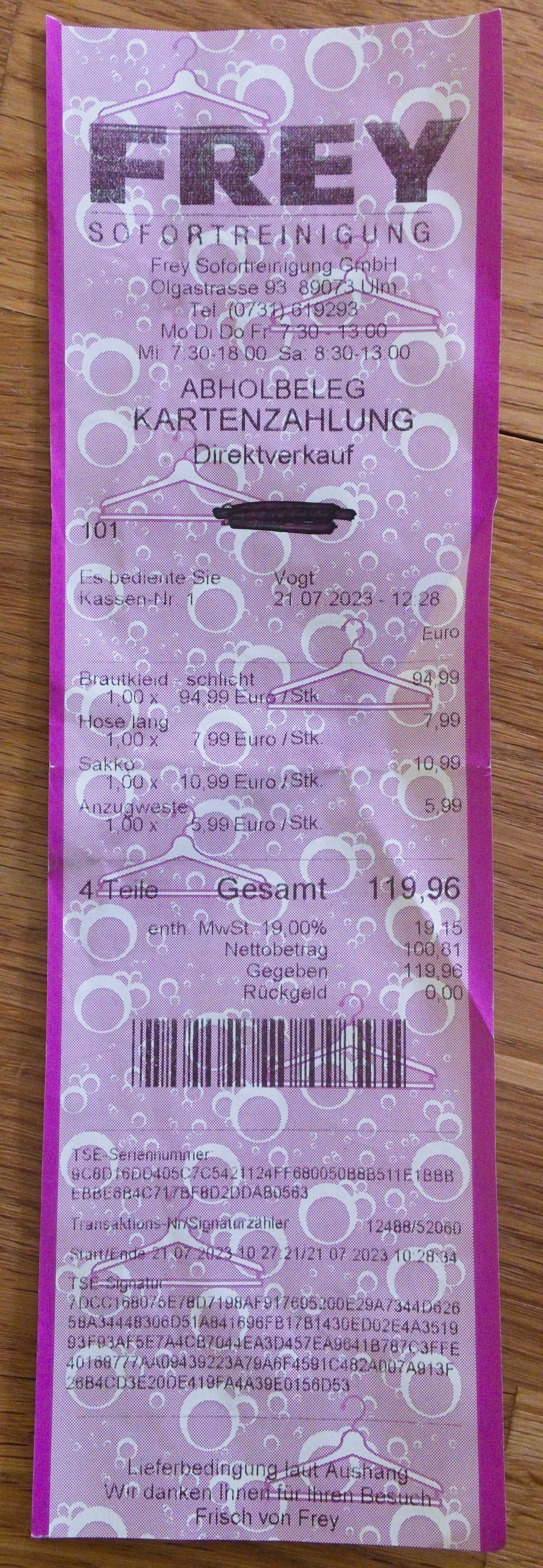 Professionell gereinigt: Ja