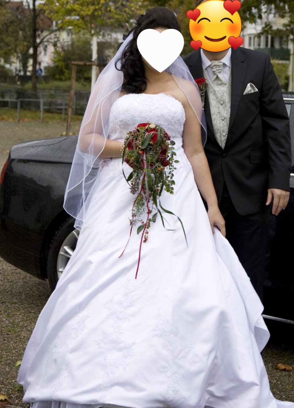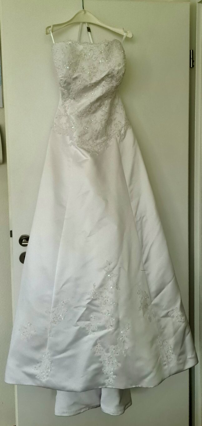 "Das perfekte Prinzessinnen Kleid für Damen mit einer großen Oberweite und Corsage im Rücken zum schnüren, abnehmbarer Schleppe,Glitzersteinen, ein Traum!"