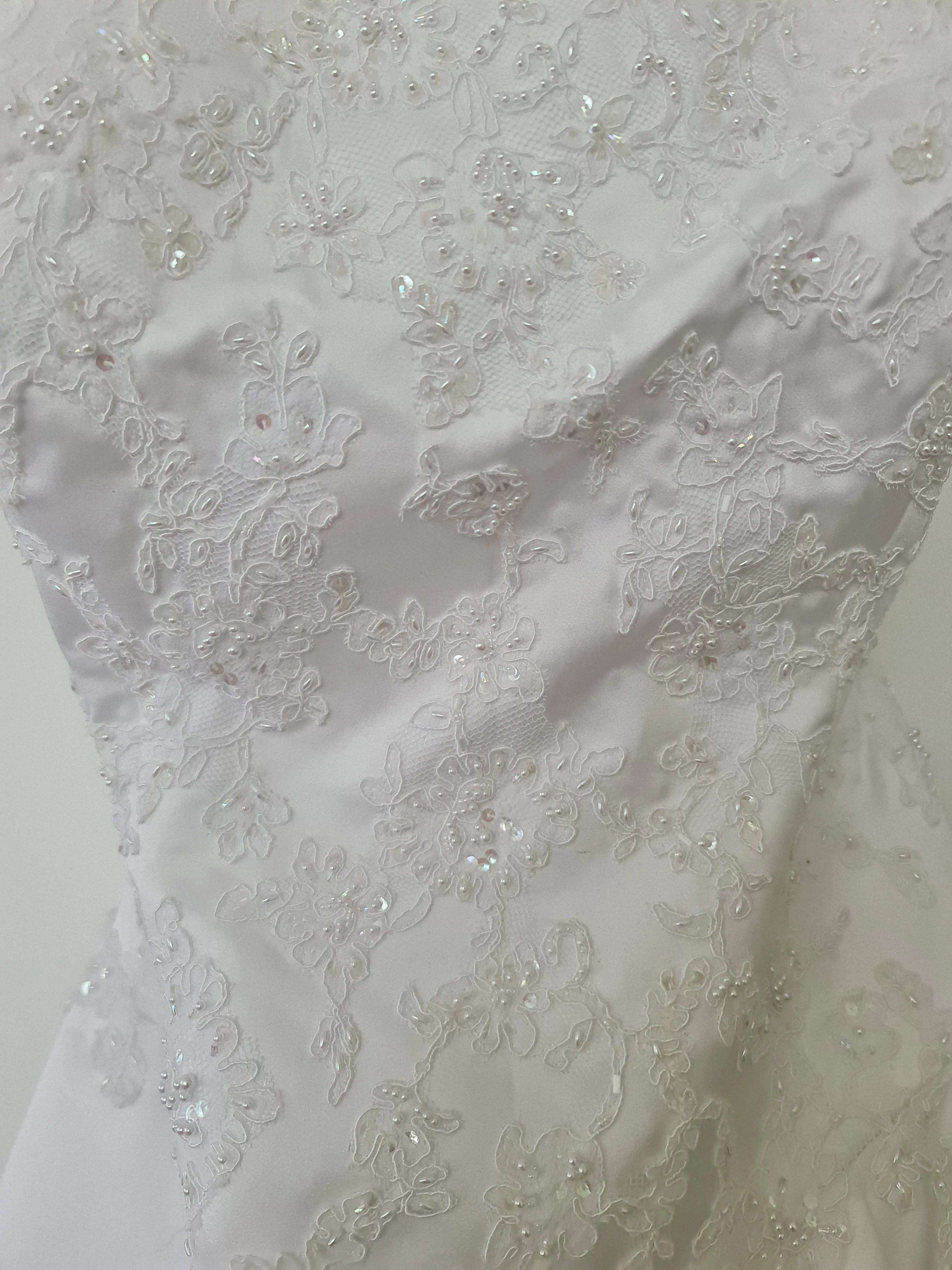 Das Kleid wurde nur einmal getragen und ist in einem sehr guten Zustand. Es lässt jede Braut wie eine Prinzessin aussehen und ist perfekt für eine märchenhafte Hochzeit.