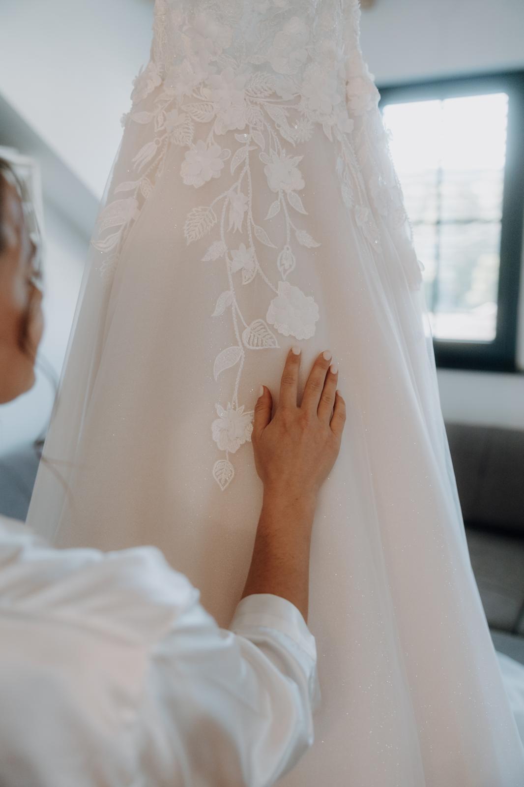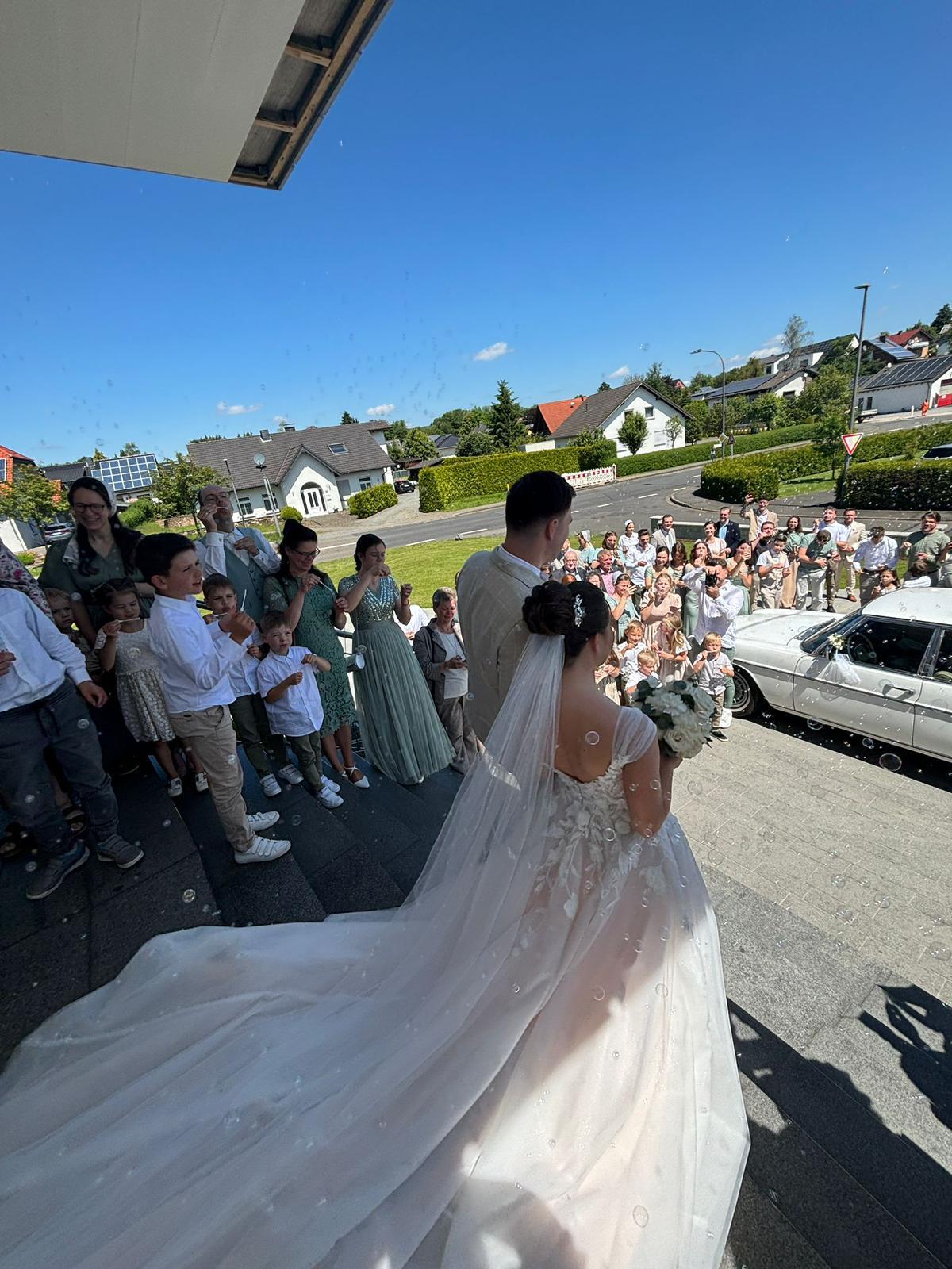 "Die Spitze und die lange Schleppe hat mir besonders an dem Kleid gefallen. Und das es nicht reinweiß ist, sondern Ivory.