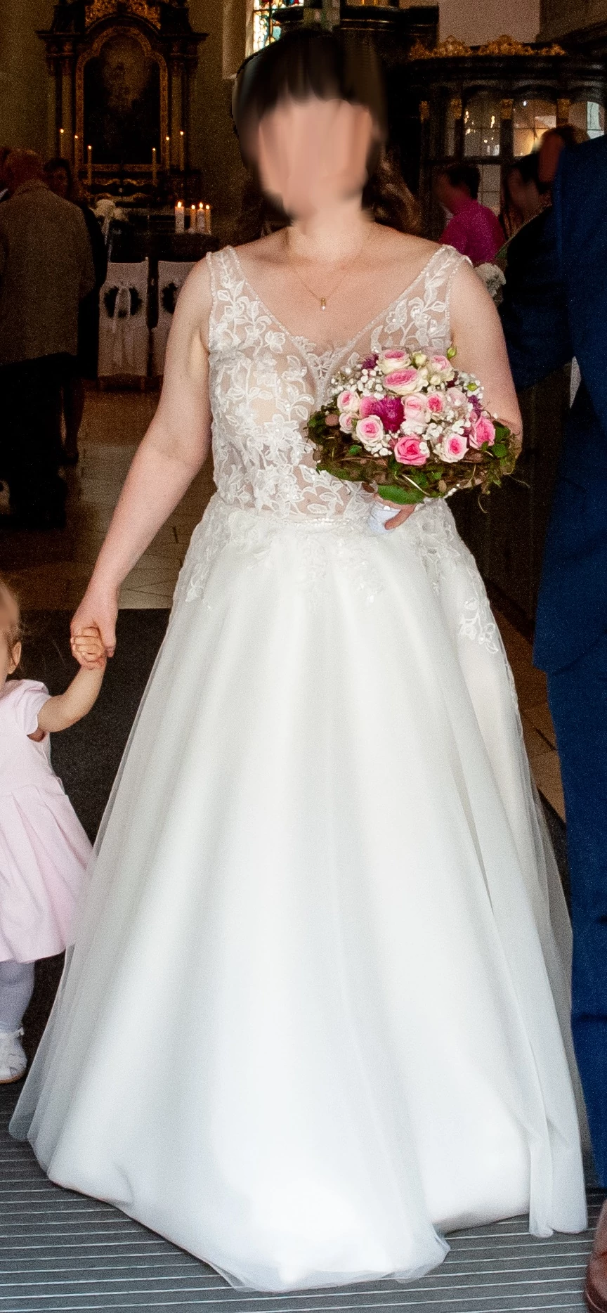Das Kleid ist gekürzt und ich habe es mit einer Größe von 162cm getragen."