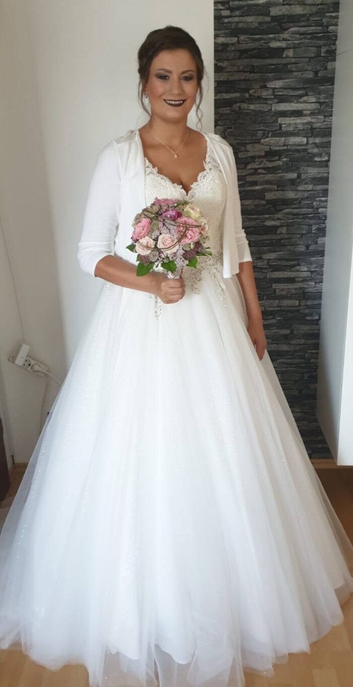 Größe: 44 - Tüllschichten wurden im schleppenbereich von der Schneiderin fixiert, sodass sich alle tüllschichten beim drehen mitbewegen.