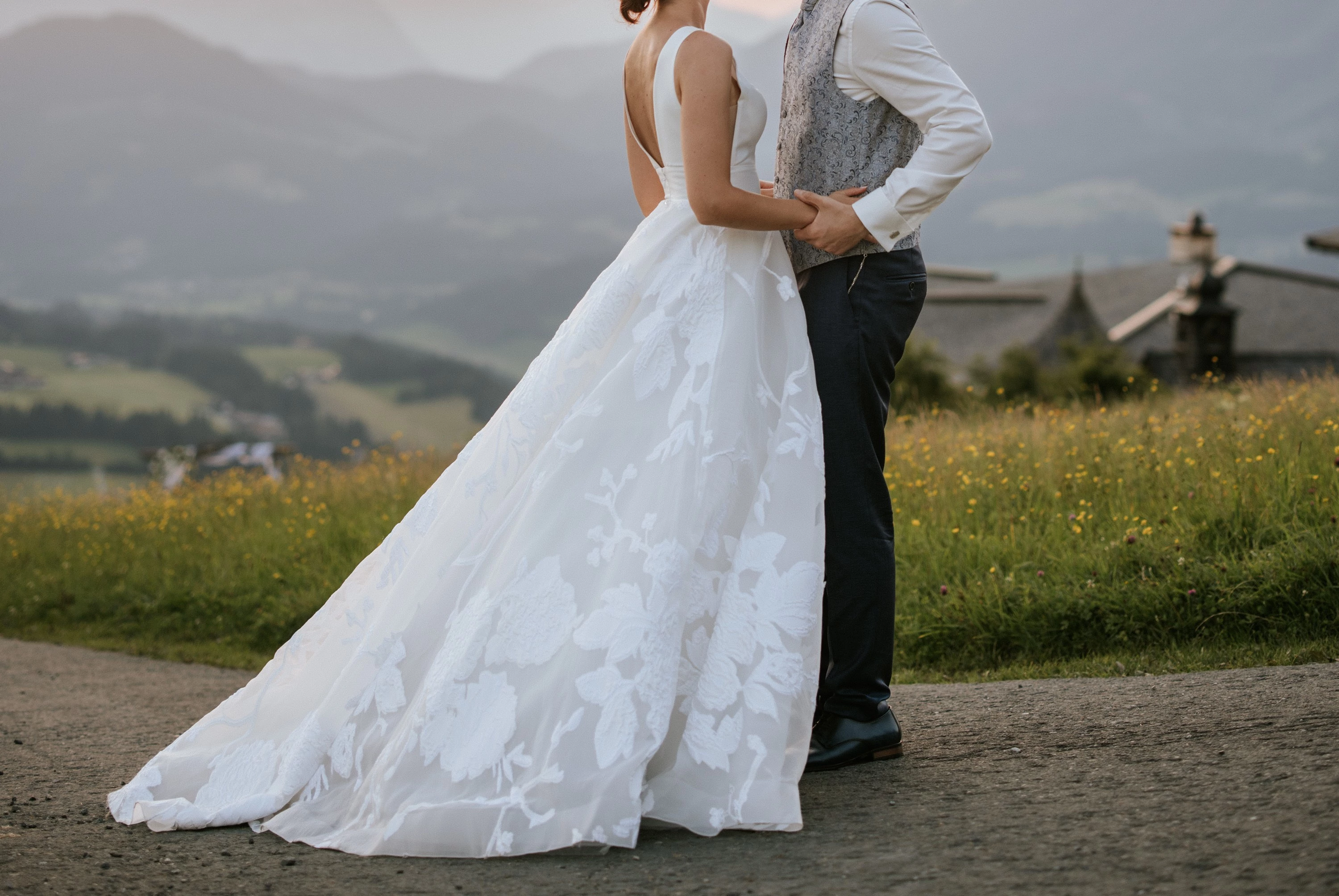 Verzierungen: Applikationen, Blumen / Stoffblüten, Glitzer- / Satin- / Samt-Optik, Mehrlagiger Rock, Netzstoff / Tüll, Spitze / Stickerei