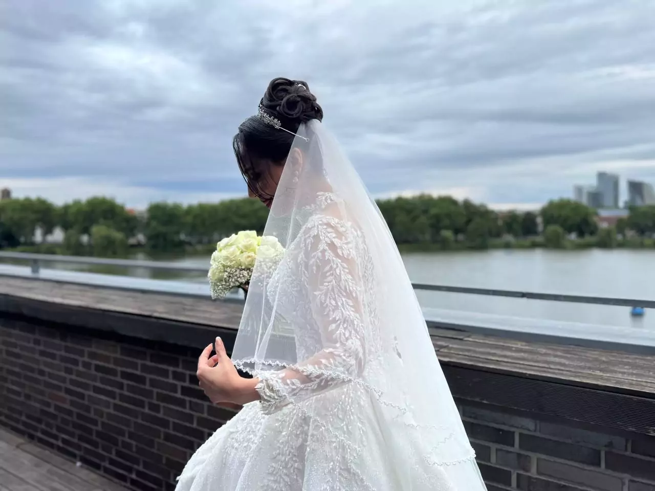 - Schleier: Passend zum Kleid, mit Spitze und Perlenstickerei (im Preis enthalten)