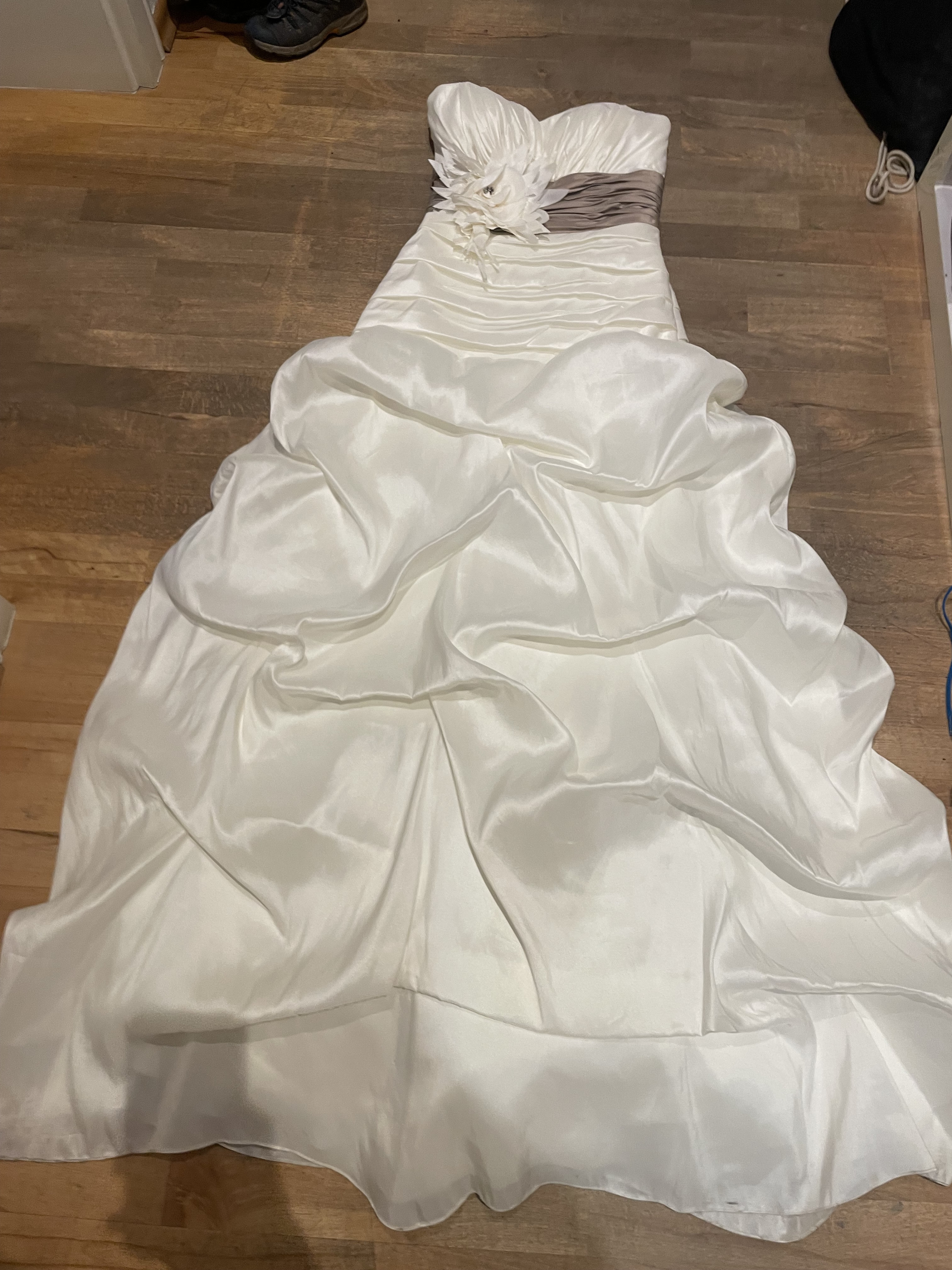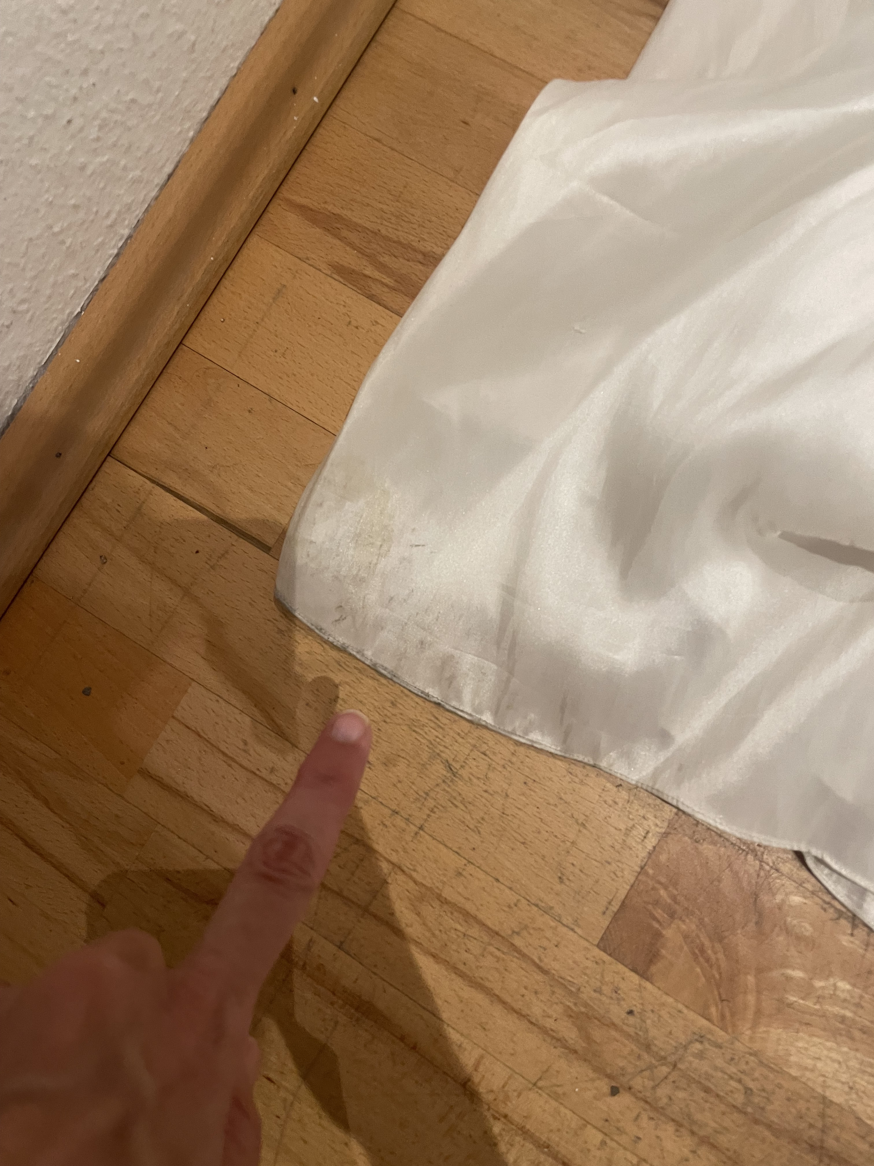 Zustand: Kleinere Gebrauchsspuren (Bisher nicht gereinigt, unterer Saum ist verschmutzt da es bodenlang ist. Da ich aber sehr groß bin wäre das wahrscheinlich eh eine Stelle zum kürzen, kleinerer Fleck unterhalb der Taille)