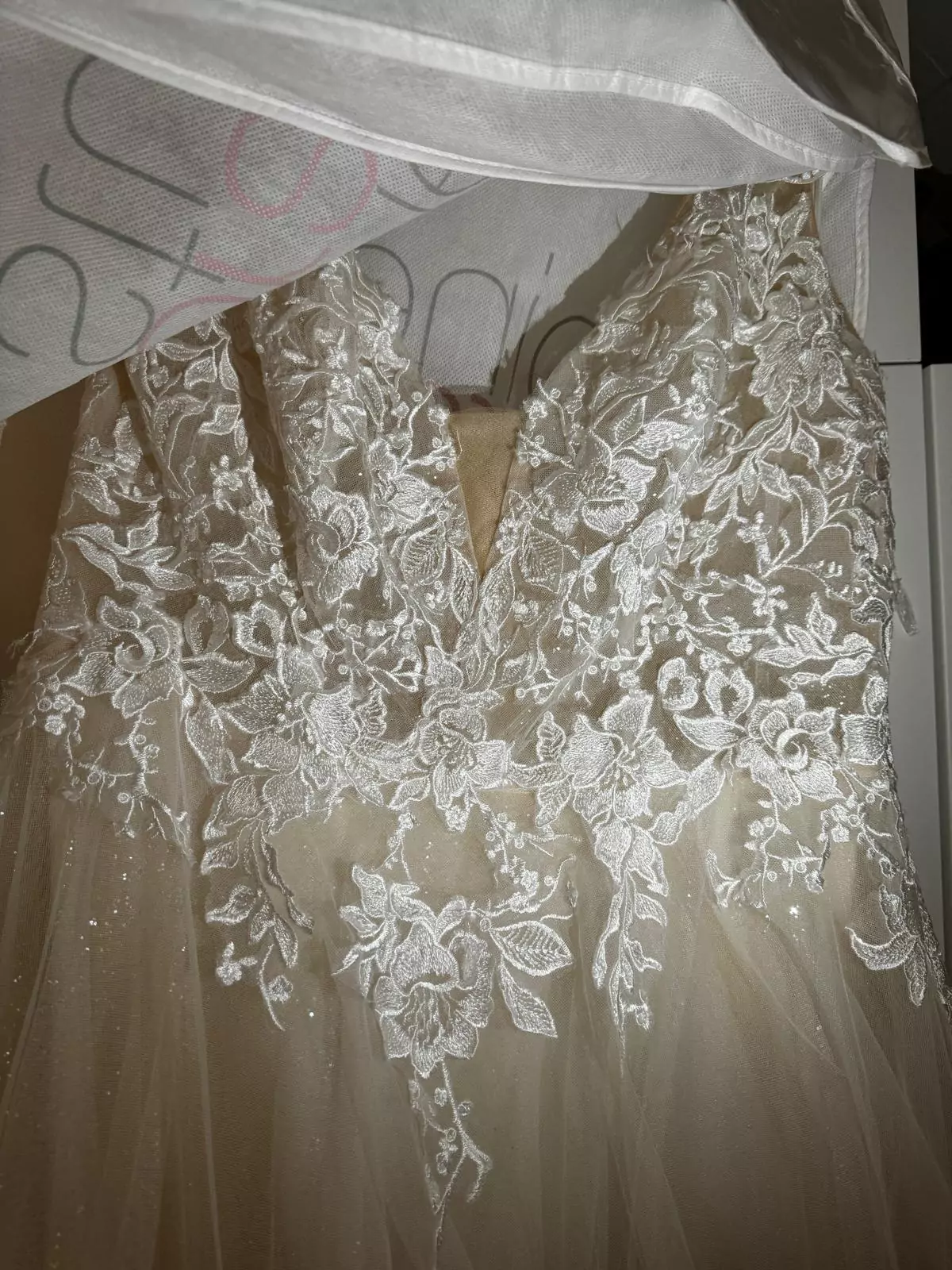 "Dieses Prinzessinnenkleid war für mich etwas ganz Besonderes. Der voluminöse Tüllrock und das detailreiche Oberteil machten es zu einem einzigartigen Kleid, und im Sonnenlicht glitzerte der feine Tüll traumhaft schön.