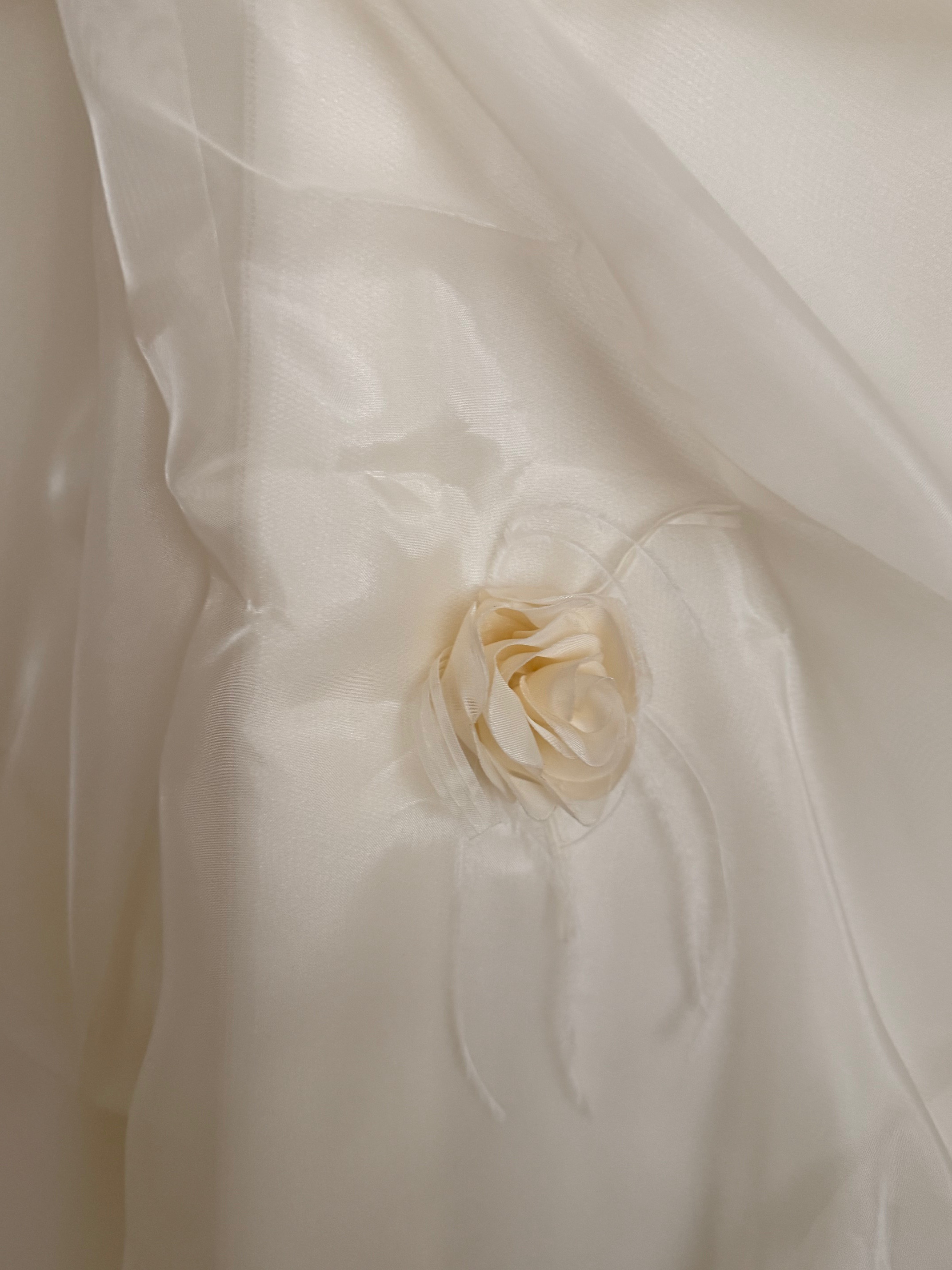 Kleine, dezente Stoffblüten und feine Raffungen setzen romantische Akzente.