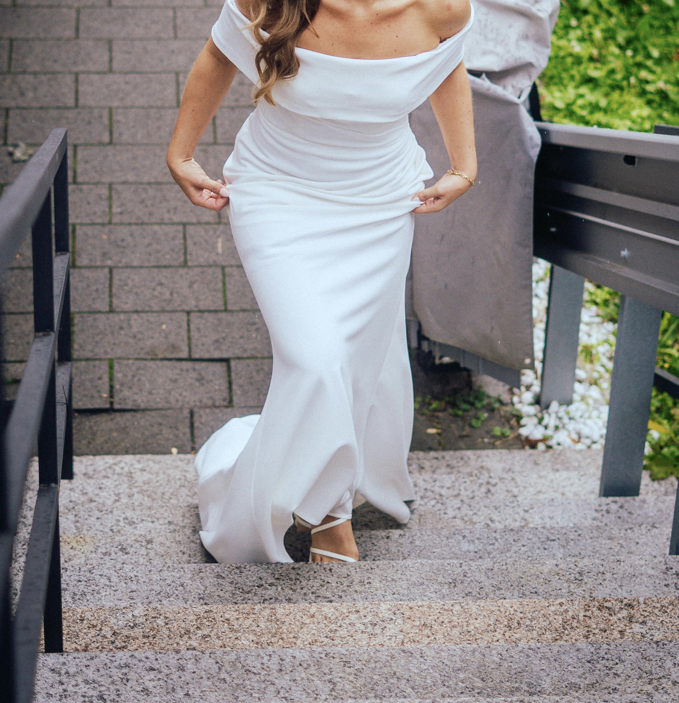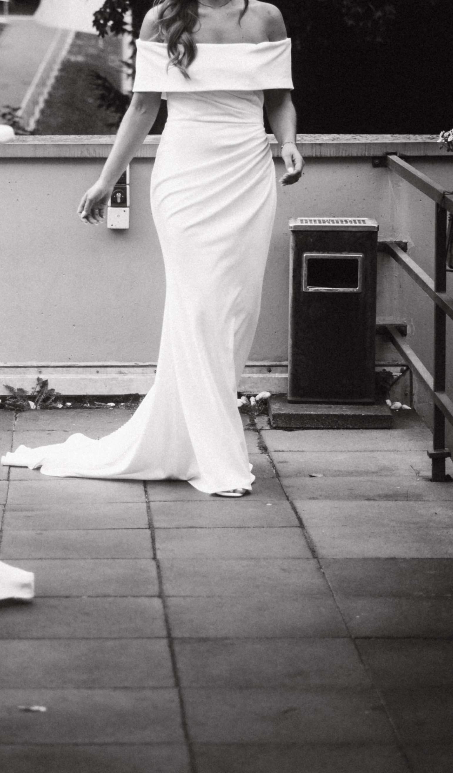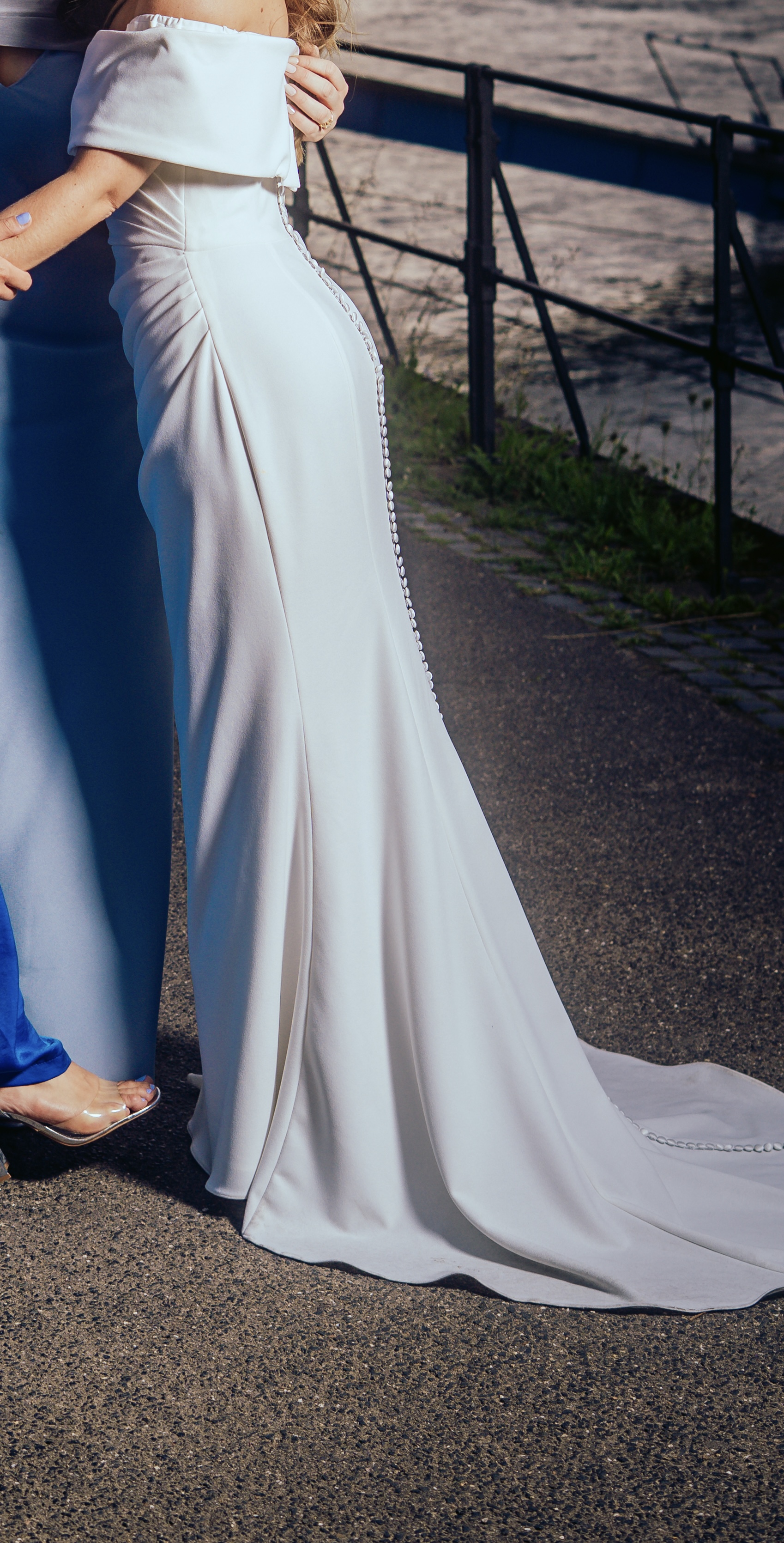 "Es sticht durch seine schlichte Eleganz und die tolle Qualität hervor. Die Knopfleiste habe ich von einer Schneiderin annähen lassen. Der Schnitt ist sehr vorteilhaft und betont die Figur toll. Dank der Falten wird der Bauch etwas kaschiert, man kann also ganz entspannt das Hochzeitsessen genießen. Der Stoff trägt sich sehr angenehm. Ich habe mich darin wirklich sehr wohlgefühlt.