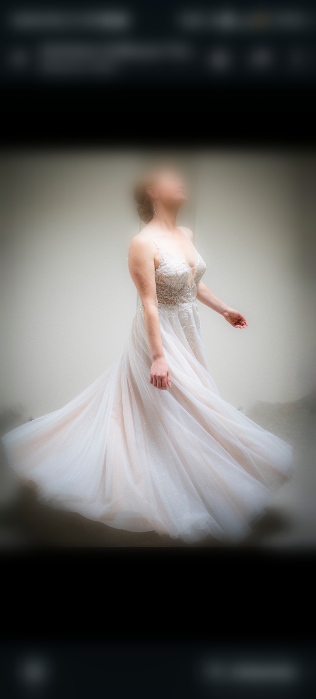 Das Kleid wurde nur einmal getragen, professionell gereinigt und ist in einem sehr guten Zustand. Es zaubert eine traumhafte Silhouette und lässt dich an deinem großen Tag strahlen – ganz ohne zu überladen zu wirken."