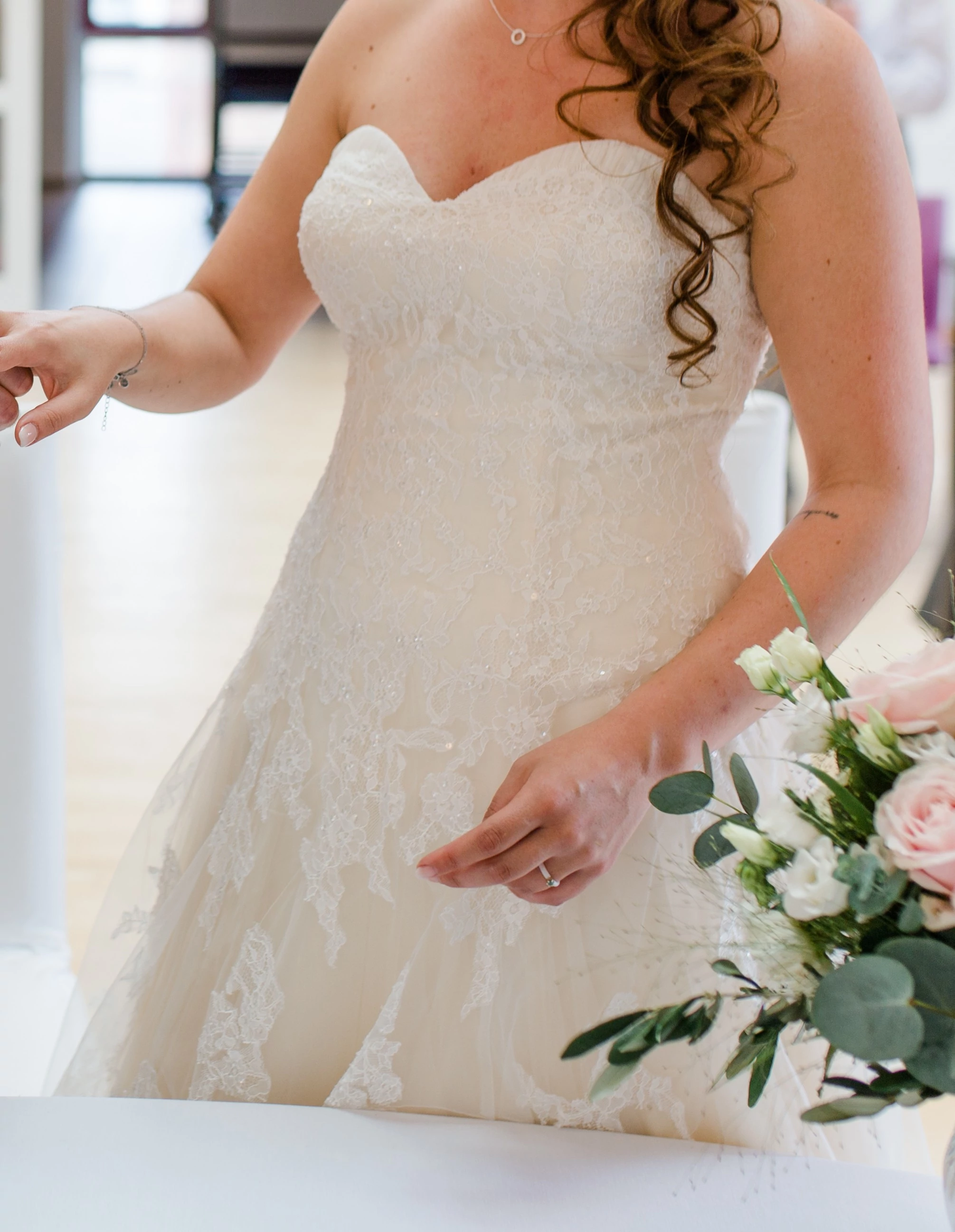 "Ich biete hier mein wunderschönes Prinzessinnenkleid von Marie Bernal für die nächste Braut an.