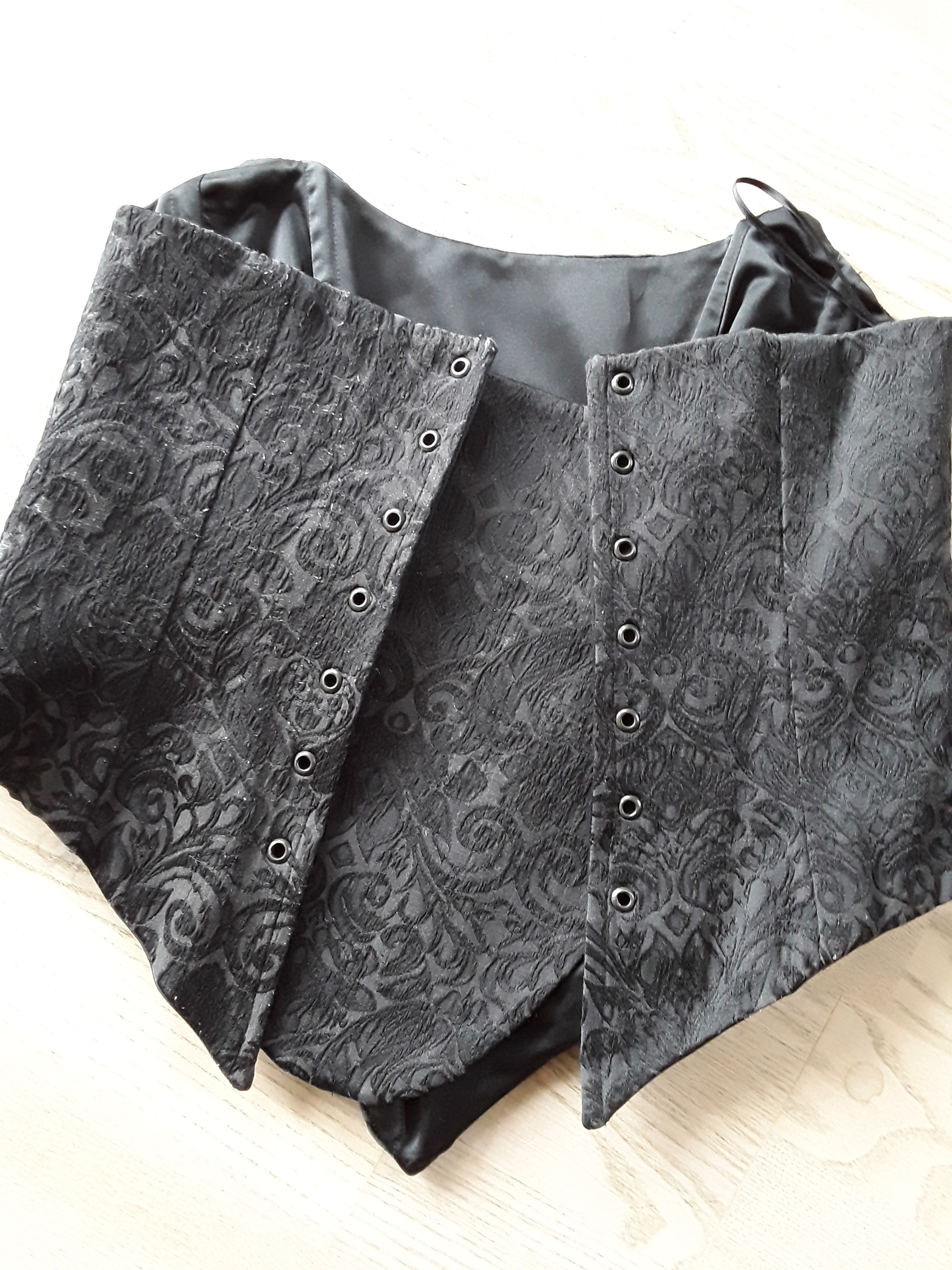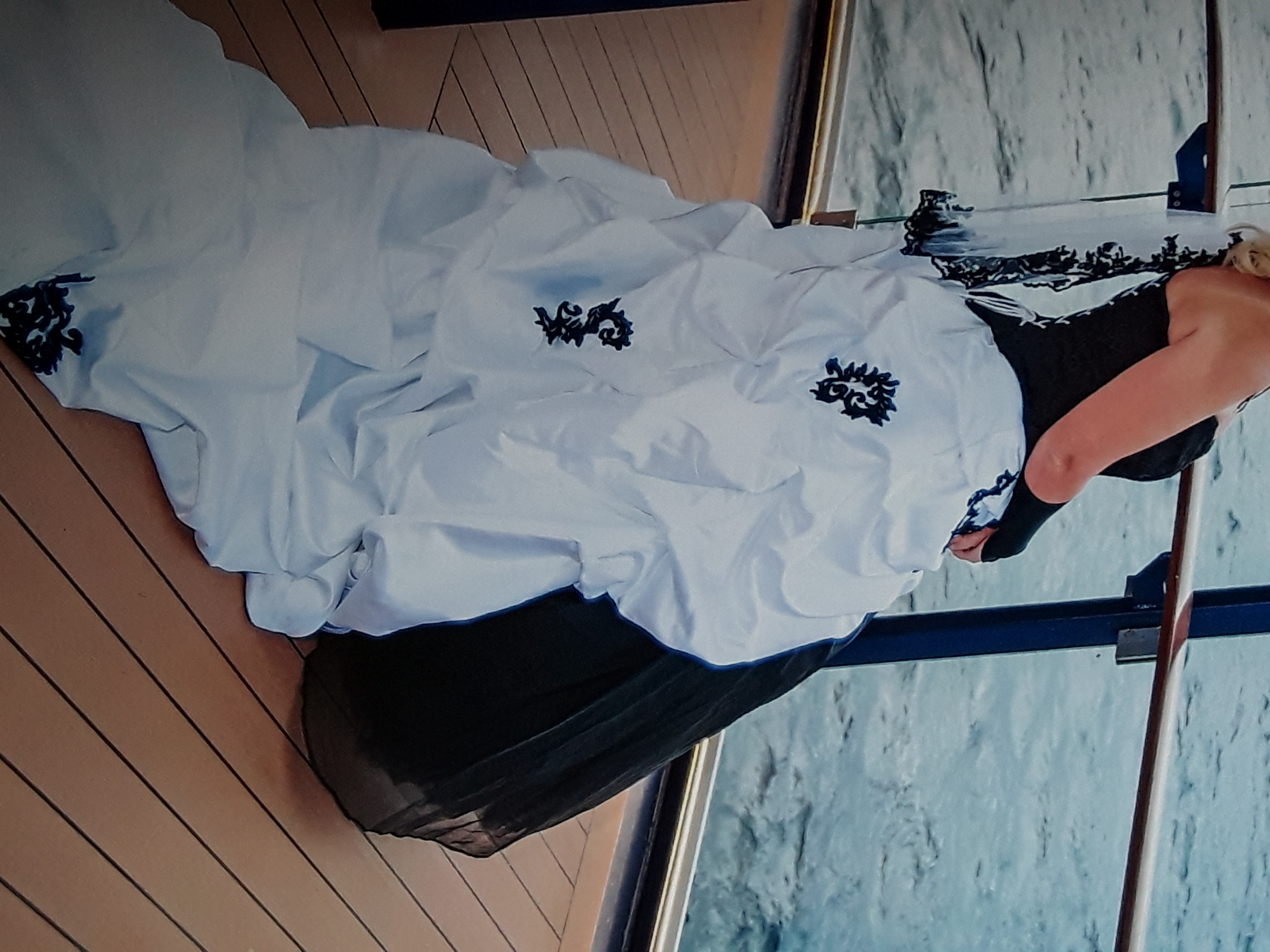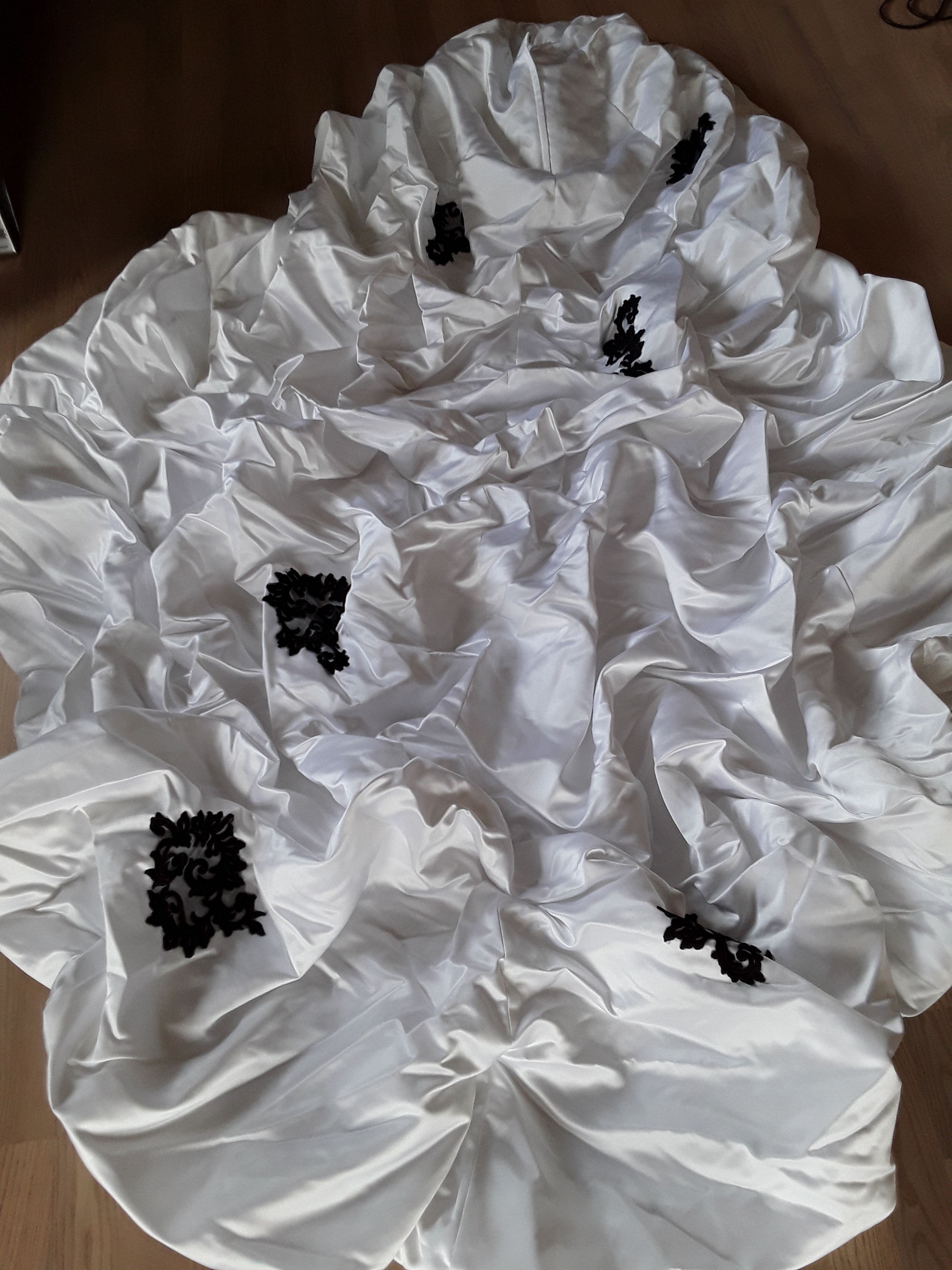 "Massgefertigtes Kleid von Lucardis Feist. Corsage, Reifrock, Rock und weißer Überrock mit Schleppe "
