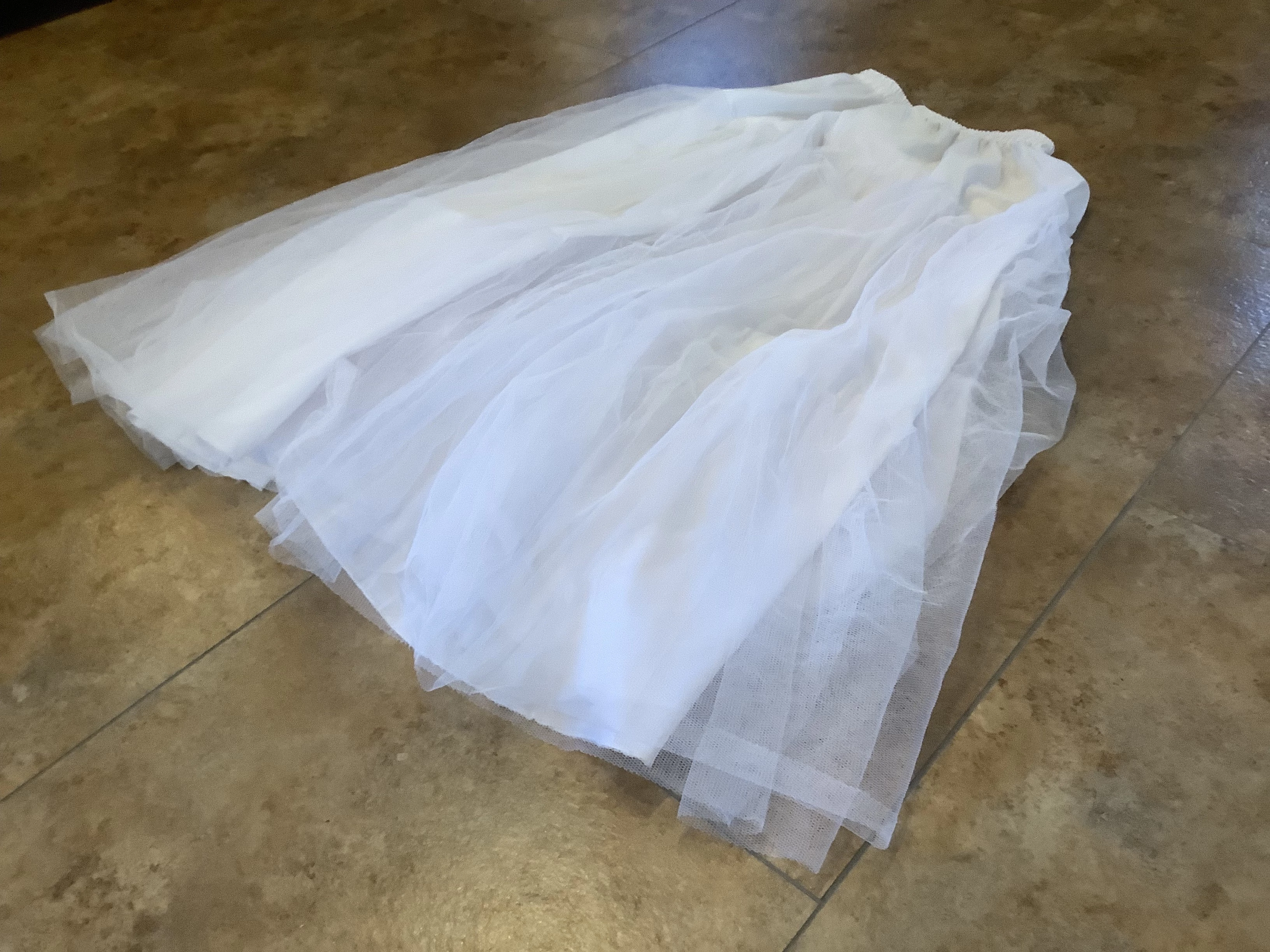 Der Bund des Unterrocks ist elastisch und hat einen Klettverschluss.