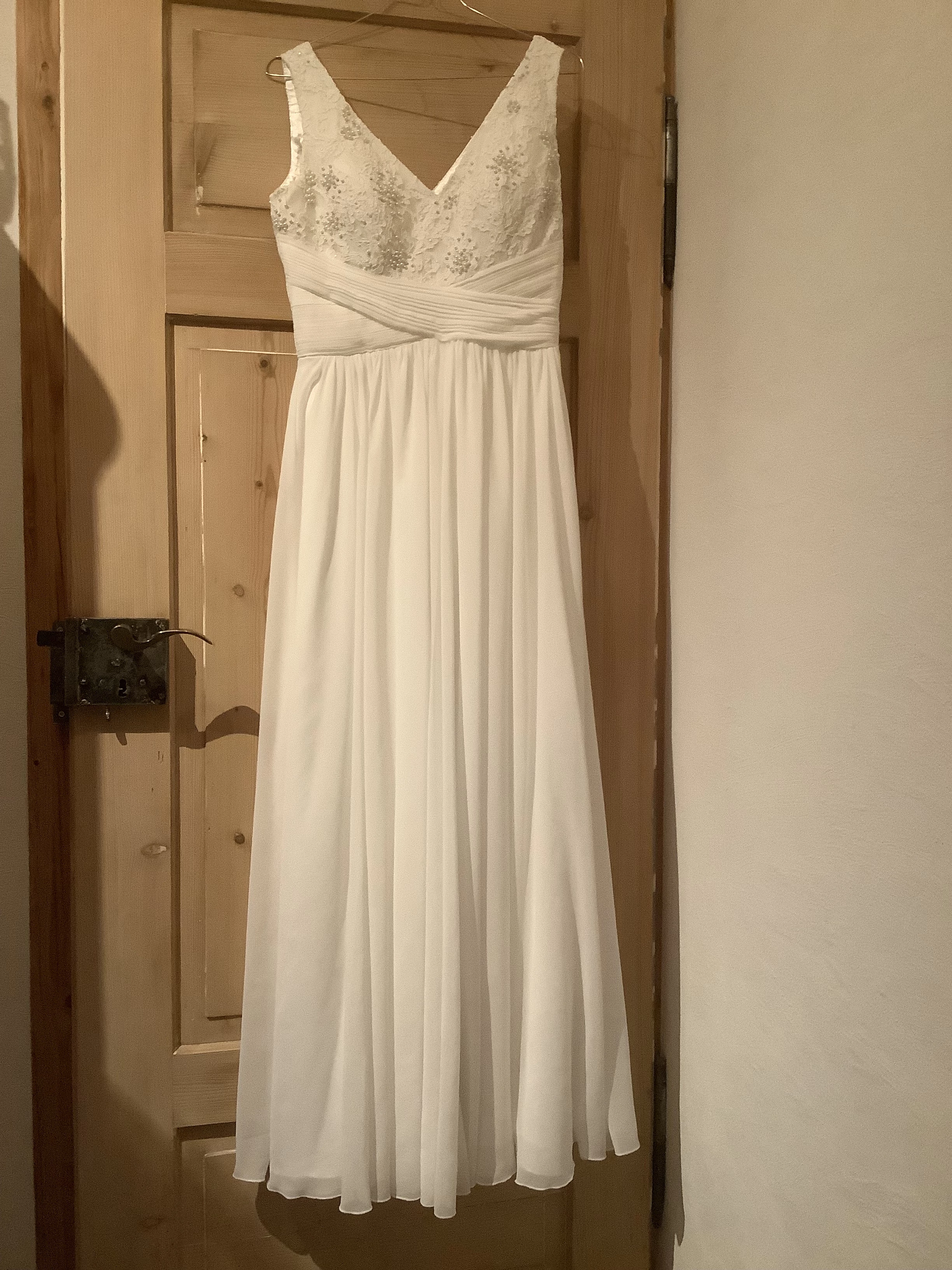 "Ein wunderschönes, bodenlanges Kleid mit Spitze, welches die Taille und das Dekolleté toll betont."