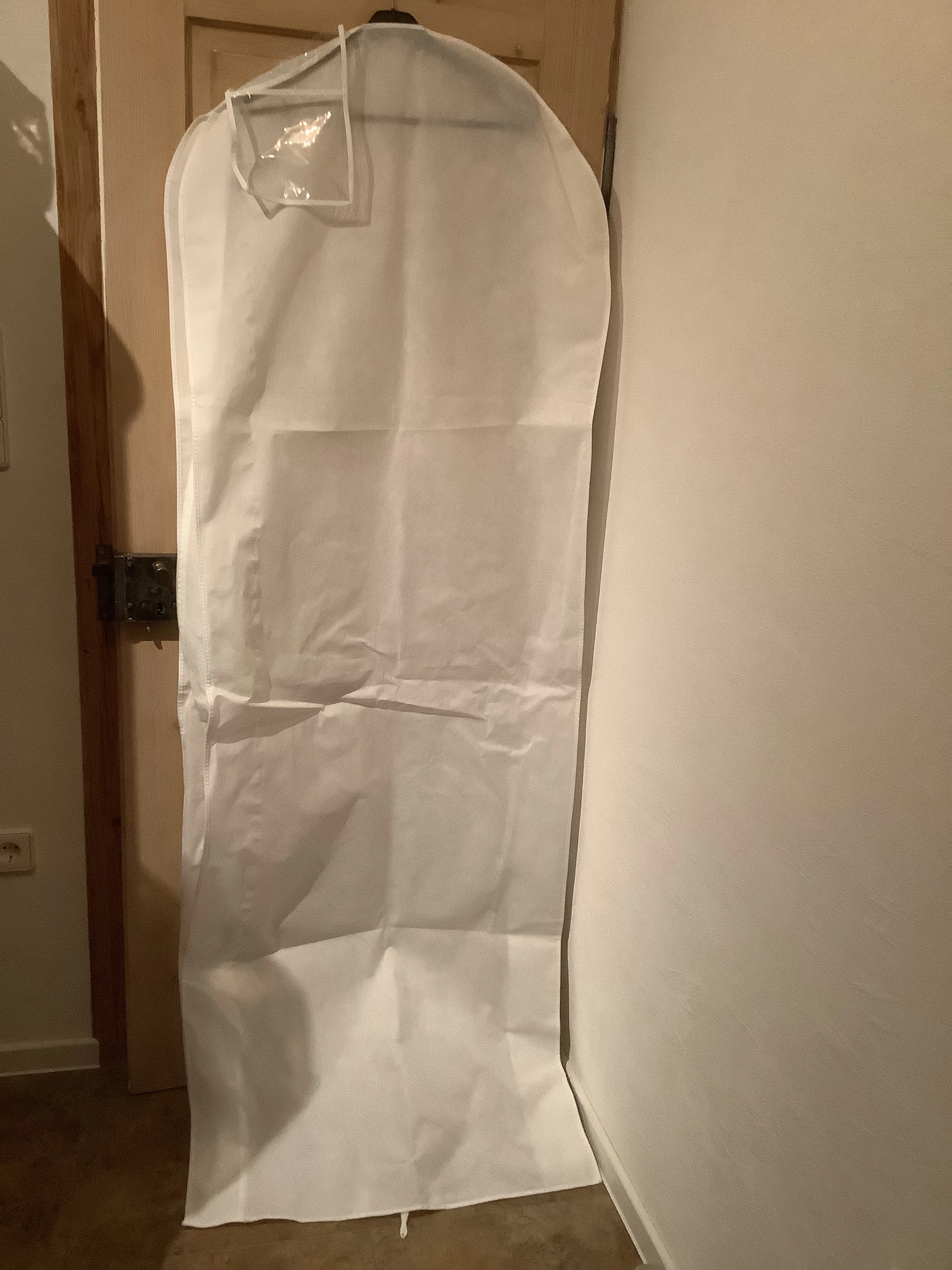 Der Aufbewahrungsbeutel verfügt über einen Reißverschluss und kann 1x nach oben geklappt werden, um das Kleid problemlos im Schrank zu lagern.