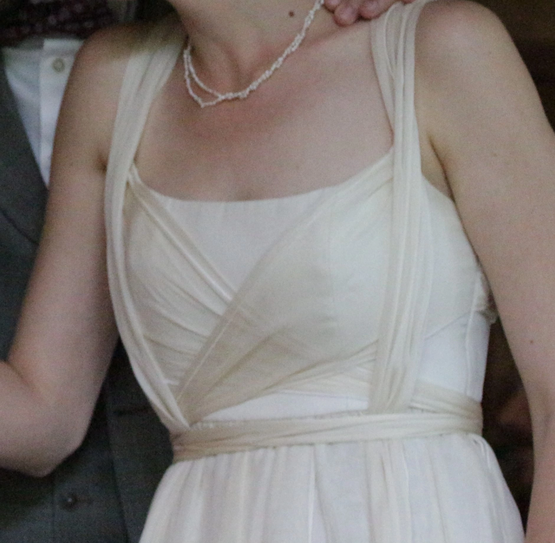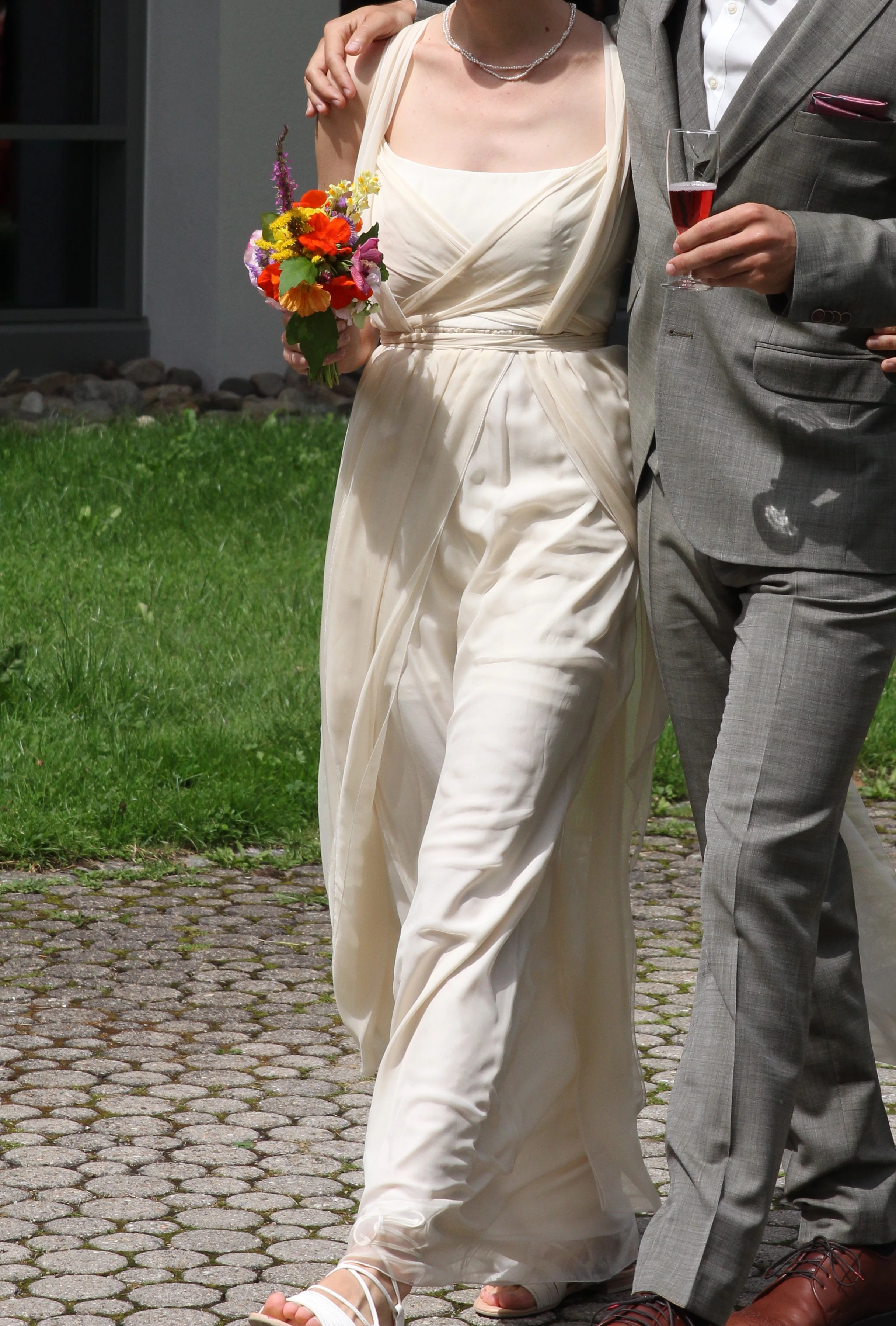 Besonders sind auch die schleierartigen Bänder, die außen am Kleid herunterhängen und nach Belieben (hoch-)gebunden werden können.
