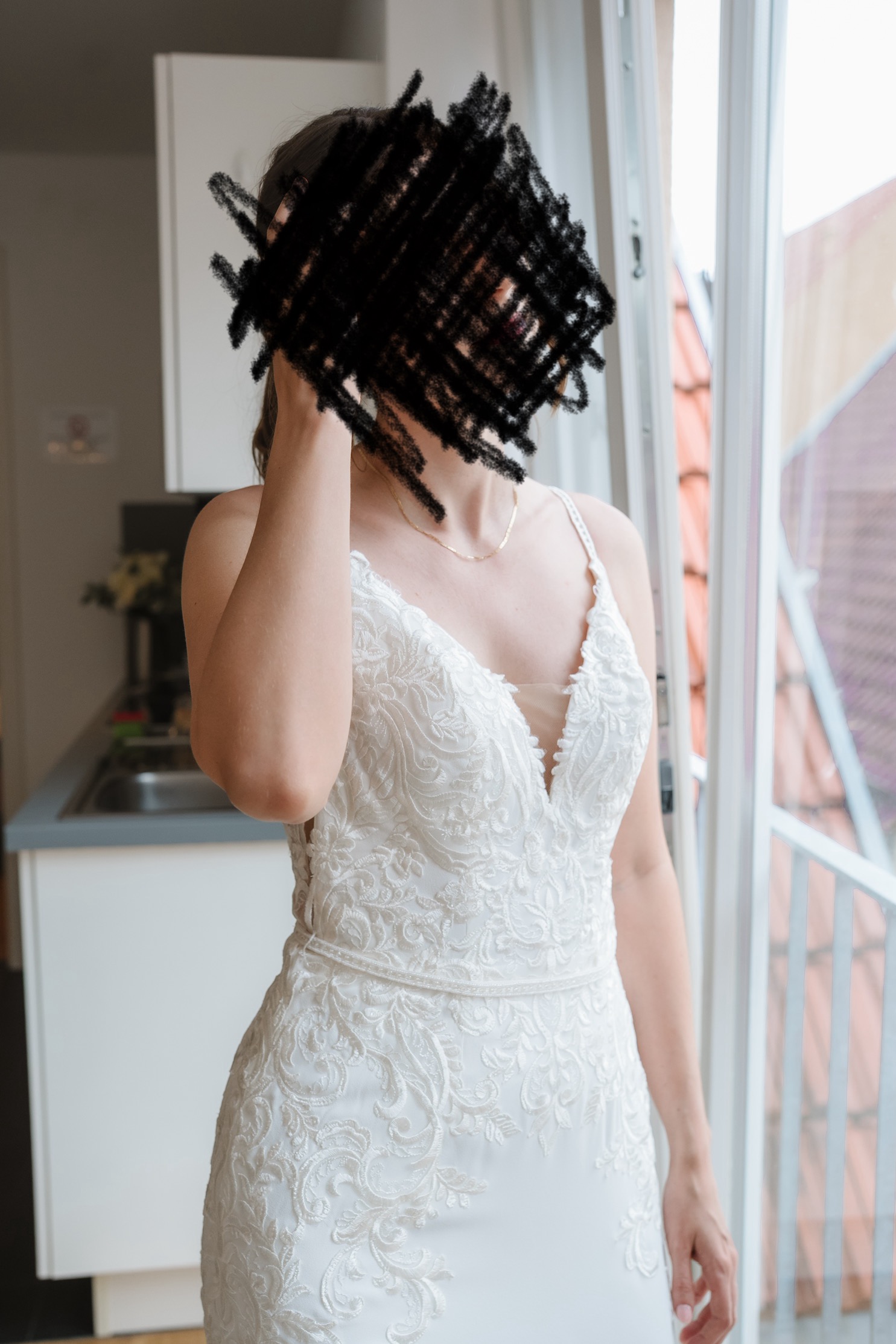 "Ich verkaufe mein traumhaft schönes Hochzeitskleid im figurbetonten Meerjungfrauenschnitt. Es wurde maßangefertigt, sodass der obere Teil etwa Größe 34 entspricht und der untere Teil Größe 36 – ideal für eine Braut mit schmalem Oberkörper und etwas breiteren Hüften.