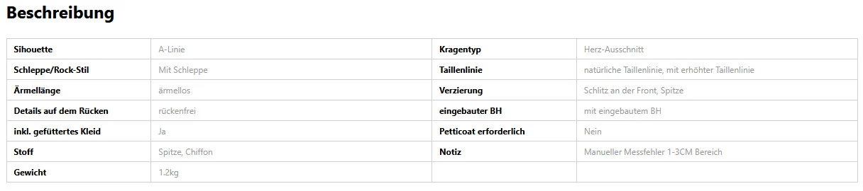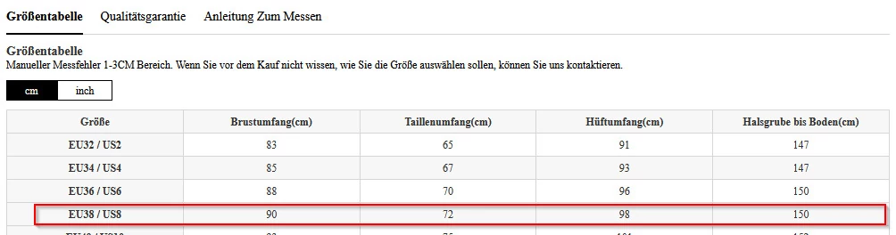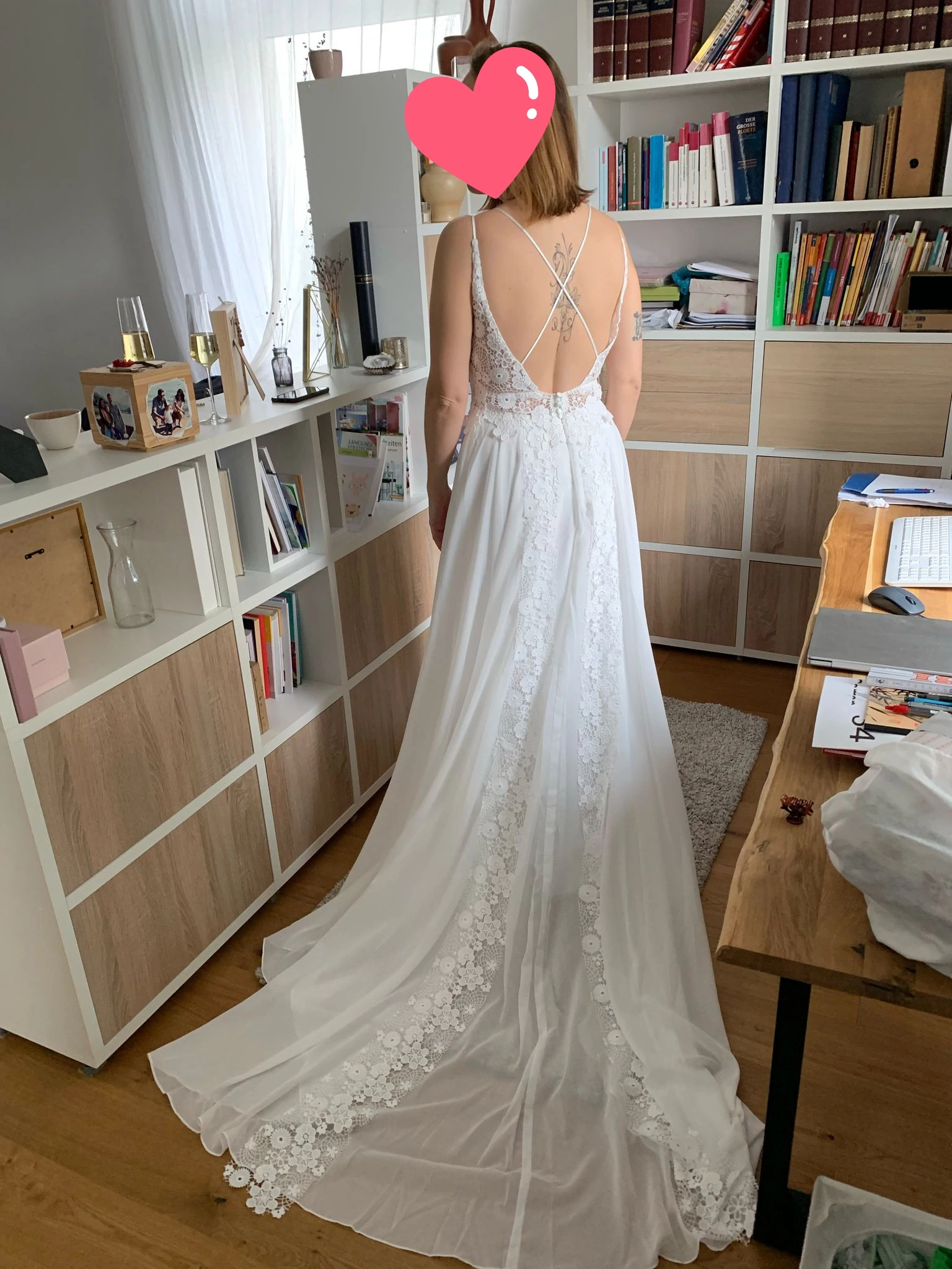"Der Kleid ist super schön und gut verarbeitet, ich habe es nur anprobiert. Der Grund warum ich es verkaufe, ist dass ich den zweite die ich hatte mir besser gefallen hat. Die Etikett ist noch drauf."